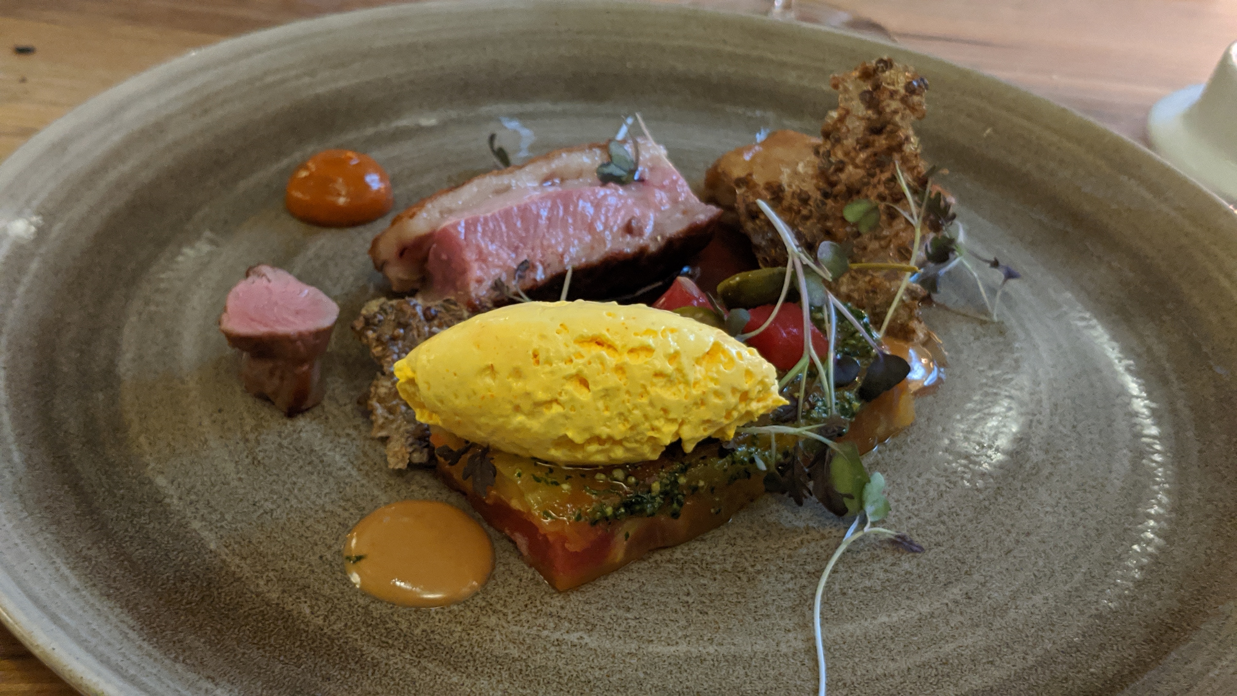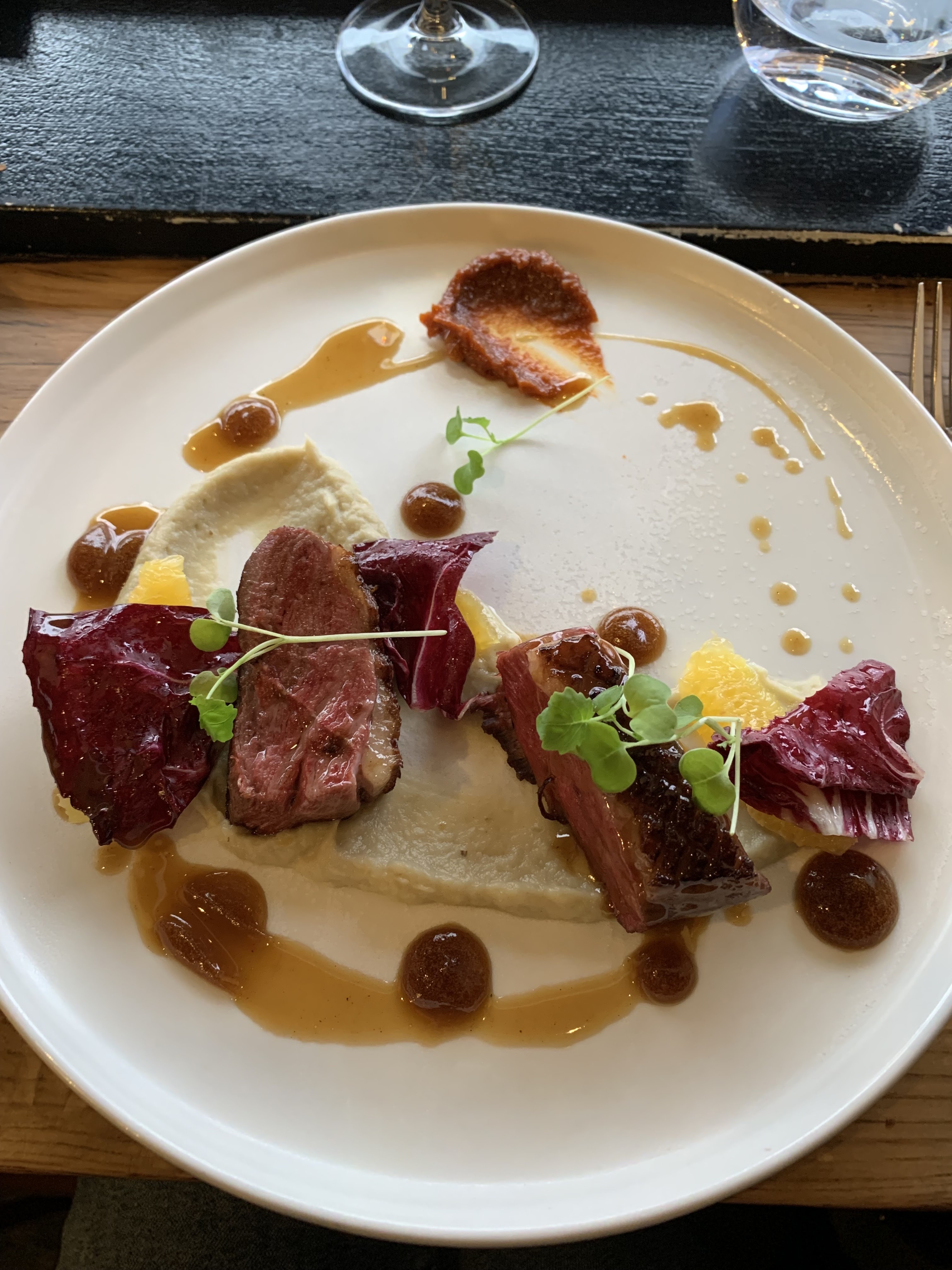 Plats plutôt bons, joliment exécutés. Rien à redire. Le service était excellent. Verres à vin un peu chers cependant.