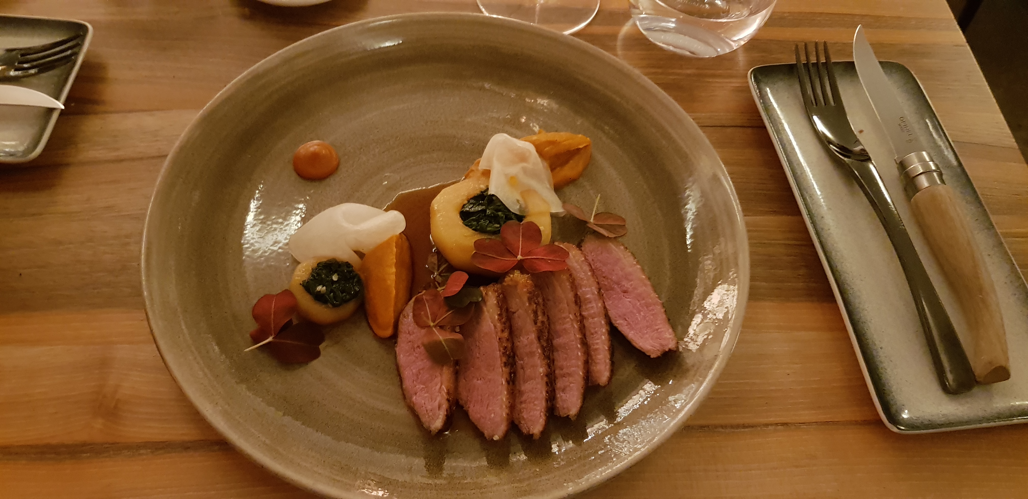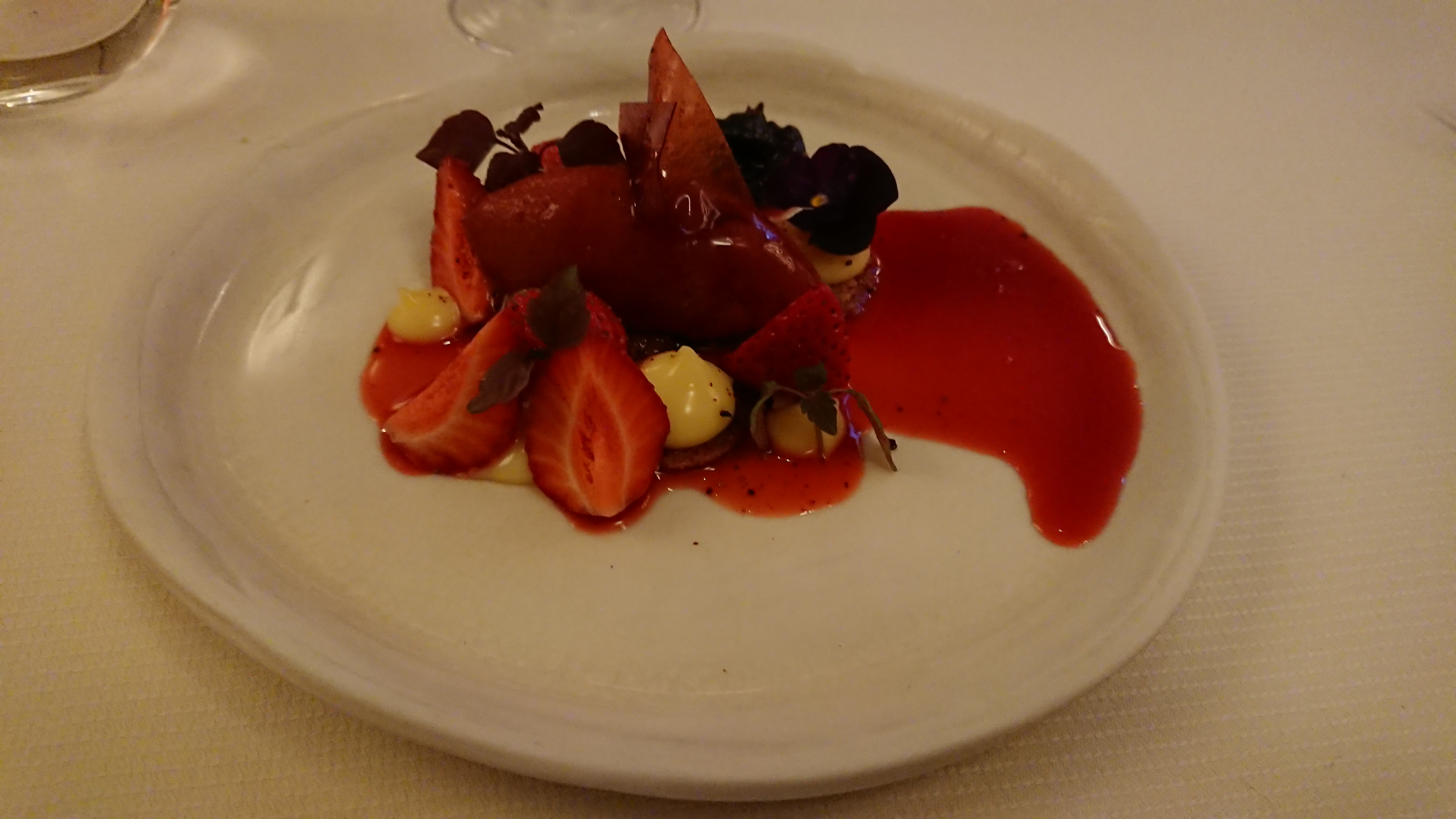 Magnifique moment, justesse des goûts, un dessert à la rhubarbe et fraises digne des étoilées dont je me souviendrais ! Bravo