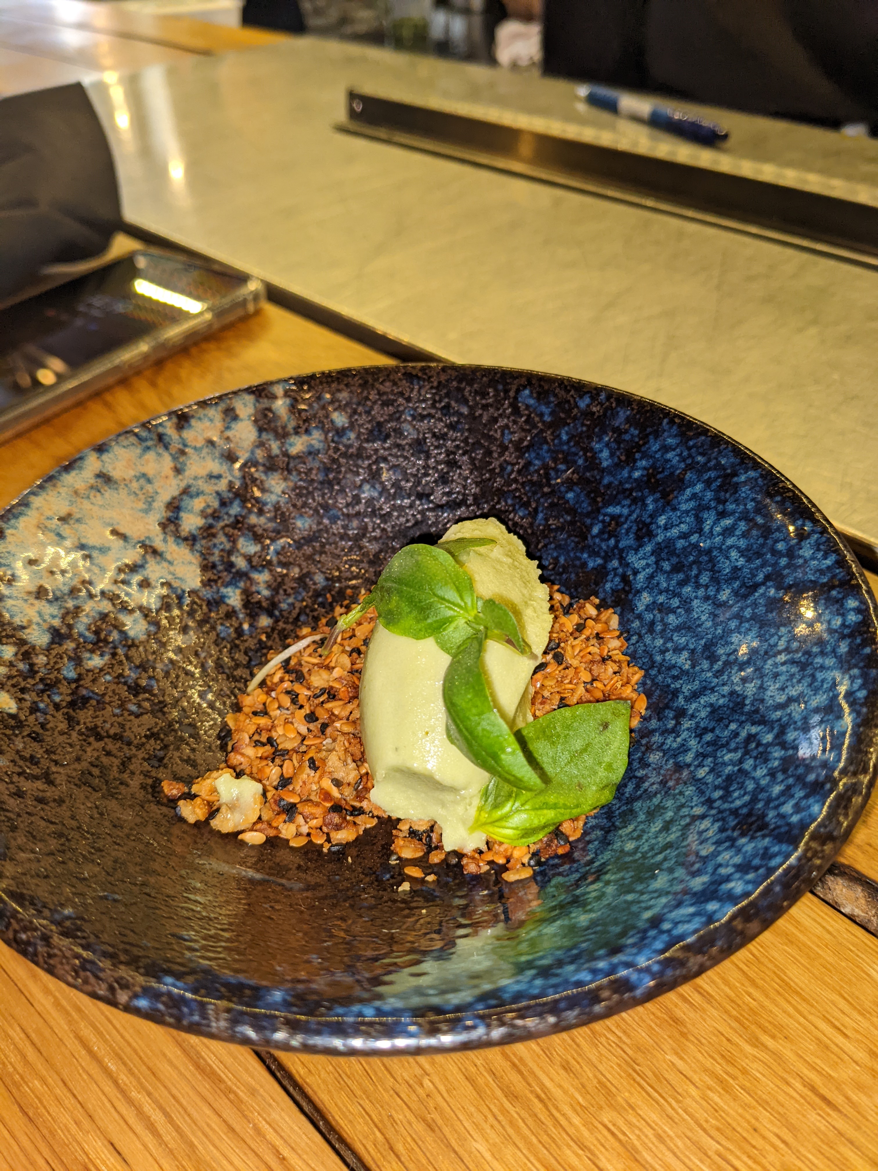 Première expérience de dégustation à l'aveugle avec le menu découverte. Les plats étaient savoureux et le mélange des saveurs était vraiment original. Le fait de devoir deviner les ingrédients entre chaque plat rend l'expérience ludique avec tous les convives. J'ai vraiment adoré cette expérience et le personnel était très agréable.