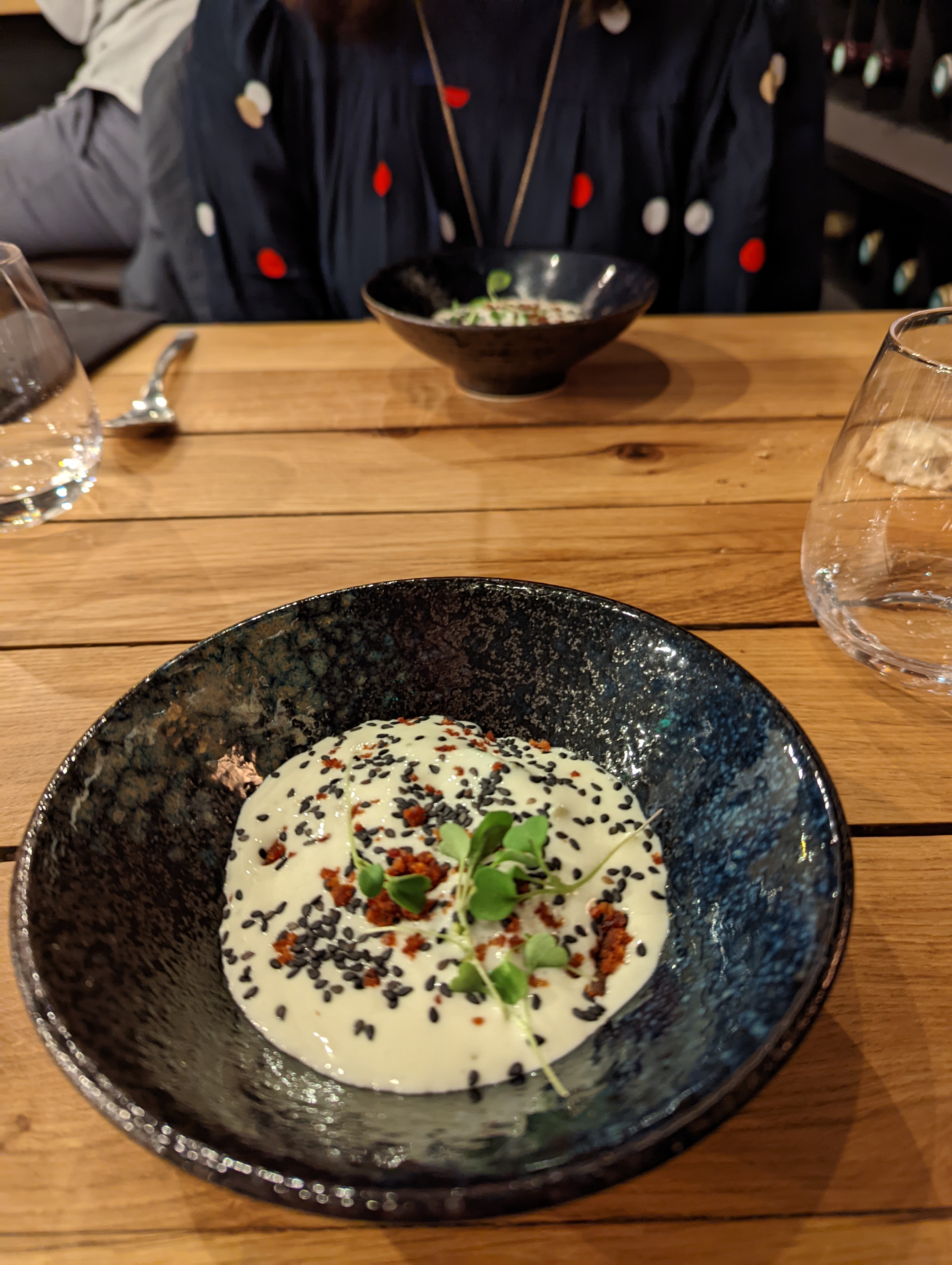 L'un des repas les meilleurs et les plus intéressants que nous ayons jamais mangé. Repas à 6 plats à prix fixe où vous ne choisissez pas ce que vous allez manger. Ils vous demandent d'emblée si vous avez des allergies ou des dégoûts alimentaires et ils sont plus que accommodants. Je n'aime pas les champignons et il y avait un cours centré sur les champignons. Ils m'ont apporté deux délicieux morceaux de saumon dans une sauce aux poireaux à tomber par terre. D'excellents accords mets et vins et le personnel amical ont fait de ce repas l'un de ces repas agréables dont vous parlerez pendant des années.