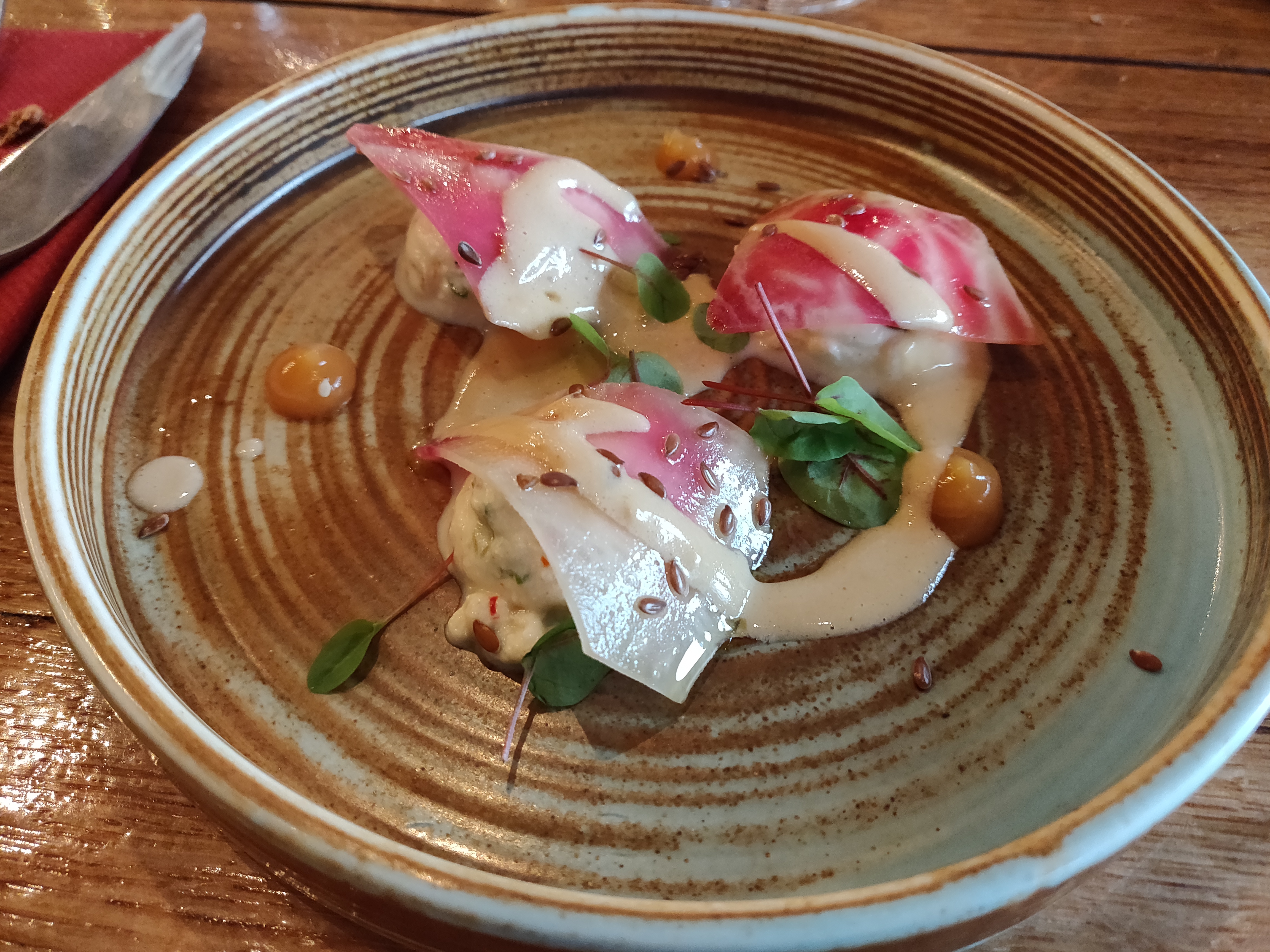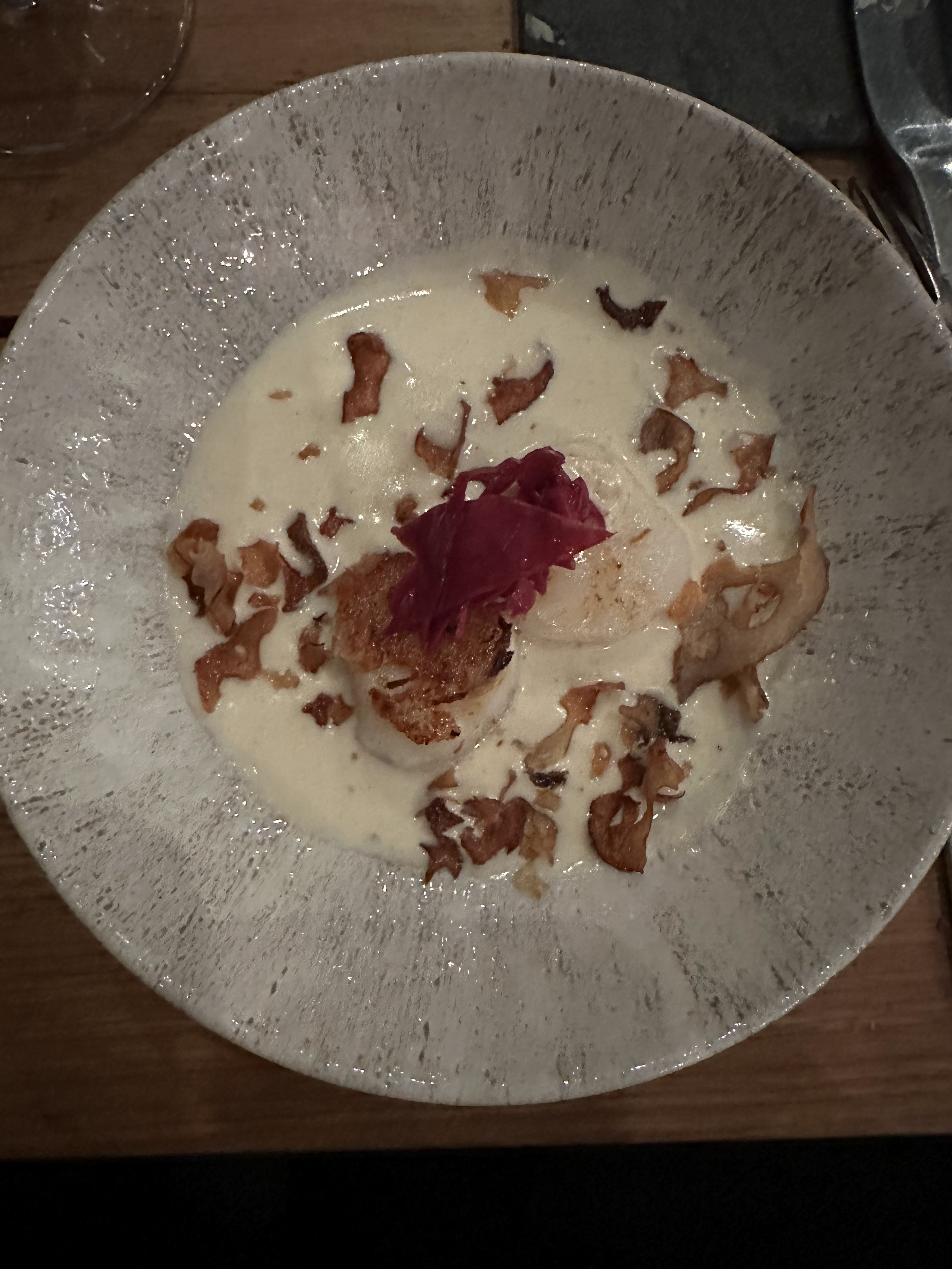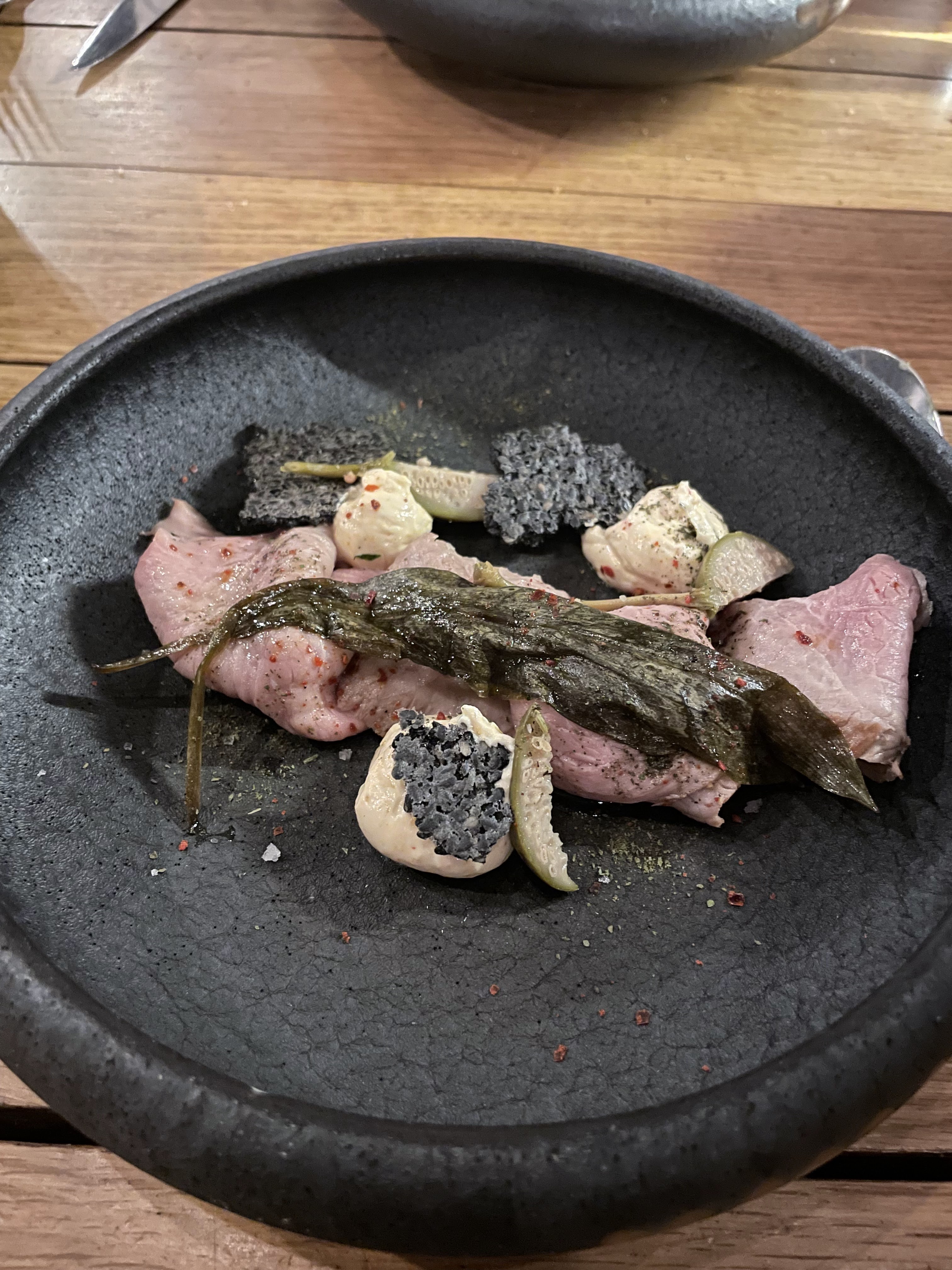 Des combinaisons de plats étonnantes et un excellent concept consistant à servir la nourriture sans nous dire de quoi il s'agissait, nous avons donc dû deviner les ingrédients. Vous rend plus conscient de ce que vous mangez. Ça vaut vraiment le détour! Le propriétaire s'est arrêté et a pris son temps pour parler avec nous ainsi qu'avec les autres invités - très bonne expérience !