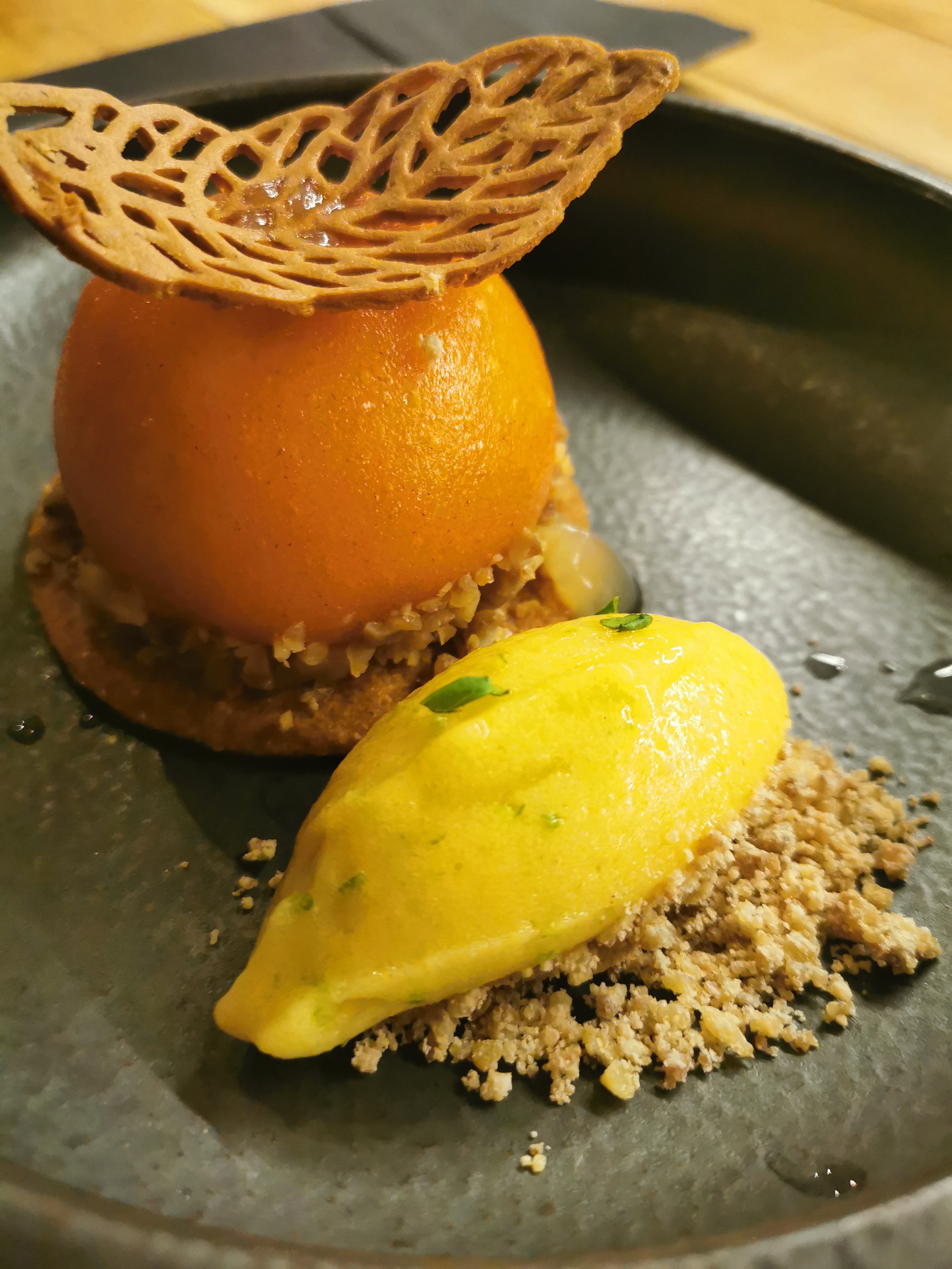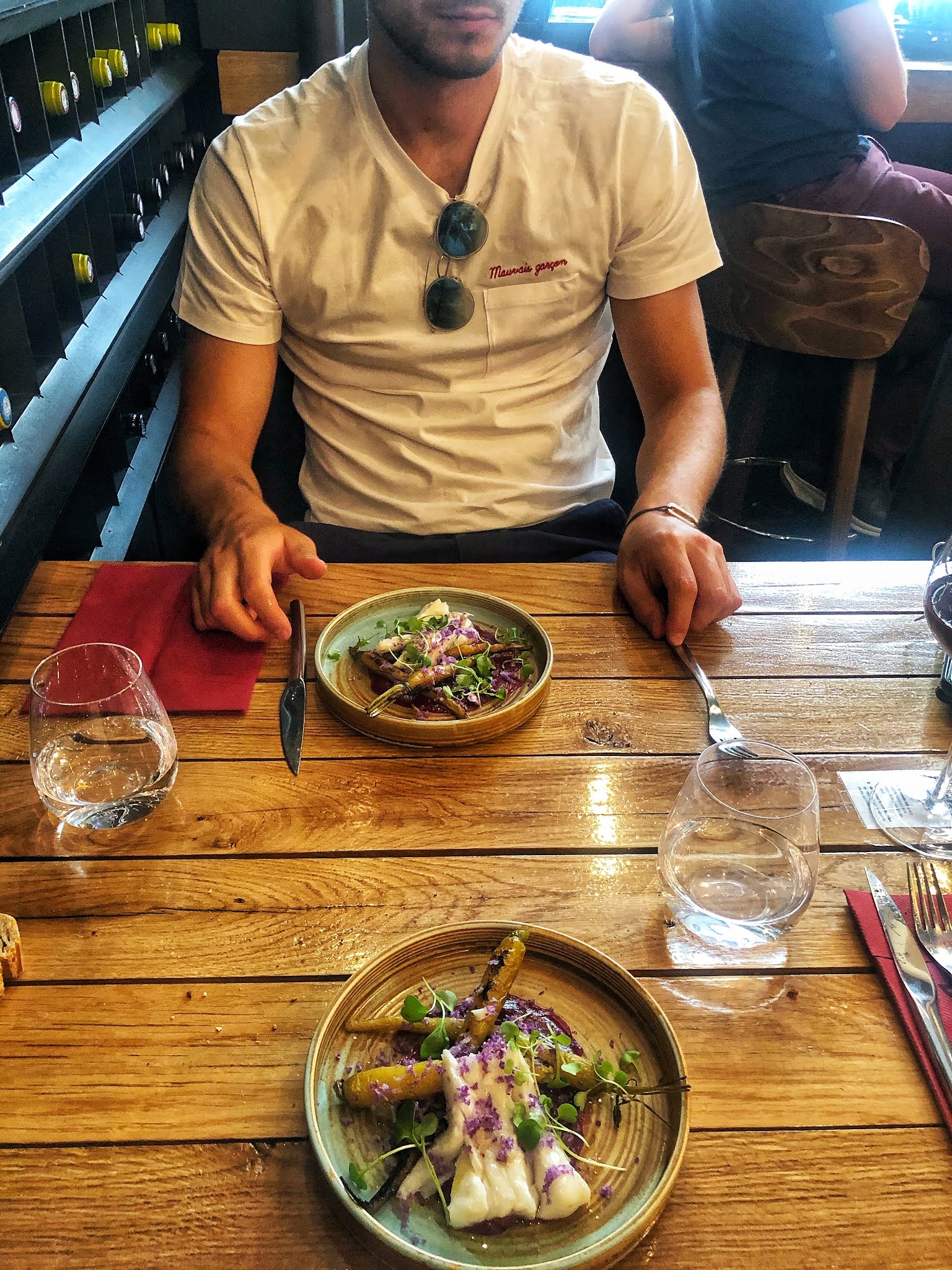 Un moment incroyable en amoureux pour nos 7 ans ! Mon expérience date de 6 mois alors le souvenir précis des plats s’est un peu étiolé ! Nous avons pris le menu origine en 7 services avec un accord mets-vins pour chaque plat. Chaque plat nous est apporté. On nous laisse déguster tranquillement et ensuite, l’hôte revient pour nous interroger sur la composition des assiettes, avec beaucoup d’humour et de retenue. Le lieu est très chaleureux, composé de bois essentiellement brut, comme la table haute sur laquelle nous avons dîné. Nous avons même été salués par Pierre Sang en personne, qui passe d’un restaurant à l’autre dans la rue Gambey.
