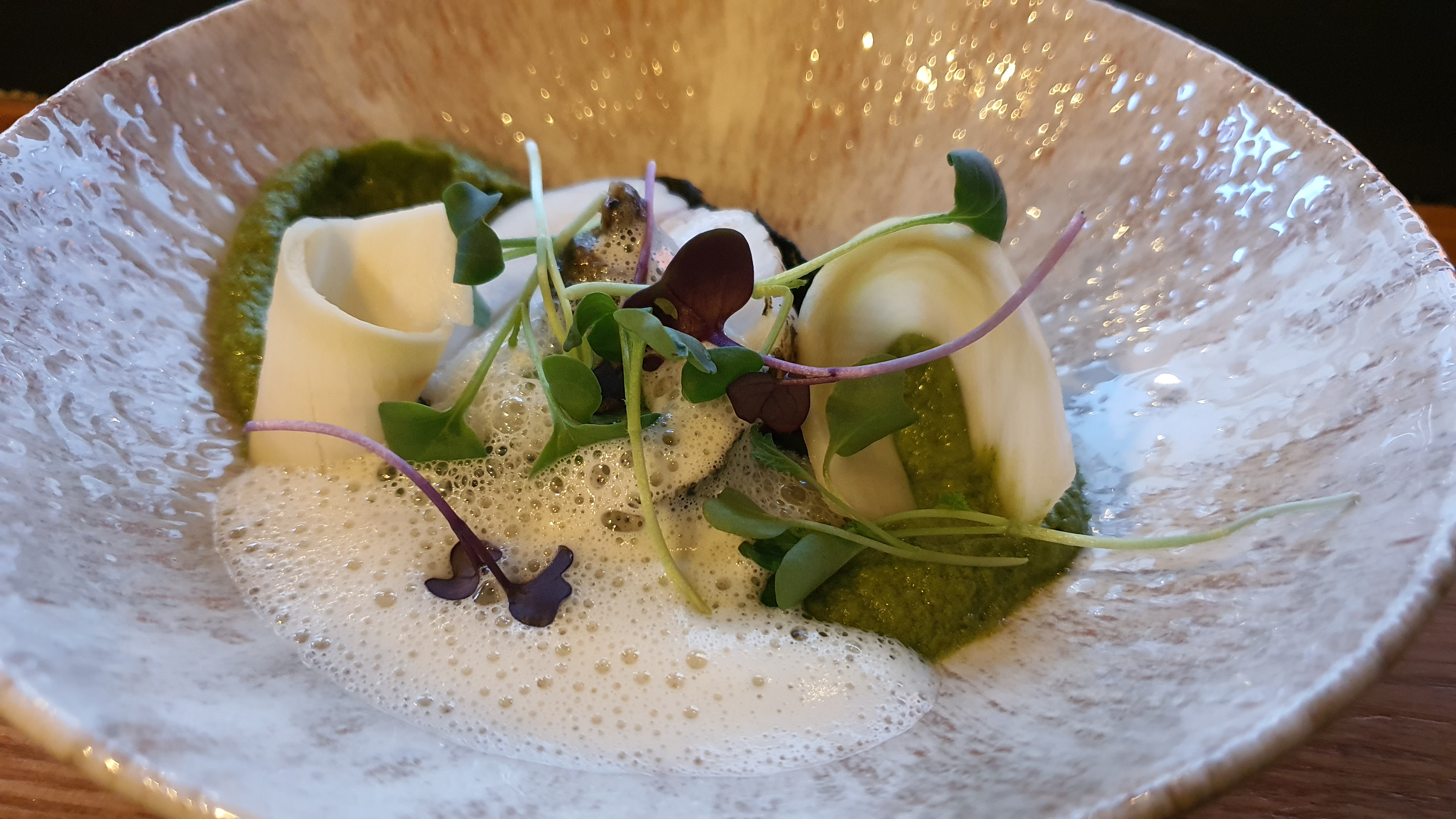 Un cadeau de nos deux fils nous a amené à découvrir le restaurant de Pierre Sang On Gambey , où nous sommes allés au mois d'Octobre. Génial ! Le menu découverte 6 plats comprend une mise en bouche, 2 entrées, un plat, un fromage et un dessert. Un ensemble de surprises originales et délicieuses servies par une équipe jeune, dynamique et très sympathique. Nous avons eu le plaisir d'échanger quelques mots avec le Chef Pierre Sang. Nous recommandons !