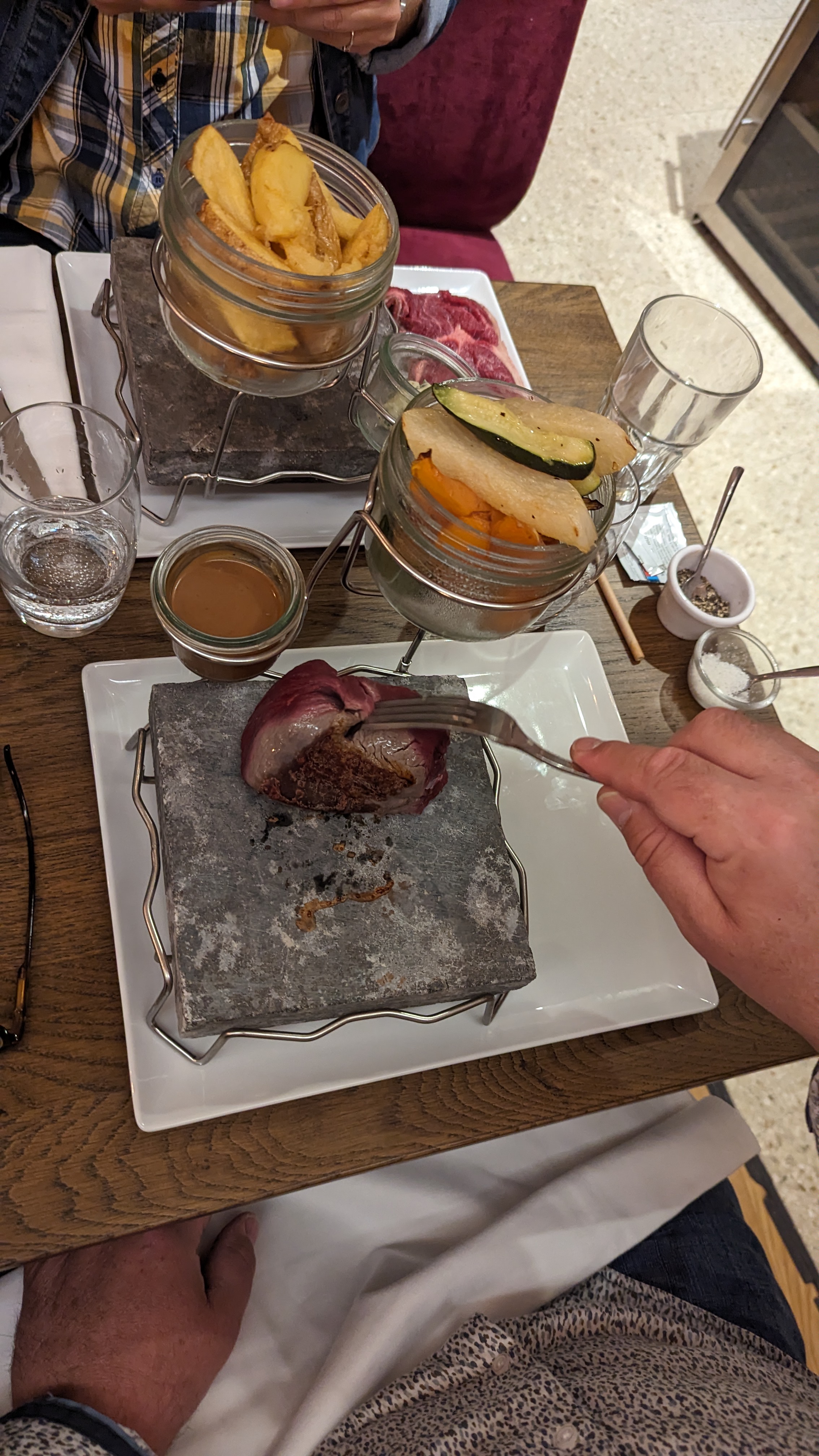 J'ai adoré le concept ou chacun fait sa propre cuisson de viande sûr une pierrade personnelle. Très bonne viande. Top.