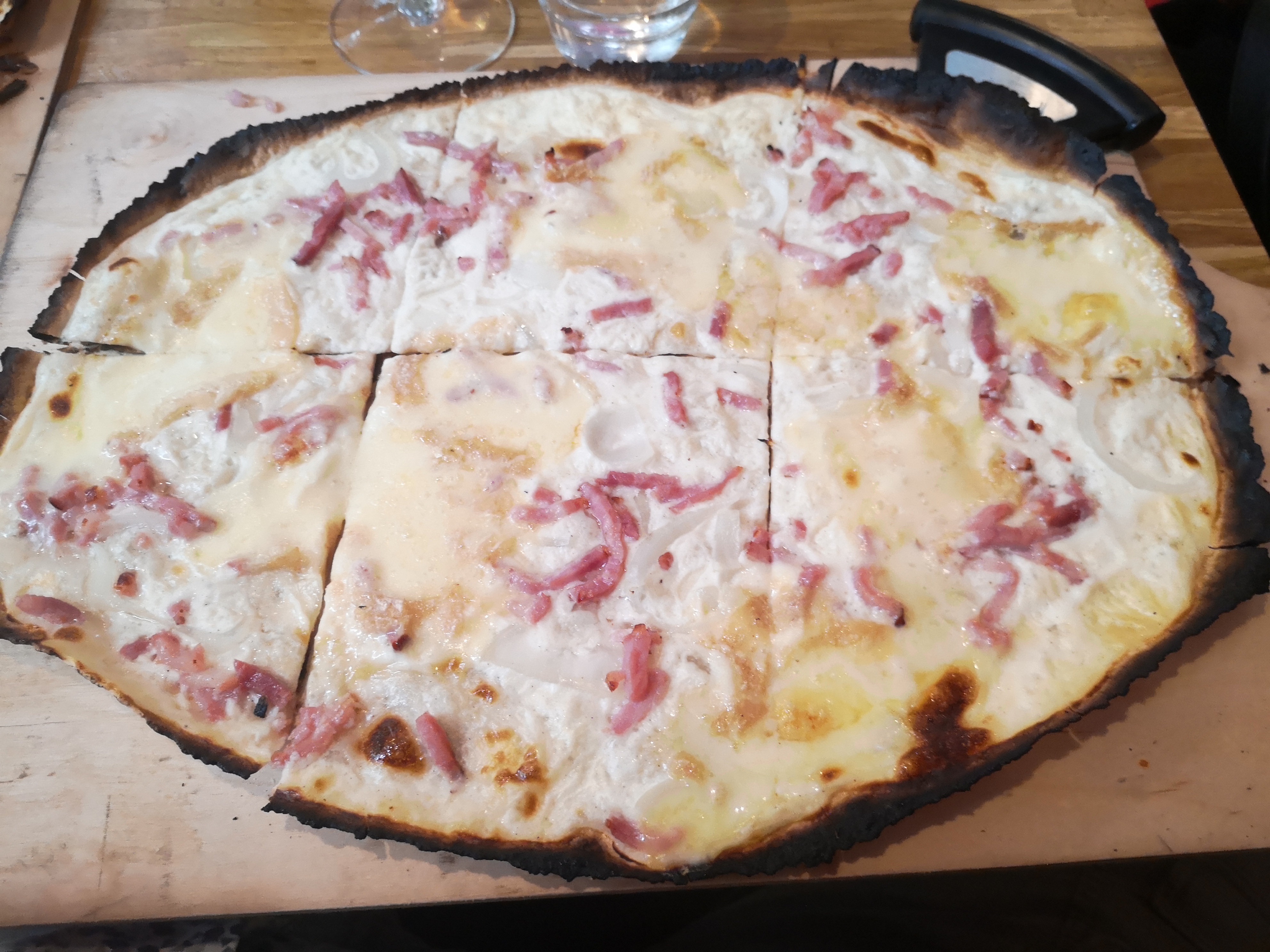 Nous avons mangé des flamms. Elles étaient bonnes. Le service est long. Nous avons eu nos apéros en même temps que le plat (nous avons dû refaire notre demande). Assez bruyant, mais c'est indépendant de la volonté du restaurateur. L intérieur est beau.
