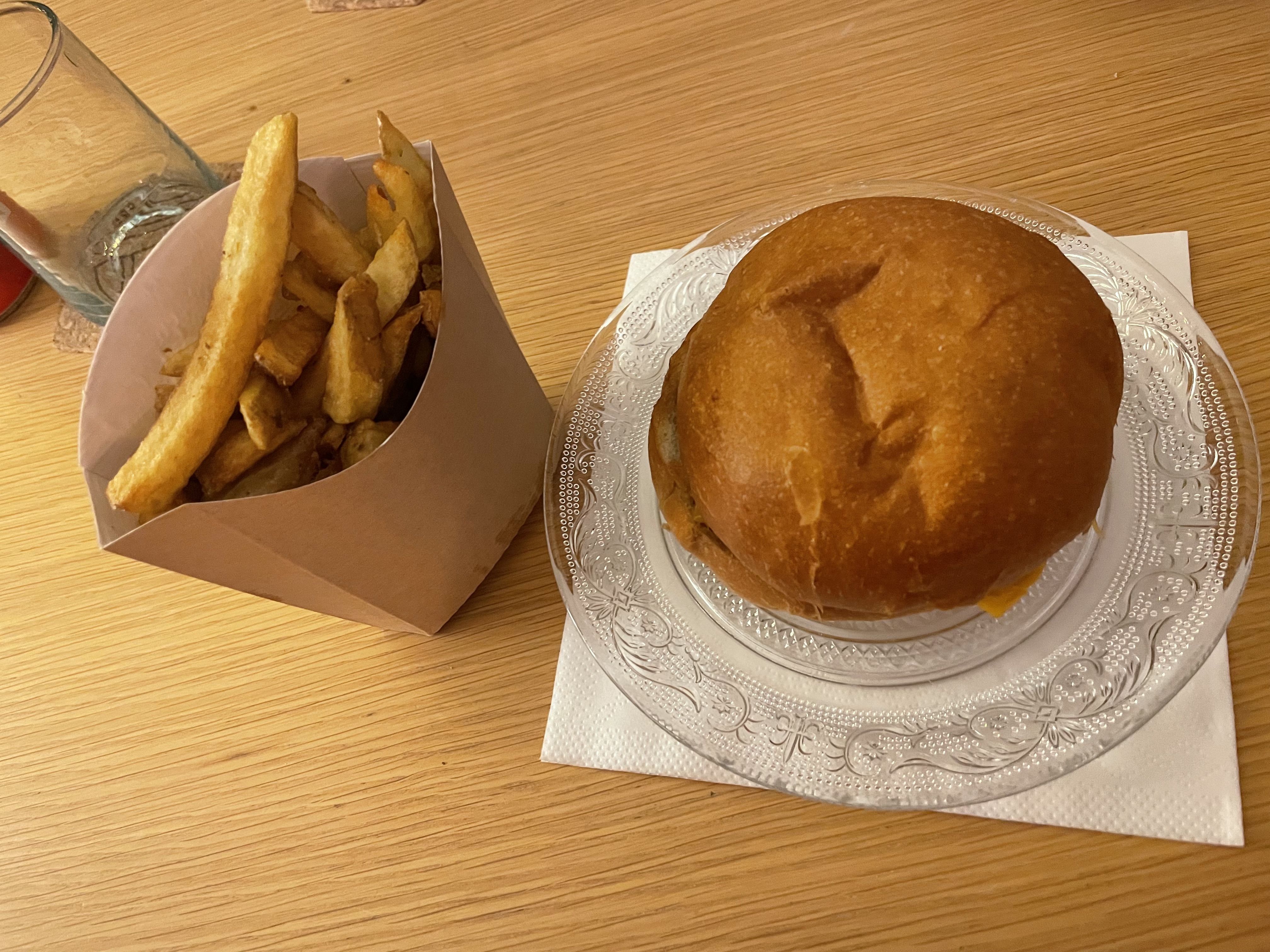 J’ai pris un Burger avec une portion de frites et une boisson le Burger est correct mais sans plus les frites elles sont bien cuite est croustillante dommage d’accompagner ça avec une mayonnaise bas de gamme