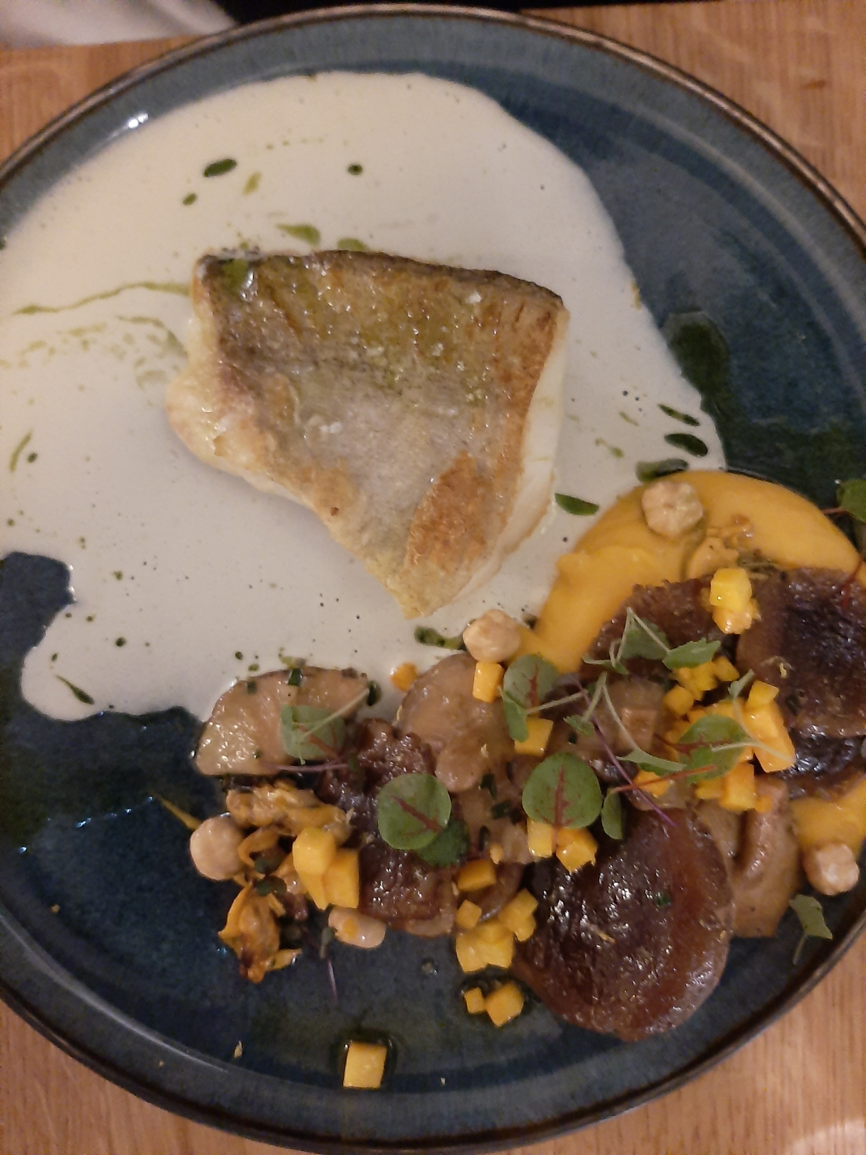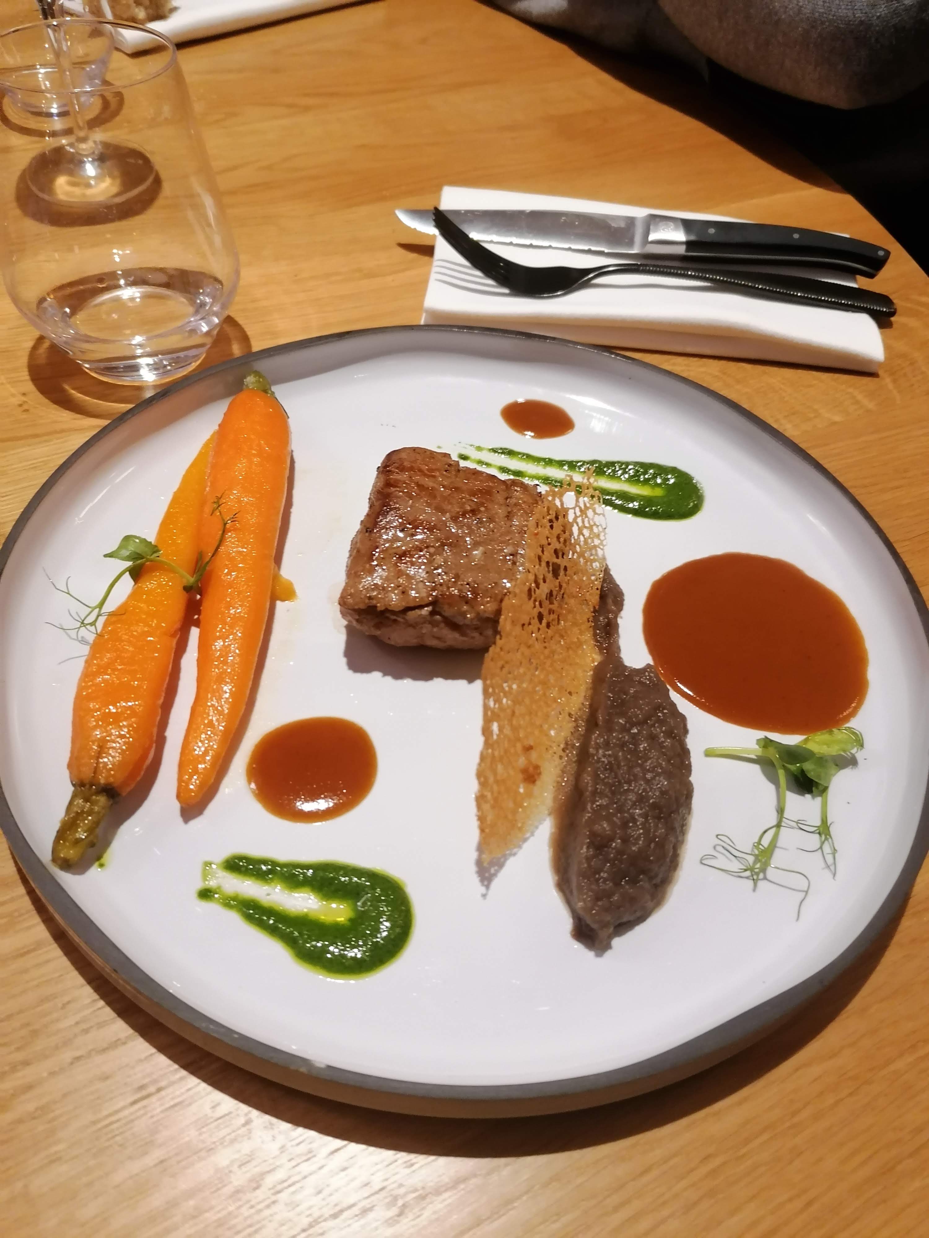 Très bon restaurant, un décors soigné. Sur les plats vraiment haut gamme rien à redire, juste la quantité, Dessert un peu lourd mais en soit c’est vraiment très bon! Nous avons pas eu les amuses bouches par oublie reconnu de la serveuse, Petit bémol sur les chaussures des serveurs, je pense une tenue plus soignée et identique serait à la hauteur de l’établissement et du standing.