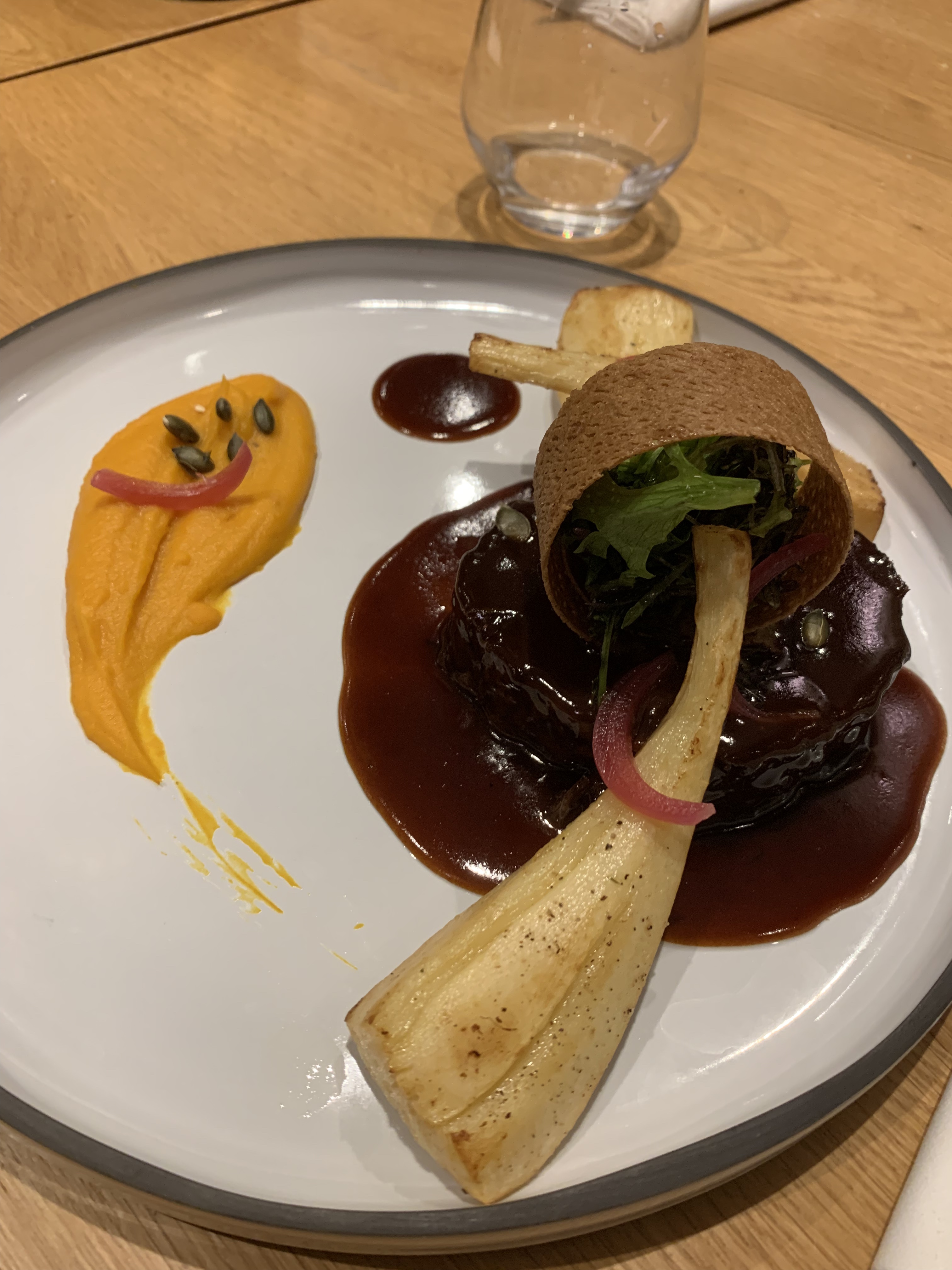 Cadre et décoration du restaurant très chaleureux. Les plats sont recherchés, je recommande la pintade elle était très bien cuite! Le service était également à la hauteur, même si des fois j’aurais tendance à dire qu’il était un peu long, mais les serveurs sont très agréables!