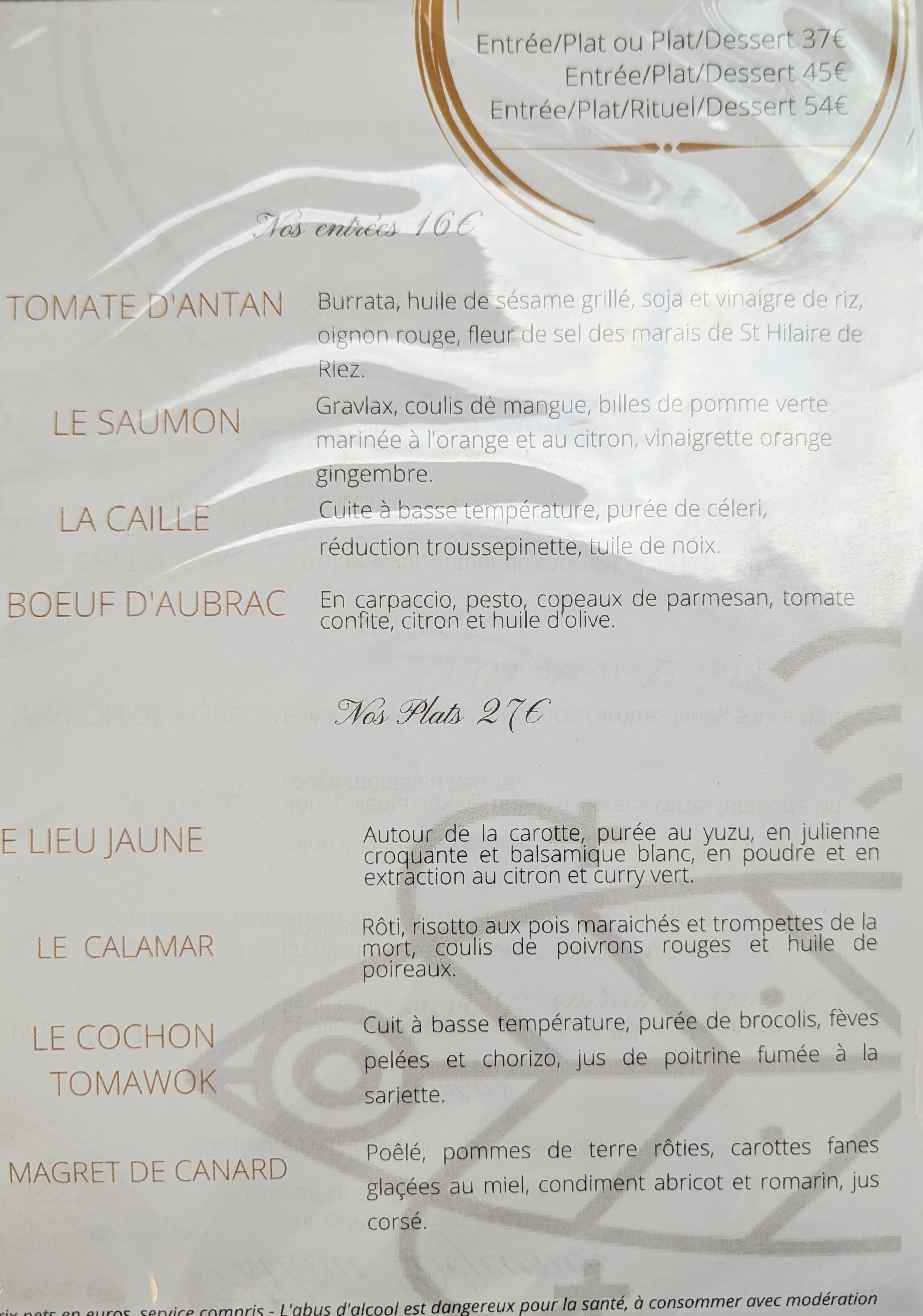 Nous avons trouvé le cadre très chaleureux ainsi que l accueil des serveurs très discret et à l écoute de nos envies. L originalité des plats nous a beaucoup plus. Très bon moment passé en amoureux. Nous retournerons avec plaisir. Nous recommandons ce lieu pour passer un agréable Repas.