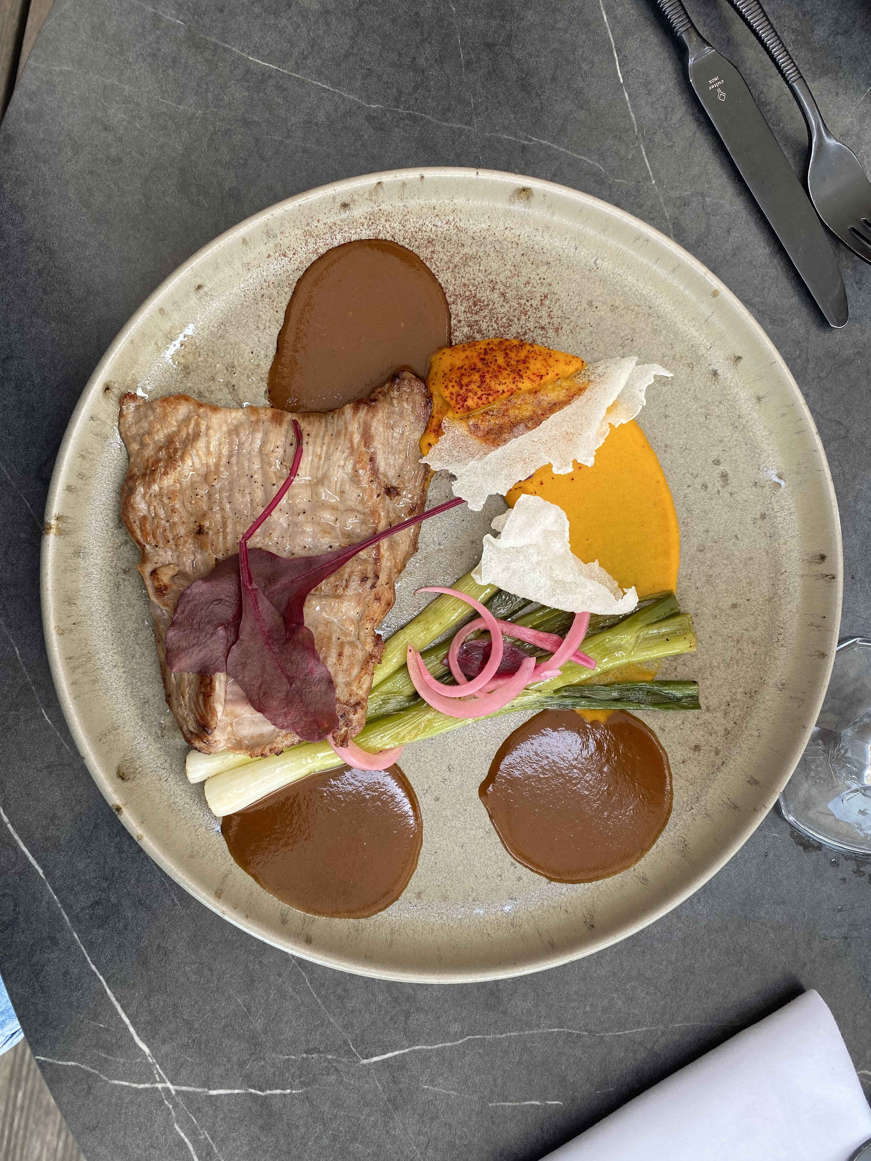 Très bon restaurant. Mon conjoint et moi avons passé une très bonne soirée. Salle superbe et très bien décorée. Les cocktails sont magnifiques ainsi que les assiettes. Les cuissons étaient très bien et bien assaisonné. Juste une toute petite chose, l'entré avec le parmentier de cochon était très bonne mais trop copieuse pour un début de repas. Merci