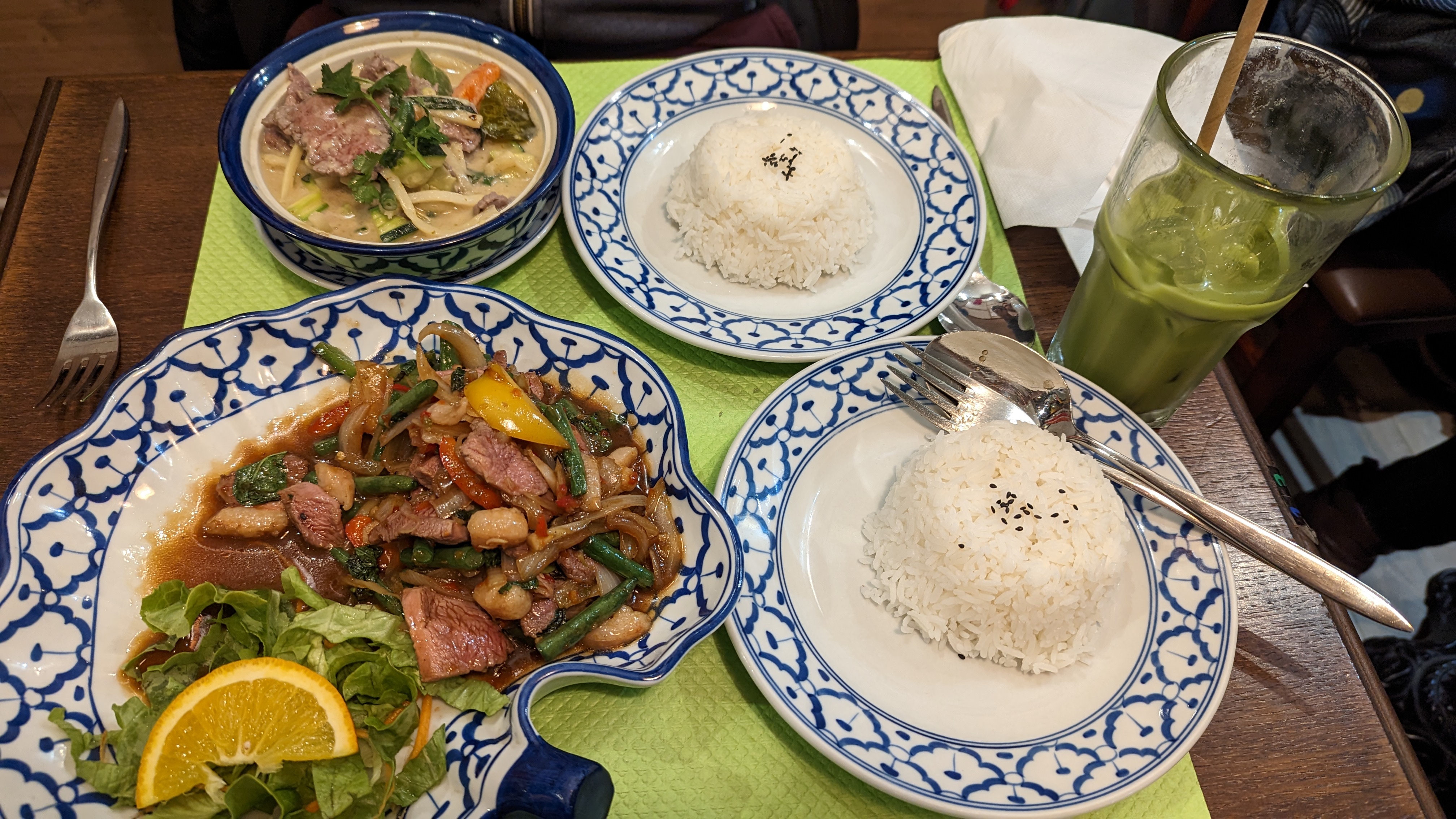 A part le personnel un peu indifférent aux clients, c'est un très bon restaurant thaïlandais pour le prix. En particulier, les desserts, crêpe thaï et thé au lait, étaient vraiment délicieux.