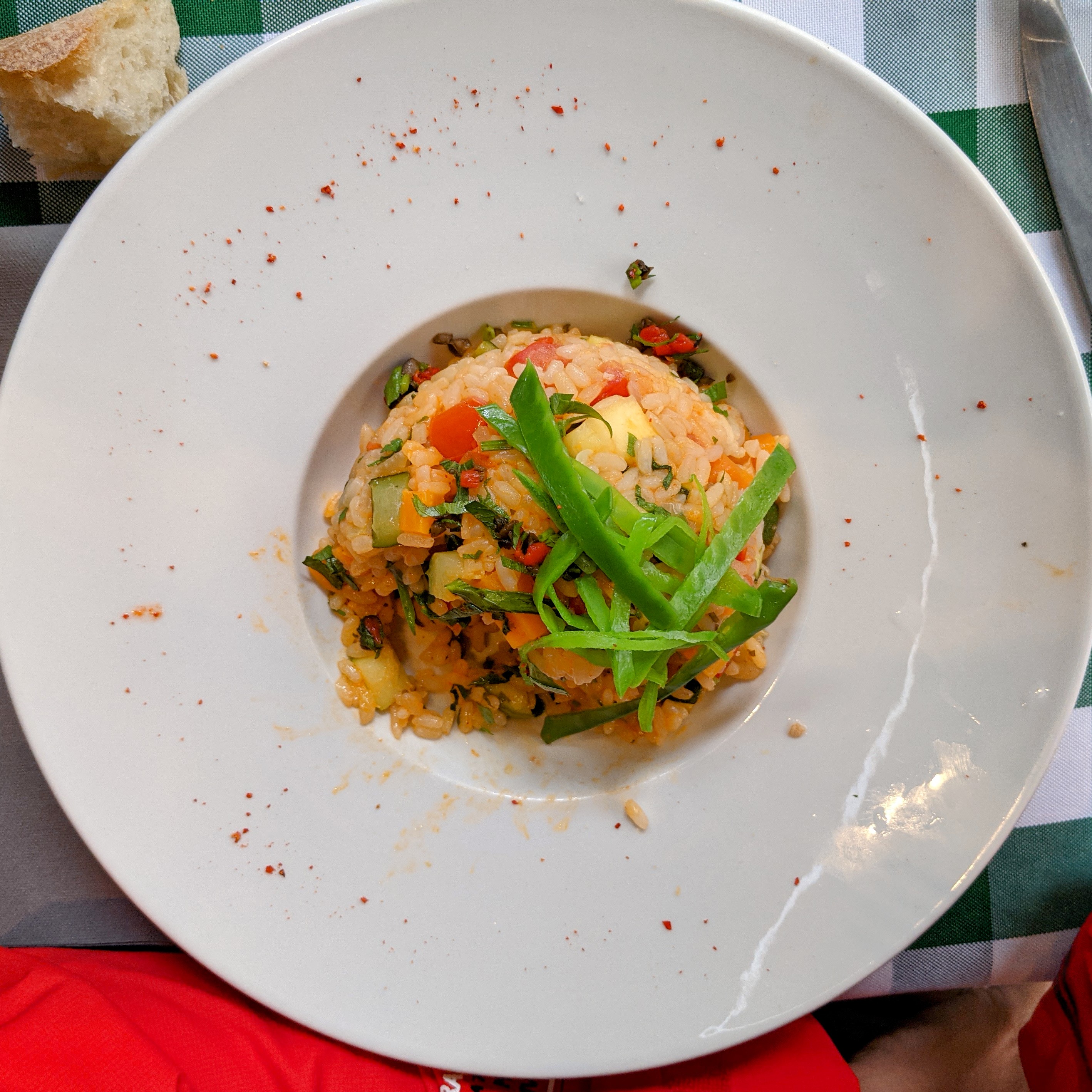 Un peu d'attente au début à cause de l'affluence, mais les serveurs étaient très dynamiques donc ça s'est fluidifié. Les desserts pimentés sont originaux et le risotto végétarien est délicieux