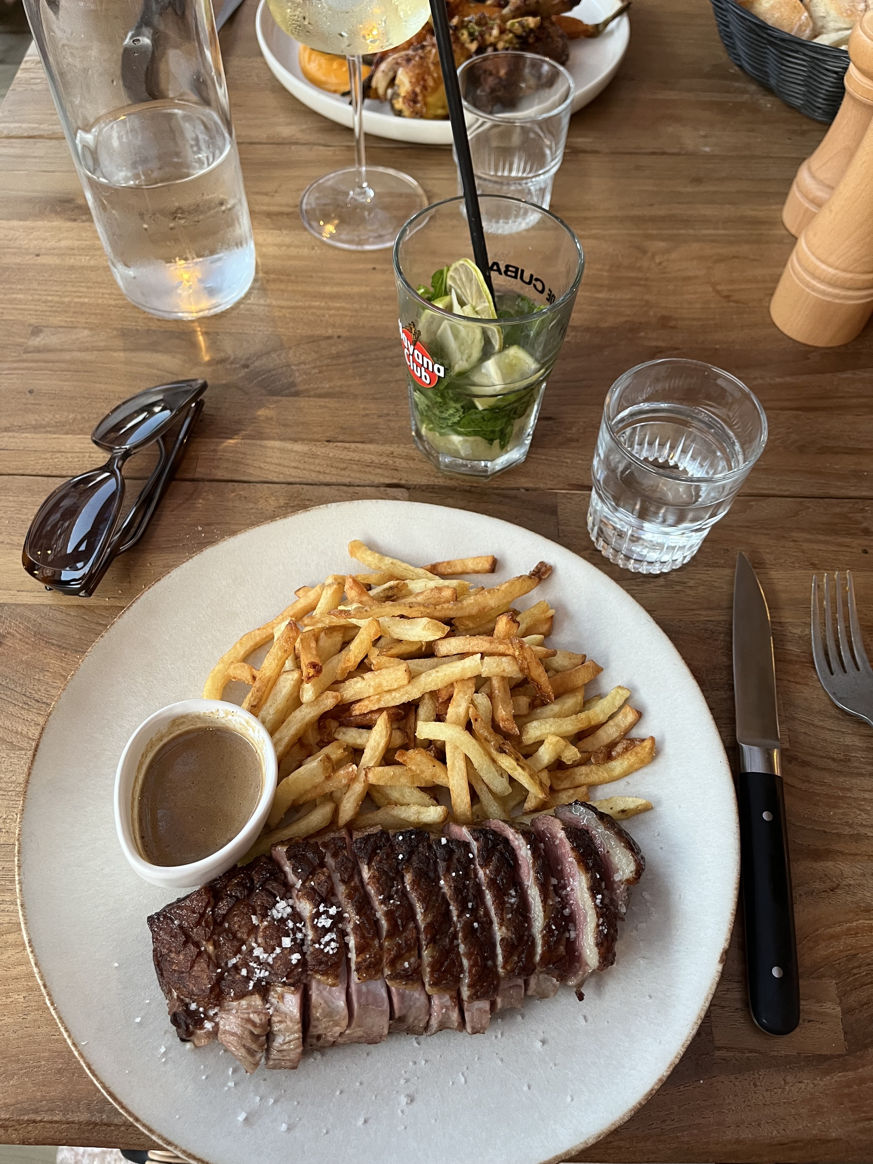 Cadre très agréable, personnel accueillant et efficace. Je recommande la salade Thai et le faux-filet (qui déborde de l'assiette). Le tout agrémenté d'un excellent Moulis. C'est donc maintenant une de nos tables préférées sur le Bassin.