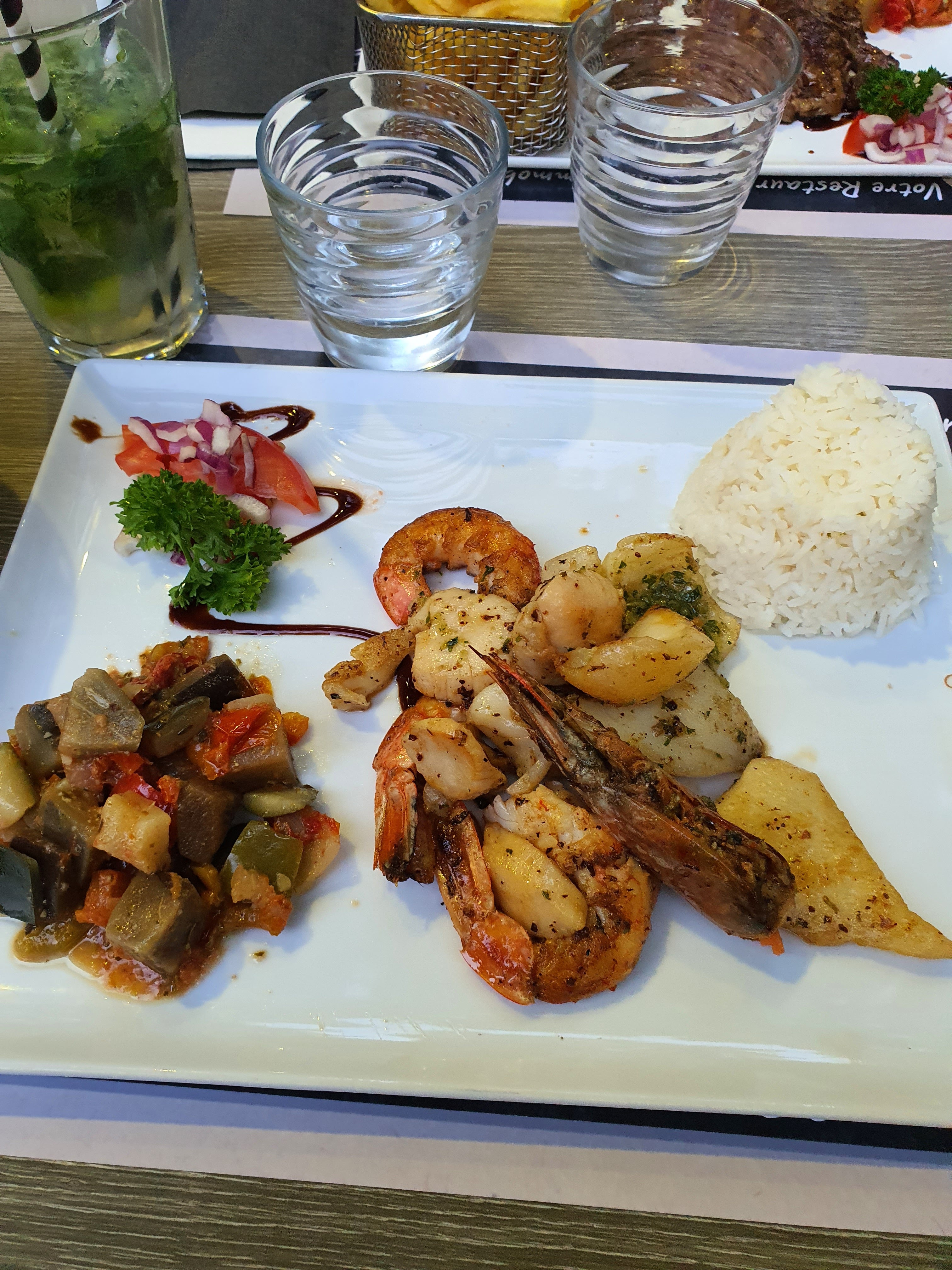 Mojito excellent , repas bon ( sauf les desserts ) mais service problématique trop de serveurs qui brassent bcp de vent en tout je crois qu on a eu 4 ou 5 différents J espère pour eux que c est a cause de la reprise