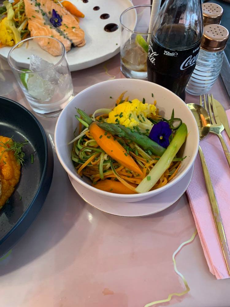 Je suis un peu mitigé, après avoir attendu 1h dans les marches à l’entrée nous avons enfin étais installer à table. En temps normal je serais partie sans manger mais nous avions réserver le créneau de 14h30 et autant dire que j’avais vraiment faim. Il n’y a que 5 plats & 2 desserts donc autant dire qu’il ne faut pas être trop difficile. Maintenant nous avions pris 3 plats et 2 boissons qui était plus simple mais bon. Les serveurs était très polie et sympathique. La jeune femme également sympathique mais débordé par l’afflue de monde. Expérience sympa à faire 1 fois. Mais je ne pense pas re manger dans ce type de restaurant. Instagramable mais rien de plus.