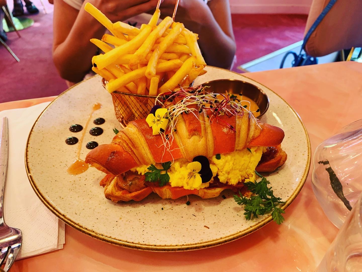 Le restaurant est très girly et bien situé. Je trouve que c'est plus beau que bon. Les portions ne sont pas généreuses ! Une gauffre inscrit sur la carte et dans l'assiette on nous donne une demi gauffre... Il n y a pas beaucoup de choix. J'ai pu prendre de belles photos donc j'ai pris plus de plaisir avec les yeux qu'avec la bouche lol. Le cocktail à la fraise n'avait rien de spécial et quand à la gauffre salée au poulet il n'y a même pas d'accompagnement avec. Je vous conseille de venir pour le tea time car pour un repas cela ne vaut pas le prix, vous ne serez pas rassasié. Aussi notez que le brunch est à la carte. Néanmoins le personnel est plutôt sympa. J'y retournerai pour un petit goûter peut être..