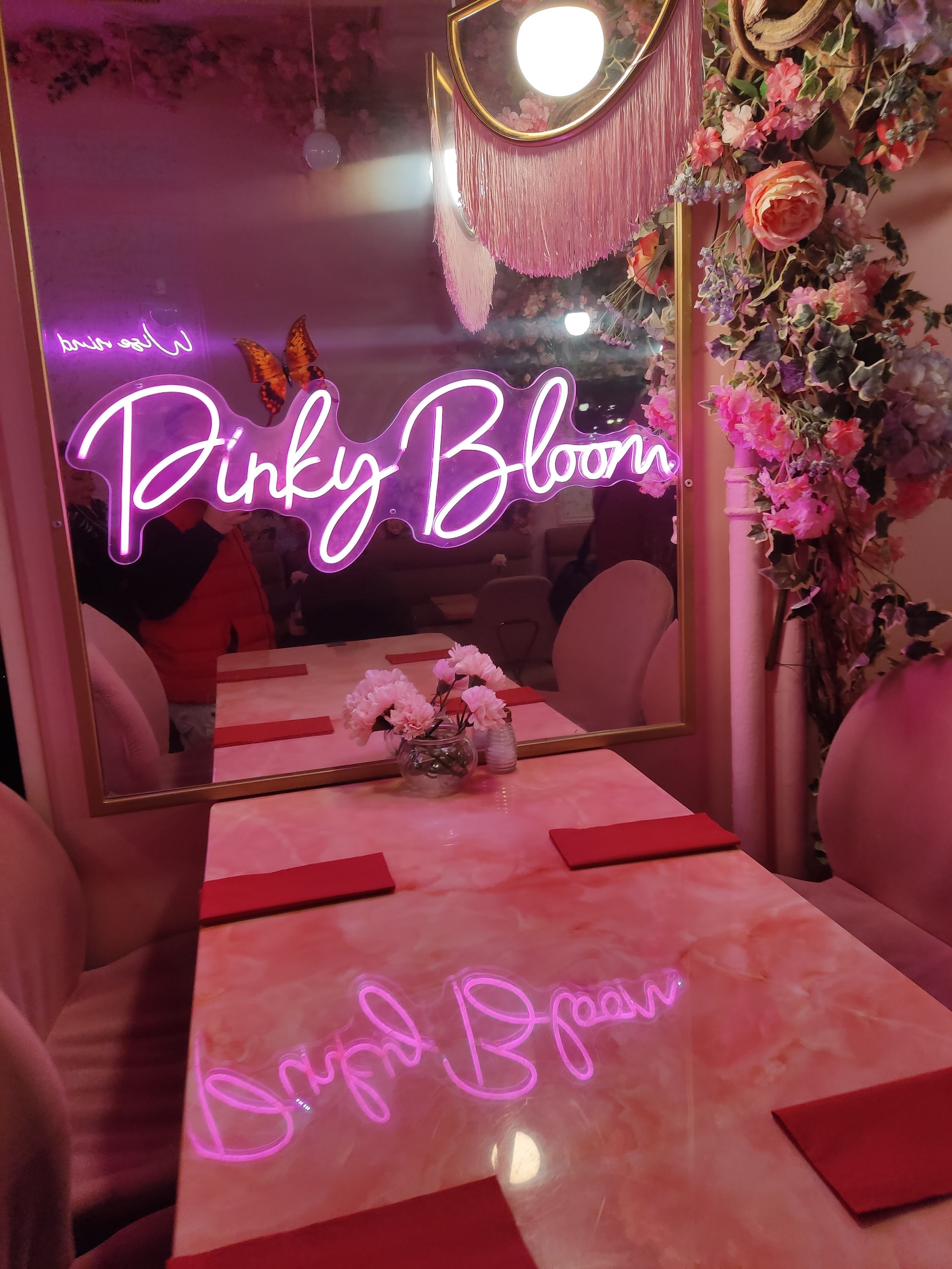 Nous avons été ce jour au pinky bloom…le cadre est très jolie les serveurs accueillants et la nourriture bonne mais attendre plus de 50min pour se faire servir quand la table est réservé pour 2h c’est beaucoup et ça gâche un peu le moment…si au moins on nous avait amener nos boissons…la musique un peu forte aussi mais l’attente est vraiment ce qui a pêché pour nous