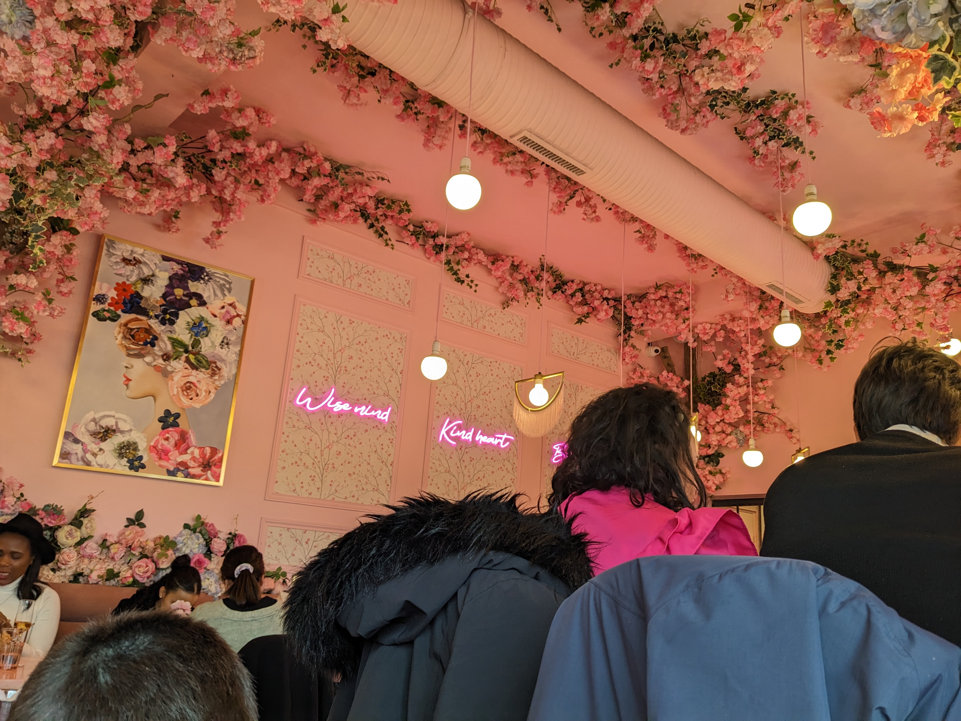 Lieu super beau, girly et « Instagrammable » comme dit dans les précédents commentaires cependant 60€ pour les plats présentés en photo (entrée + plat + dessert + boissons soft) je trouve ça super excessif surtout que gustativement ça ne suit pas forcément. A noté que le service est EXTRÊMEMENT long et que les tickets resto (carte ou papier) ne sont pas acceptés. Contrairement à d’autres, je n’ai rien a reprocher aux serveurs/serveuses.