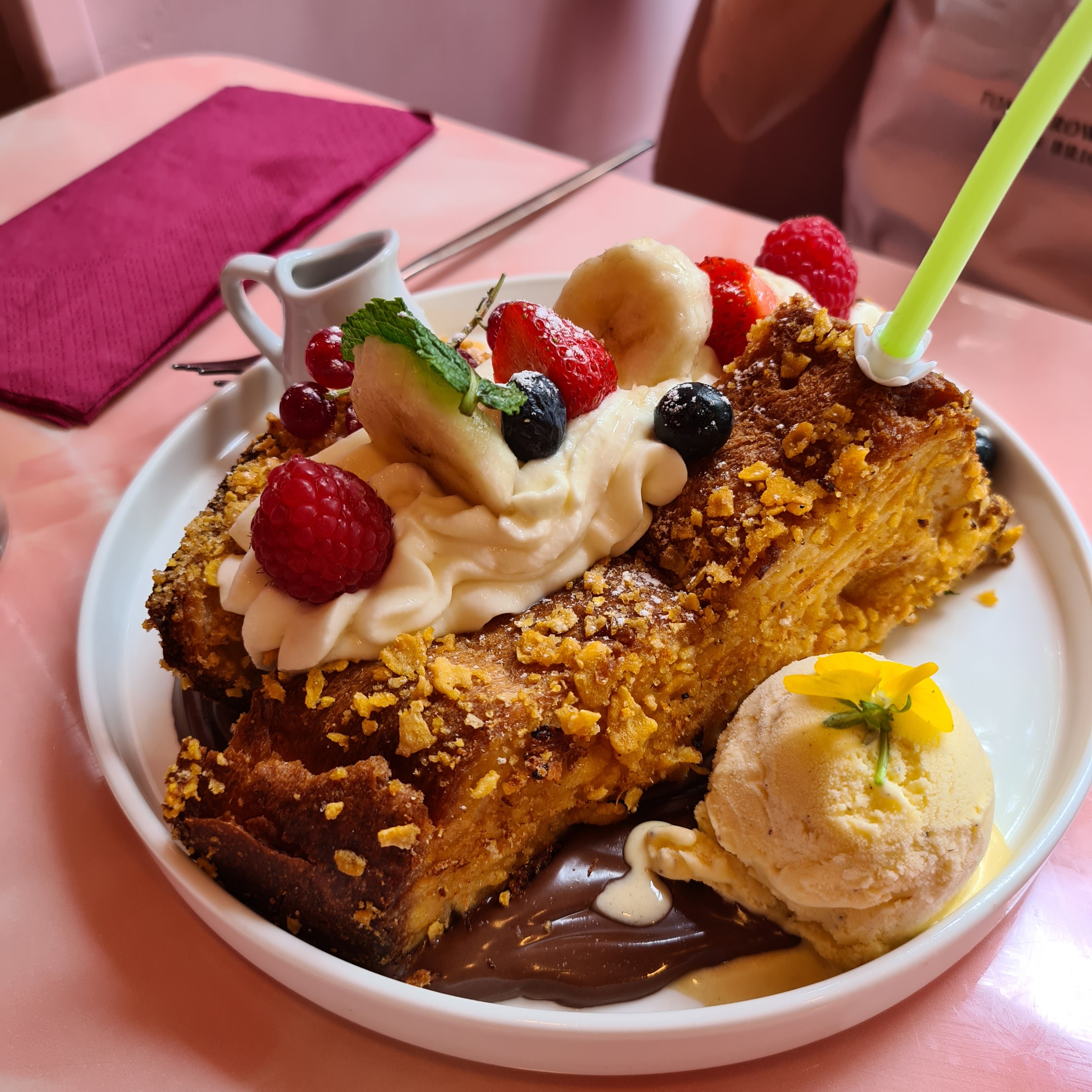 Excellente expérience, le décors est instagram able à souhait. Cela ravira madame et les accrocs du selfie! Pour les autres, les plats sont simples et très copieux. Le personnel est attentionné. Si vous venez le week-end, il faut absolument réserver. Ne pas prévoir une grande tablé car il y a peu d'espace dans la salle.