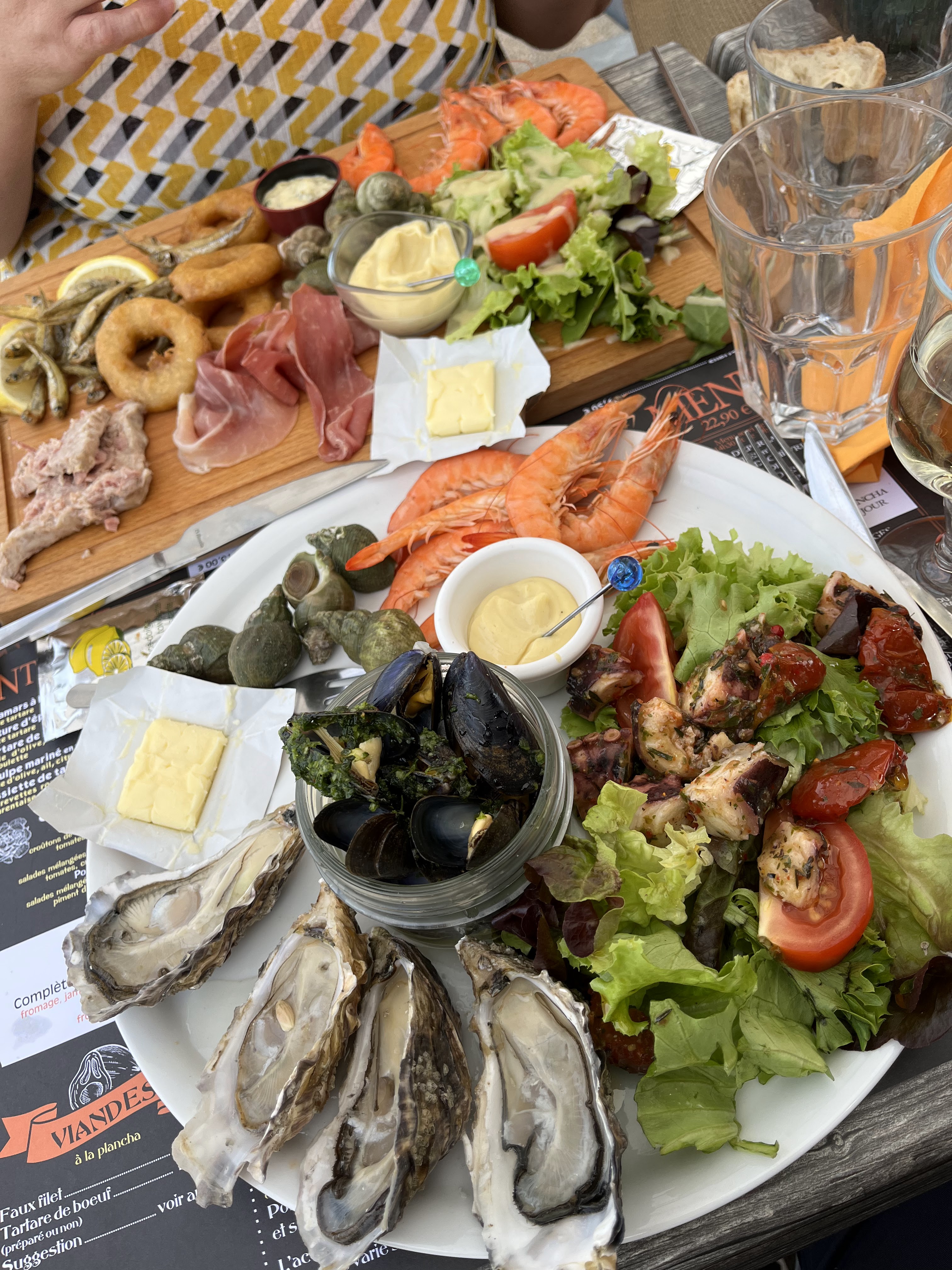 Je vais pas faire comme tout le monde, tout aurait pu être bien sauf que mon assiette de coquillages contenait des crevettes pas fraîches, elles sentaient mauvais j'ai voulu goûter beurkkk. Sans rien dire à mon mari je lui en ai décortiqué une et pareil beurkkk. Je trouve inadmissible de servir dans un restaurant des produits de la mer pas frais. Je fuierai ce restaurant. Personnel pas top. Une vraie cantine