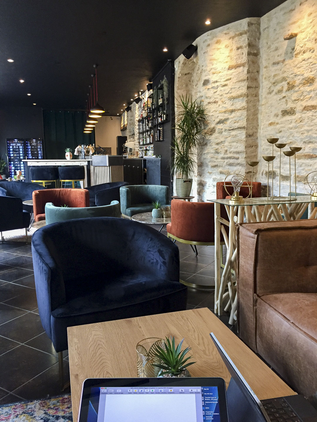 L’intérieur lounge cosy nous a donné envie de nous installer pour l’après-midi en attendant l’ouverture de notre chambre d’hôte à 18h. Il était 14h et nous avons été chaleureusement accueillis avec la possibilité de nous restaurer bien que l’heure du déjeuner soit passée. Le service attentif et les plats délicieux ont confirmé notre intuition, l’endroit idéal pour une session de travail avant de déguster une merveille locale recommandée par le maître des lieux, choisie dans une carte des vins étoffée, comment cela pourrait-il être autrement ? nous sommes au Pinot Noir ! Retransmission d’un match de titans à Rolland Garros projeté sur grand écran suivie d’un concert live clavier et batterie : nous avions prévu de découvrir une autre adresse recommandée, et bien nous sommes restés !!