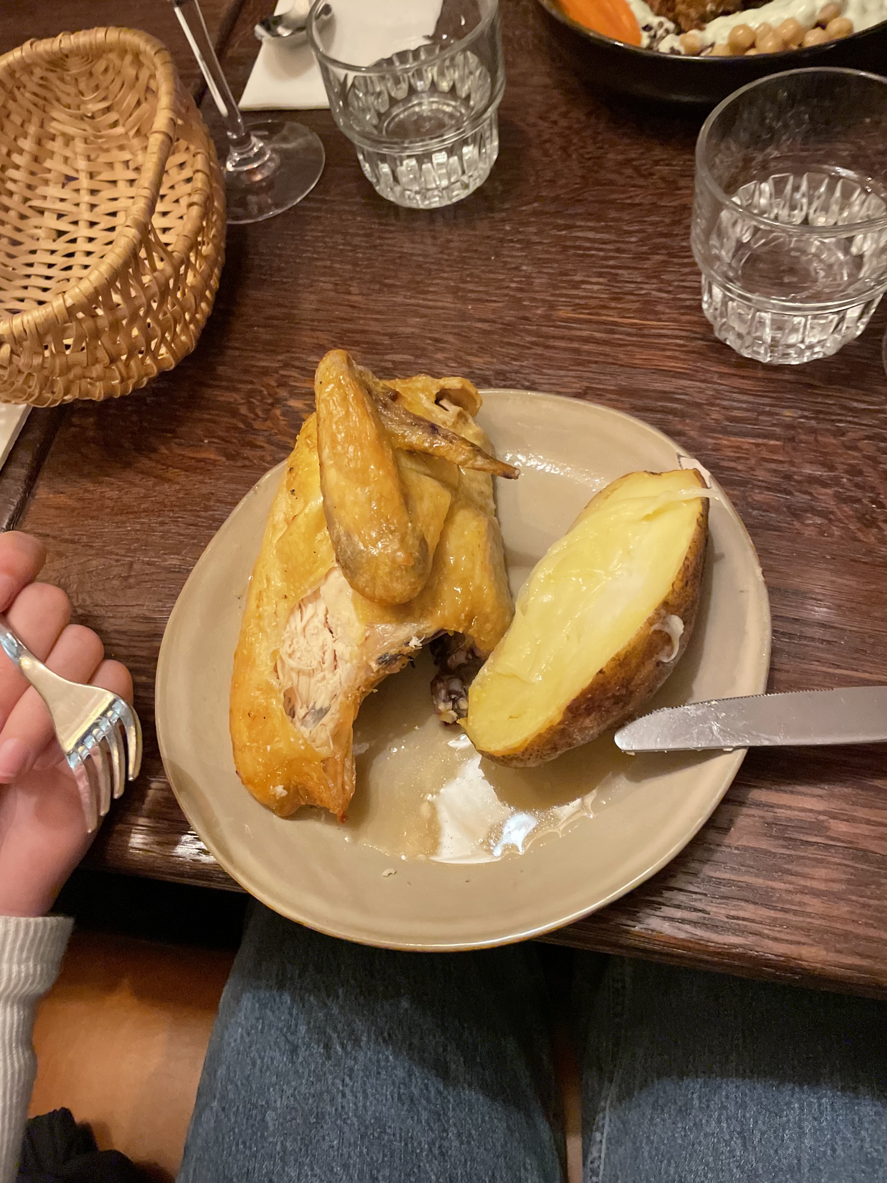Le poulet était froid au moment de servir. Il n'y a pas de sauce. Il y avait un cheveu au milieu du plat. Seul le pain était bon. Pas de beurre.😔