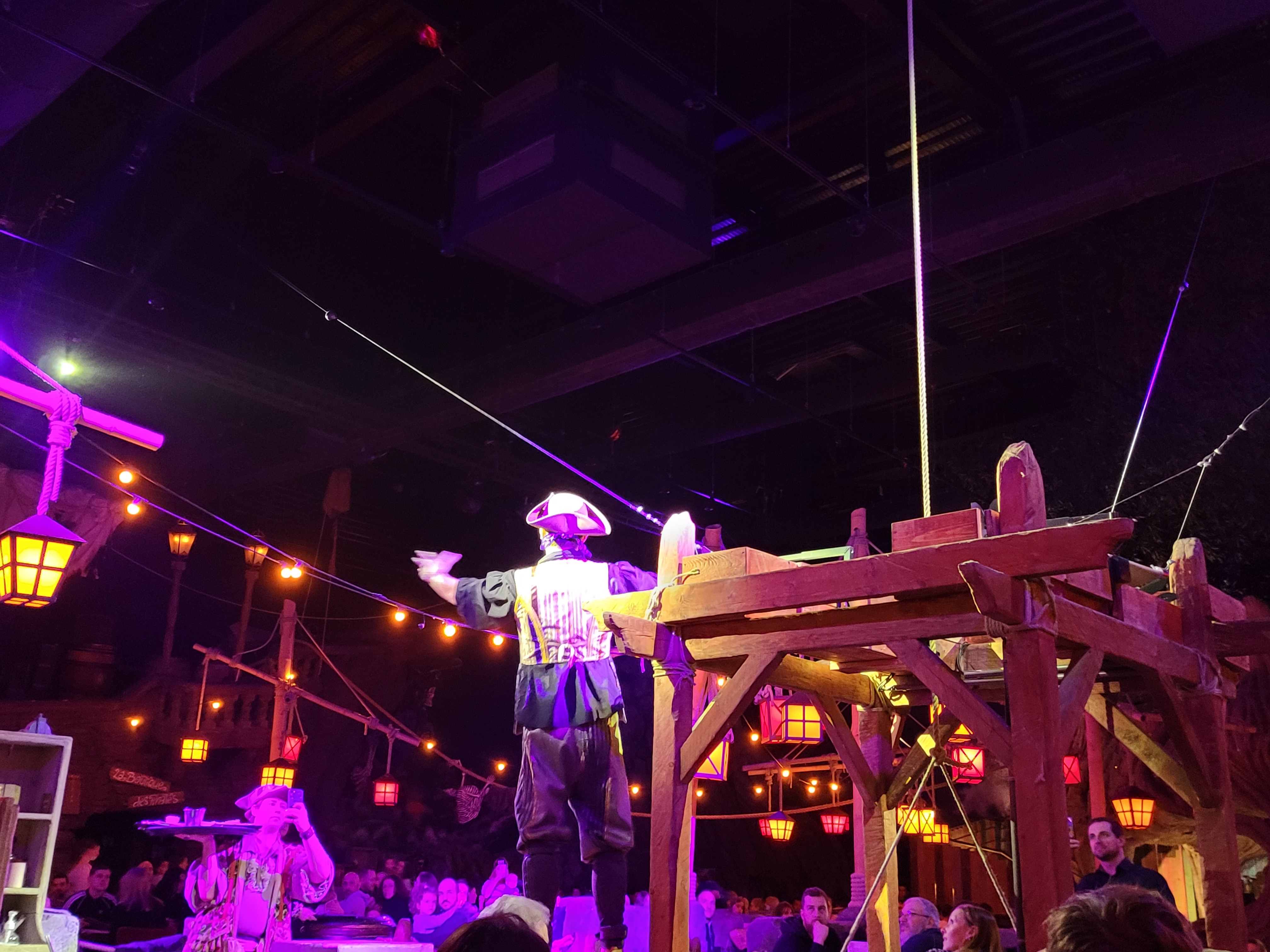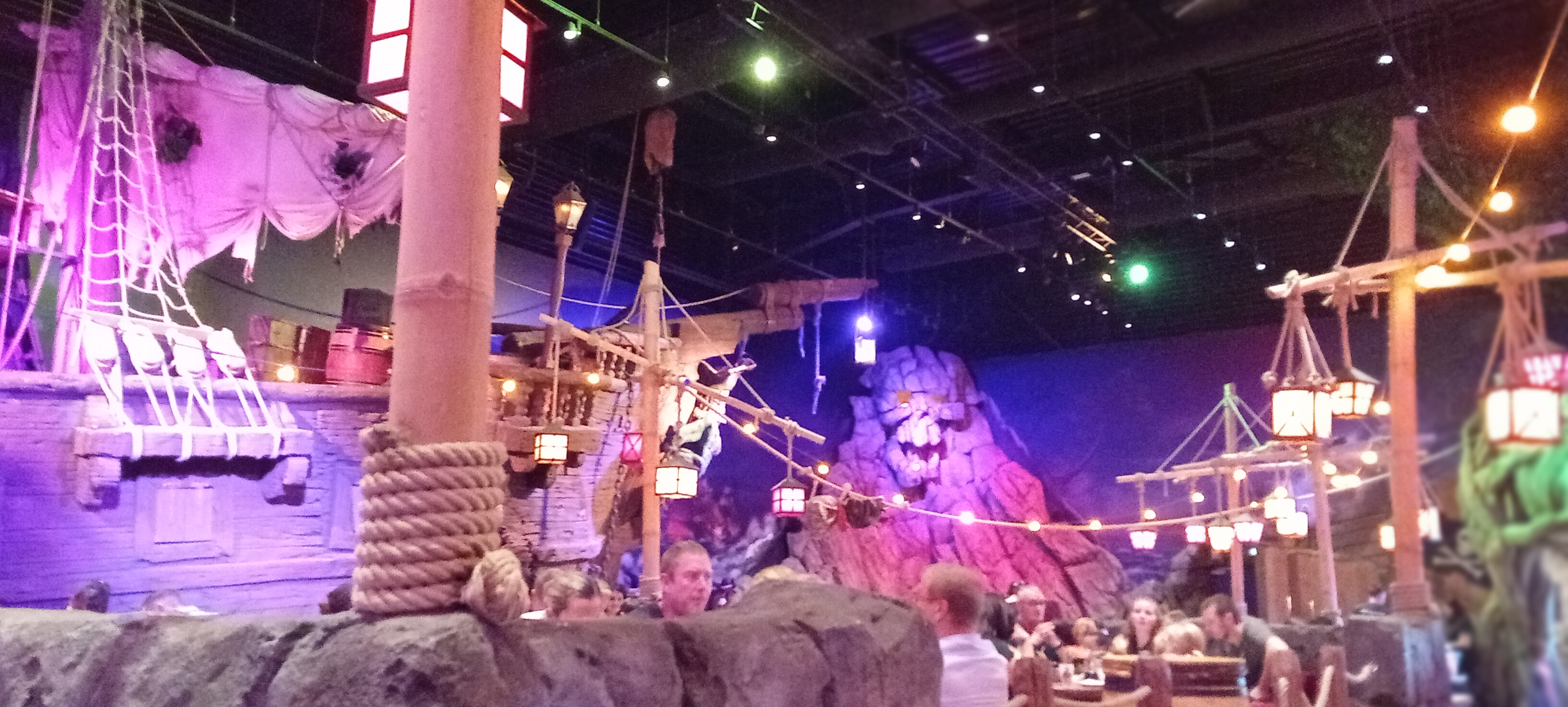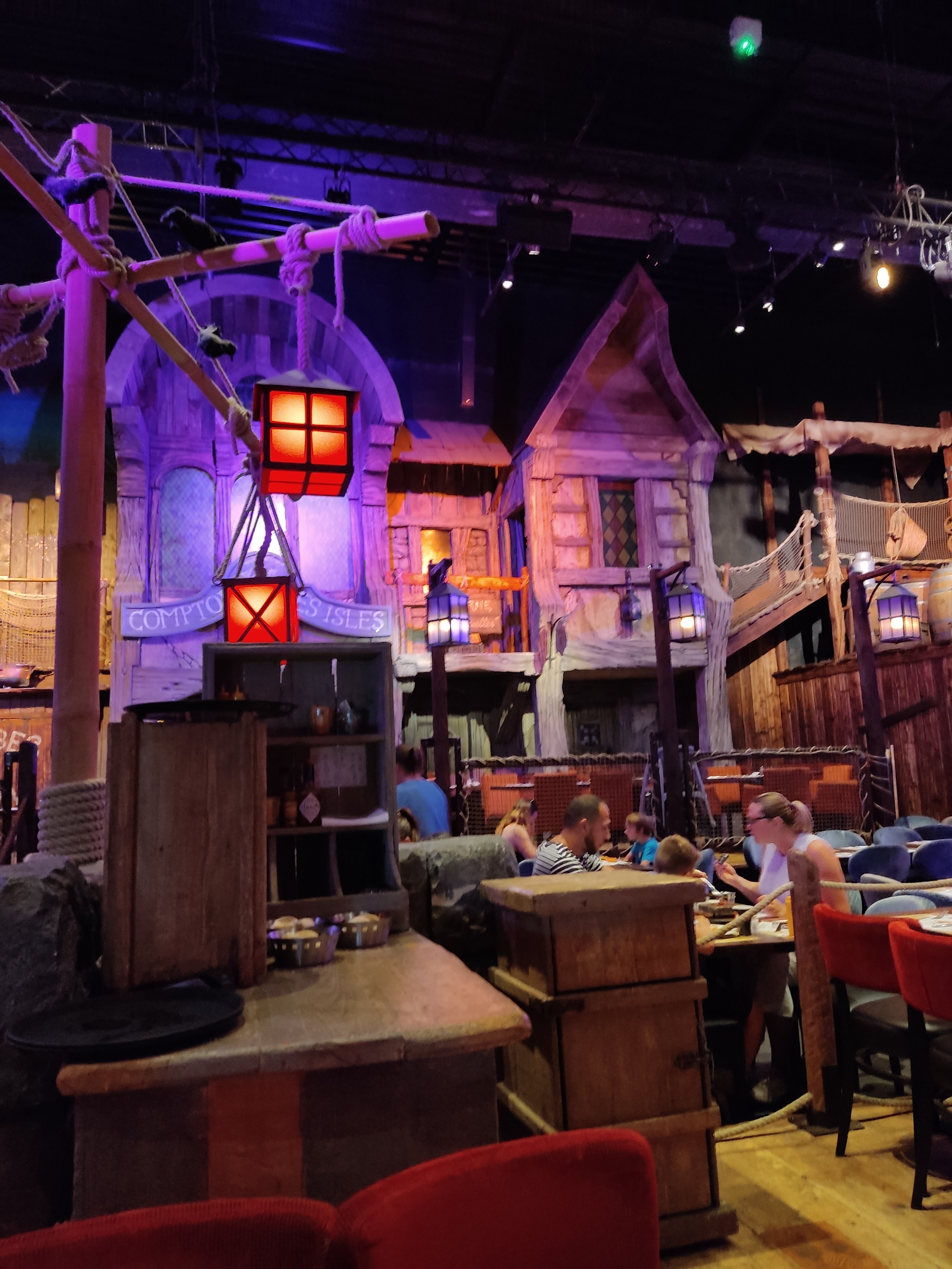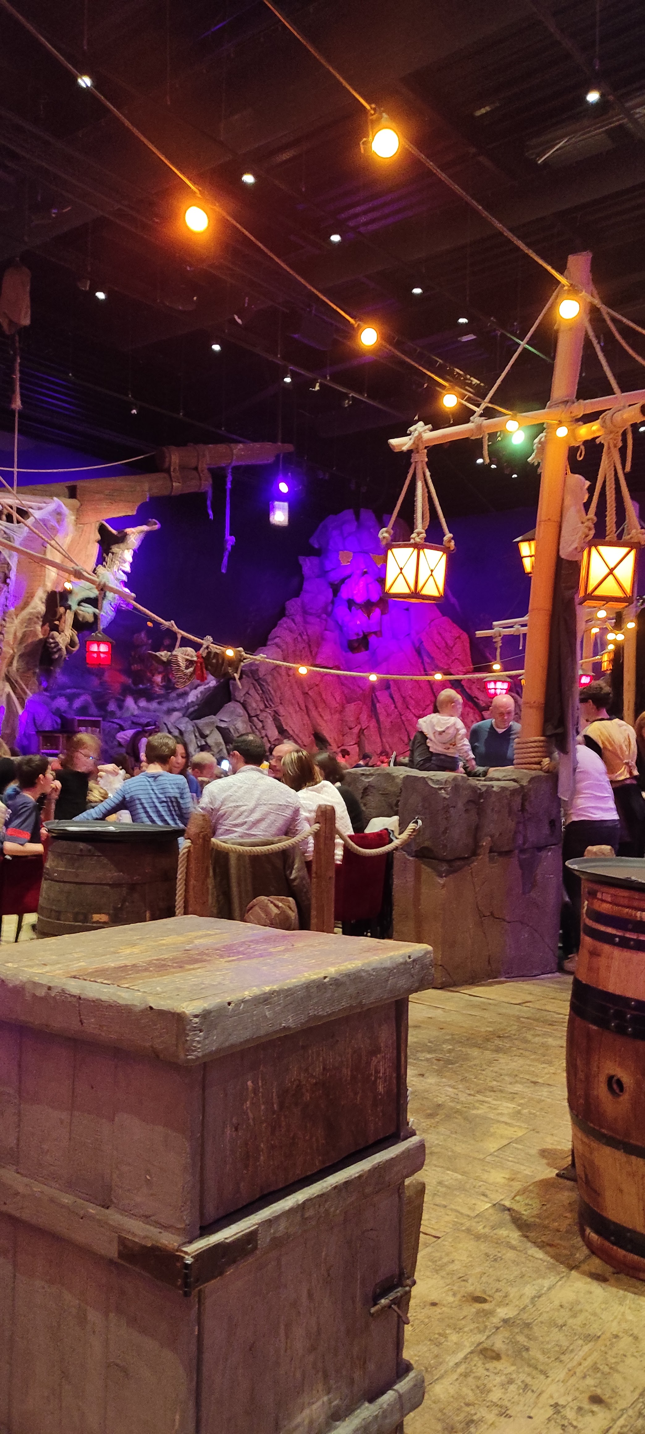 Première rencontre avec ce nouveau restaurant spectacle sur le thème de la piraterie. Il est vrai que ce restaurant est assez bruyant ce qui aurait pu lui coûter quelques mauvais points mais l'ambiance générale et le staff nous met dans l'ambiance et finalement pour un restaurant familial on est sur les standards habituels. Les menus sont intéressants et disposent de pas mal de choix, les plats sont très bons et copieux. Il est essentiel que vous preniez le temps de réserver votre table surtout le weekend, mais vous y passerez sûrement un agréable moment en famille.