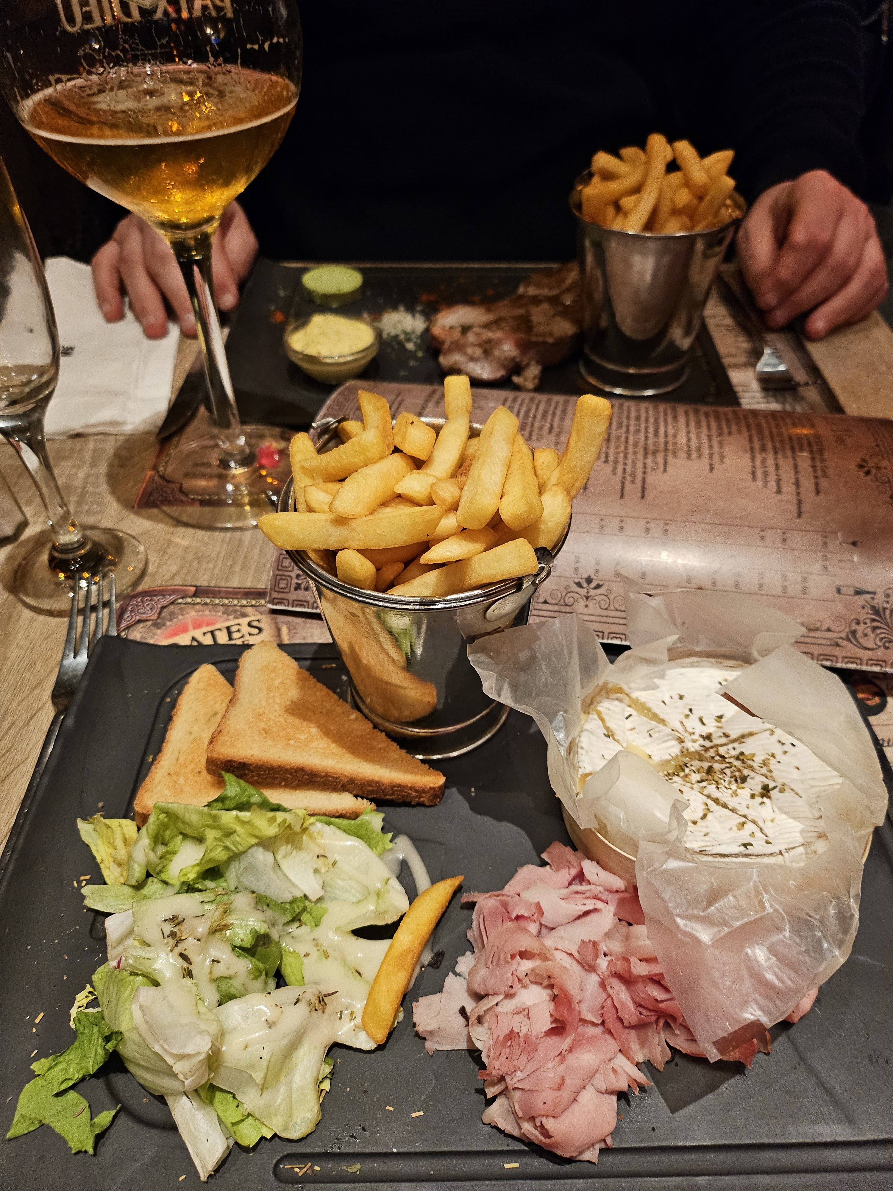 Points positifs: - Accueil agréable - Top ambiance - Joli décor Points négatifs: - Je ne comprends pas pourquoi laisser sur le set de table le code QR pour me dire de ne pas regarder dessus mais sur la carte présente sur la table car certains plats n’y sont plus, très dommage d’ailleurs car j’avais choisi un menu qui ne figurait pas sur la carte papier - J’ai commandé un camembert rôti (très bon d’ailleurs) le seul hic, presque pas de pain (1 pain toast coupé en deux) et je trouve que pour un camembert c’est quand même la base - Cocktail pas très généreux en quantité Mais je reviendrais quand même avec mes enfants de 1 & 3 ans pour l’ambiance, et je ne vais pas là pour manger comme dans un gastronomique mais il y a quand même des points à améliorer. À bientôt !