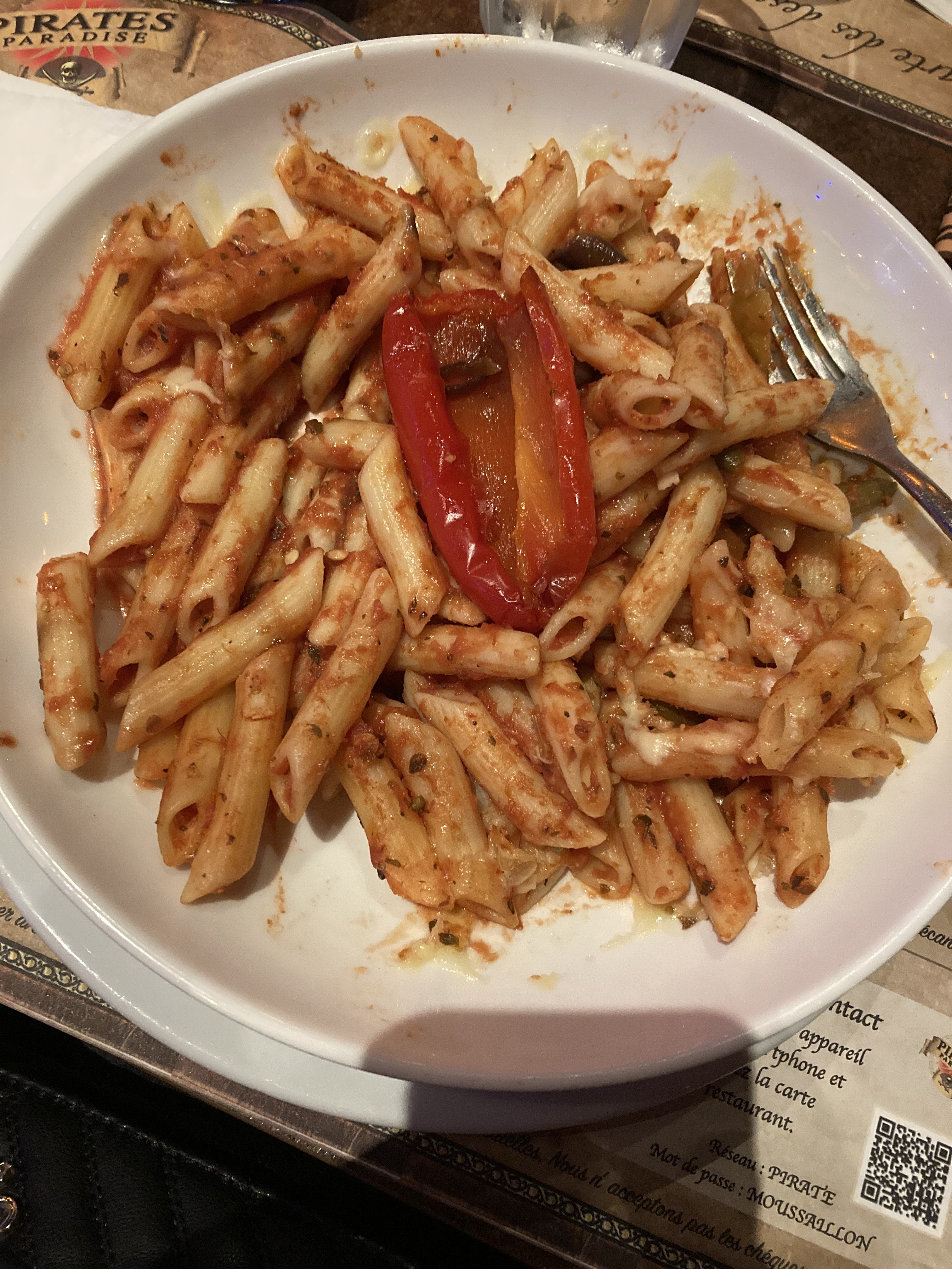 Plats servis pas très chauds mais super endroit, belle ambiance de pirates, les serveurs sont dans leurs personnages pendant et en dehors du spectacle, les enfants sont ravis de l’espace jeux, bref un bon resto a faire en famille !