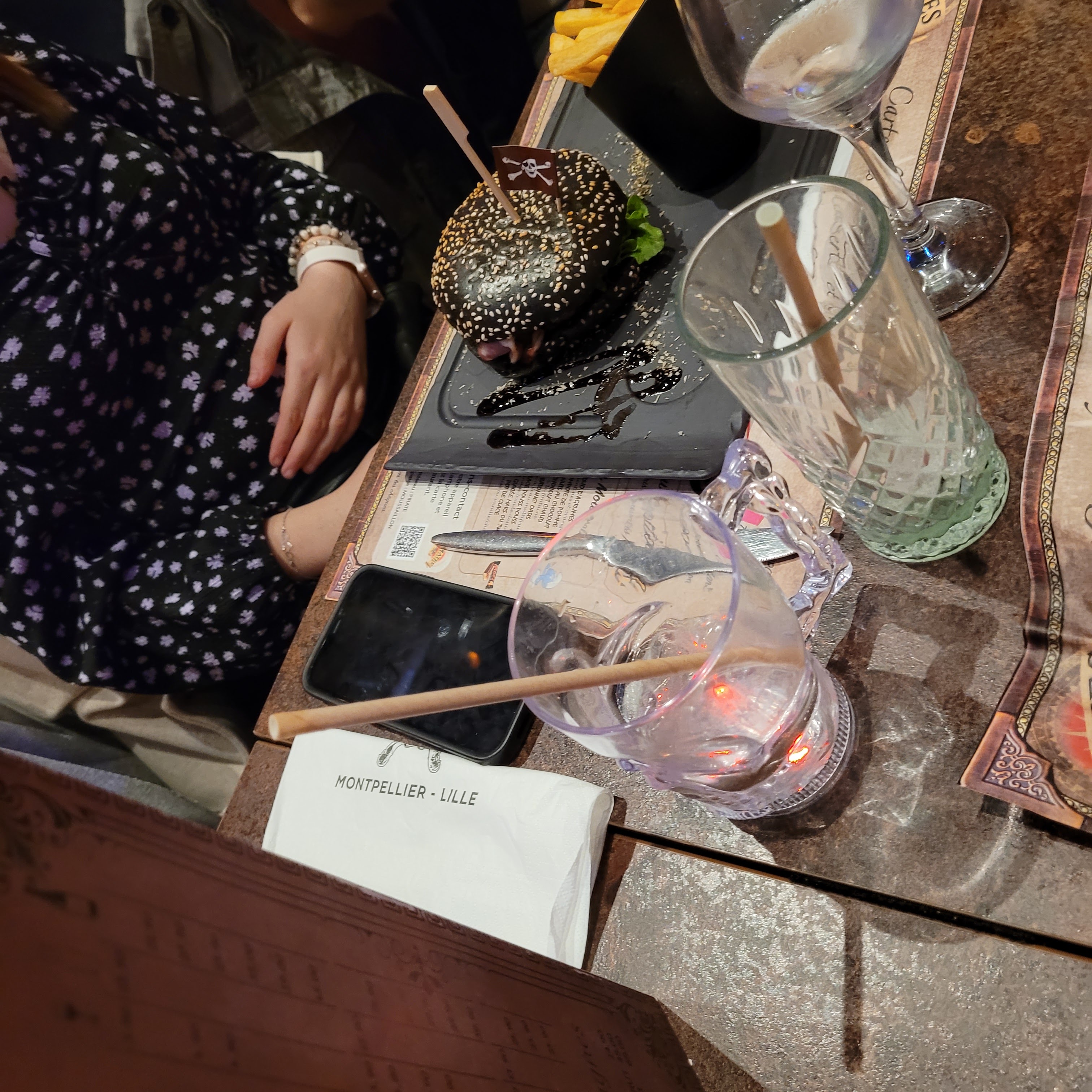 Bonjour, Ce restaurant est idéal pour les familles avec jeunes enfants. Lorsque nous arrivons, nous sommes directement plongés dans l'ambiance : l'accueil dynamique, décors, costumes et animation. (4⭐️) Concernant le repas, c'est une cuisine de brasserie, simple, efficace, servie rapidement, mais hélas, pas assez copieuse. Pour l'entrée, nous avons pris la cassolette de Saint-Macelin. J'aurais apprécié avoir du pain en accompagnement. Pour le plat de résistance, nous avons opté pour le Burger-black-beef. Il est bon et suffisamment copieux si vous le prenez en double. Cuisson respectée, mais cependant, déception pour les frites et pas de sauce pour les accompagner... (3⭐️)