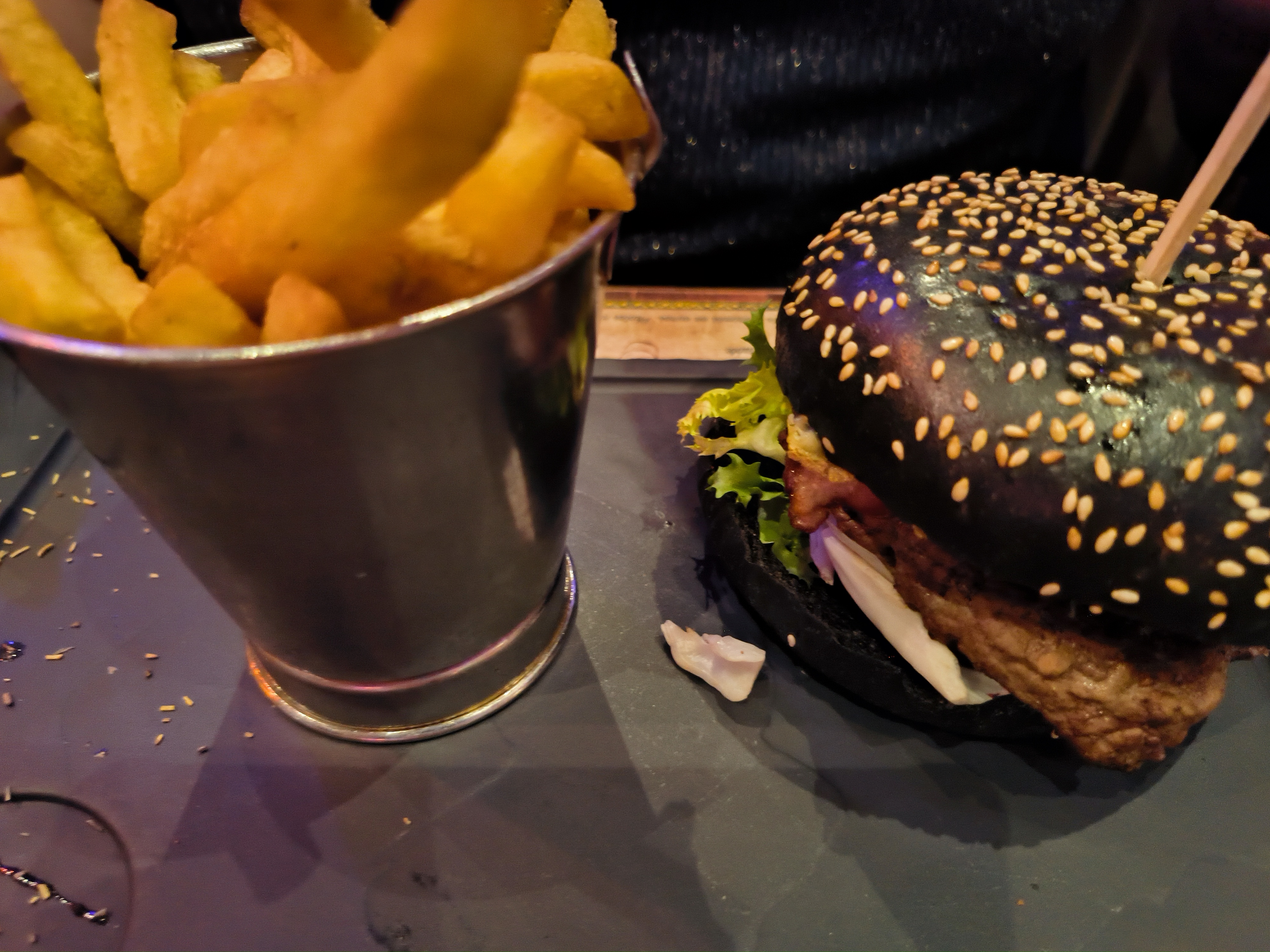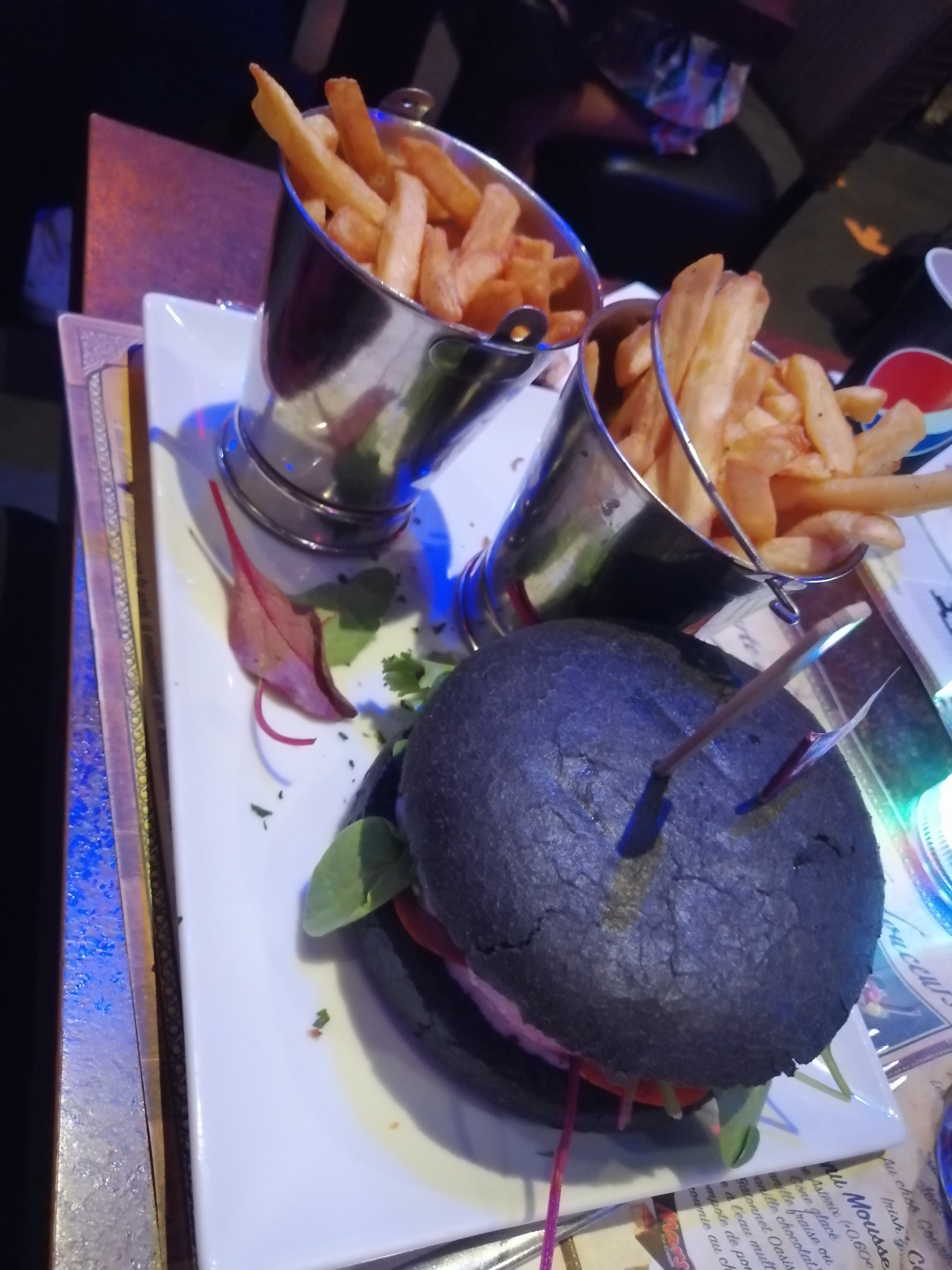 Que dire. Cela faisait un moment que je n’avais pas été à cet endroit. La cuisine n’a pas changé ni évolué, c’est une catastrophe sans nom. Le pain du burger black était cramé, donc dur. Burger sans intérêt limite du consommable, a part le steak haché les frites ( des surgelés sans doute) bof. Le menu enfant, mauvais. Un peu goût non d’un chien, ce n’est pas difficile. Le spectacle ! De pire en pire très raccourci, c’est pas pour moi mais les enfants ont été très déçus. Plus jamais je ne reviendrai dans cet établissement. Addition salée pour ce qu’ils vous servent, bref nourriture sans intérêt on ne vient pas ici pour manger mais pour ce nourrir, à prix égal, il y a vraiment mieux. De pire en pire.