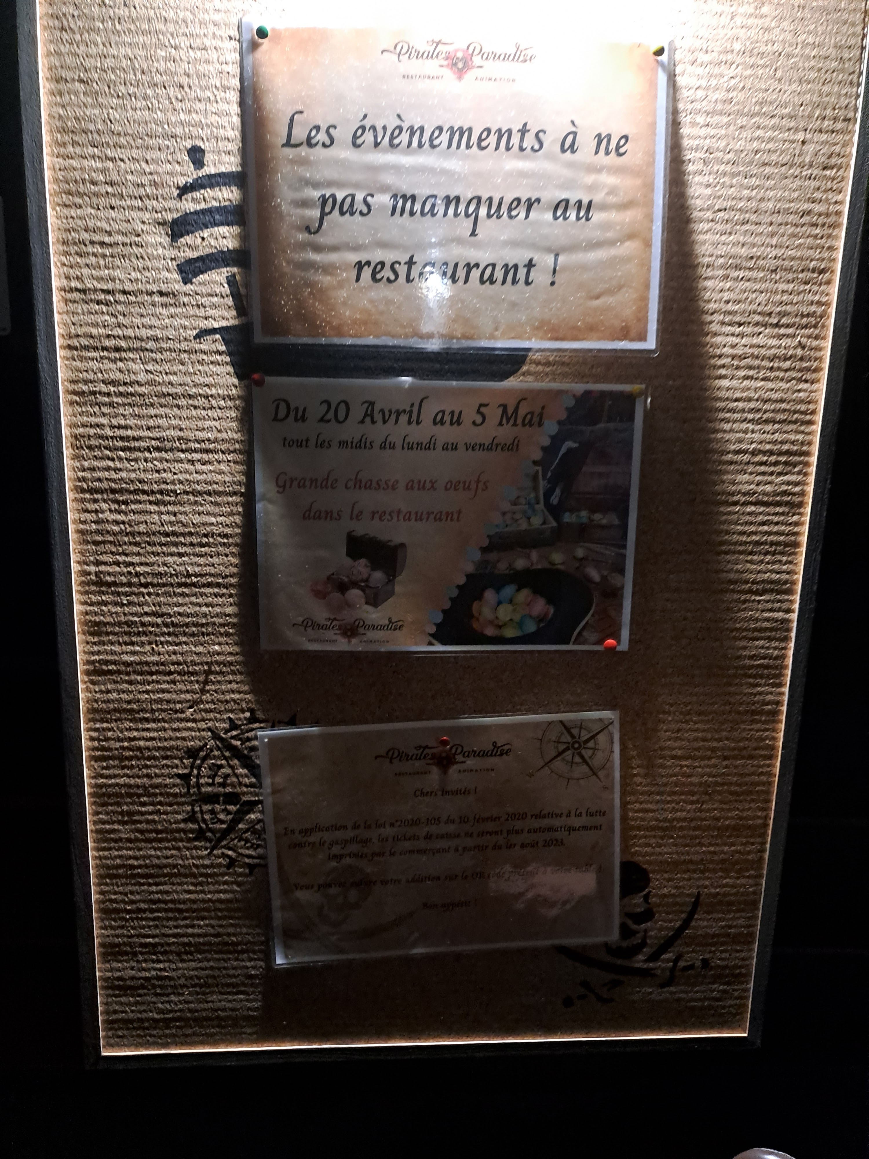 Sérieusement on ne se lasse pas de venir déguster chez vous et quelle ambiance. Vous nous avez bien gâtés avec le spectacle de cracheuse de flamme à l'entrée et quand on rentre quel bonheur!! Nous avions eu du mal à partir. Discours de l'équipe très émouvant mais très mérité. Justement on rentre avec la banane et on ressort comme ça 😁😁😁😁😊😍. Continuez comme ça vous êtes au top. Et longues vies aux pirates. OH OH OH bienvenue à nos moussaillons. Vive Pirates Paradise lol