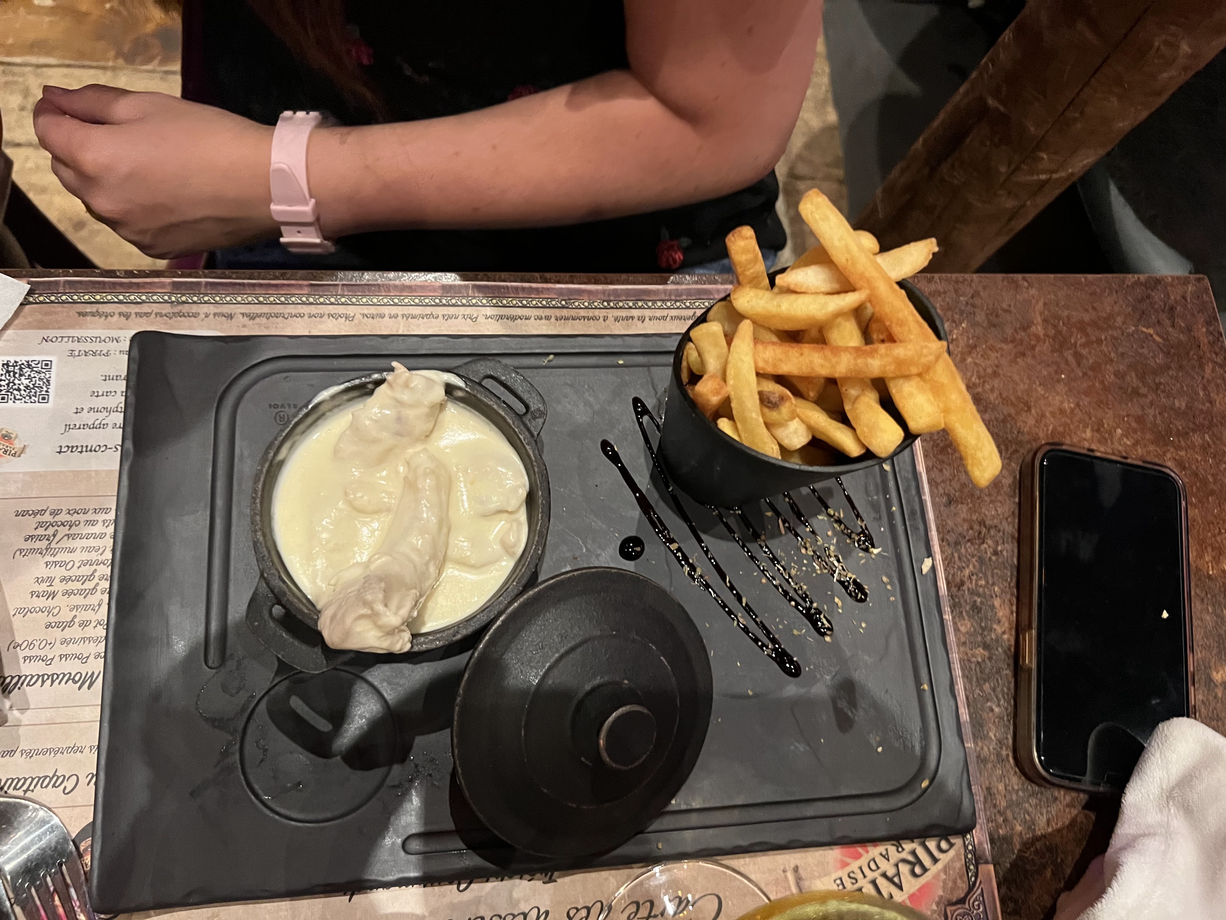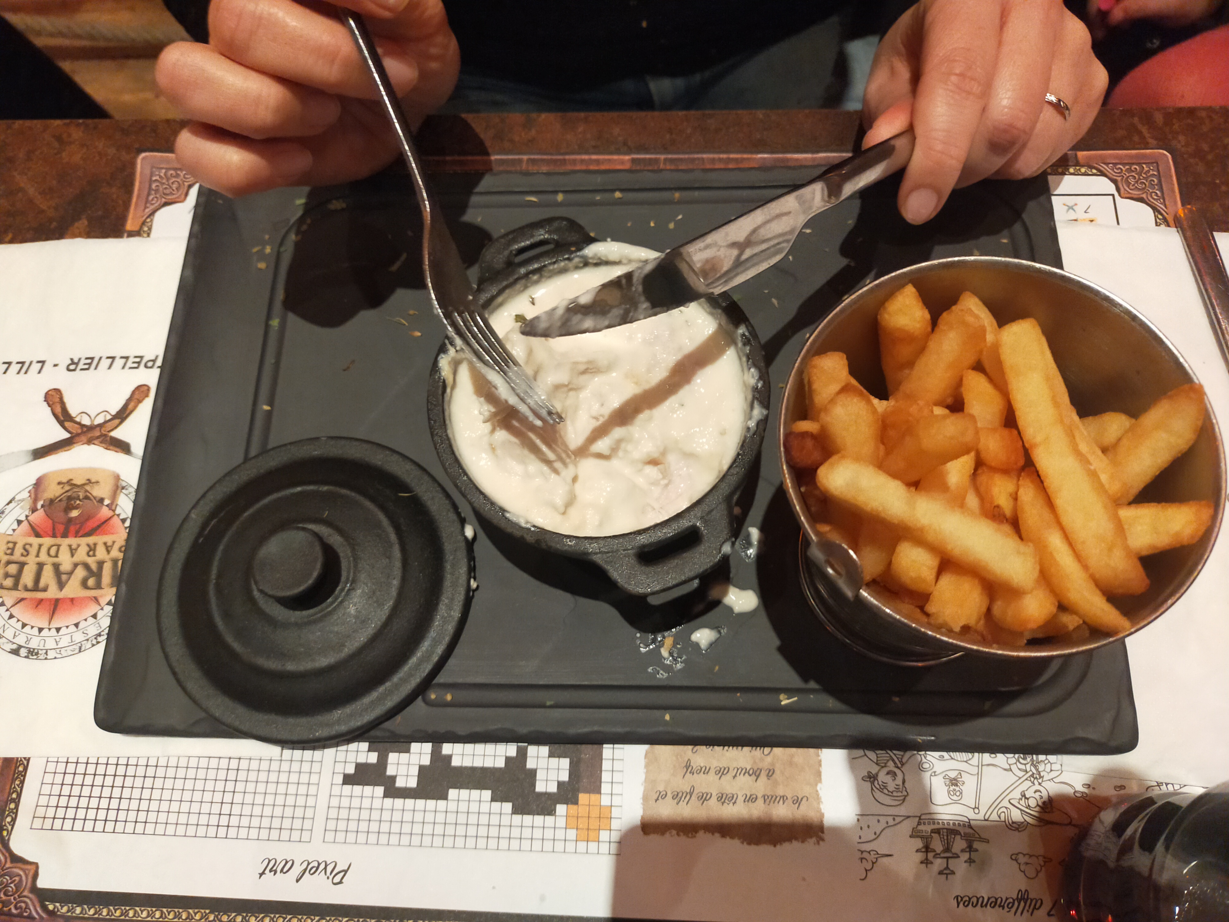 Super concept, la piraterie n'est jamais finie. Quel concept vraiment immersif. On a vraiment l'impression d'être chez de vrais forbans. Tous les employés jouent le jeux et franchement c'est appréciable. Le cocktail Boulet de canon crié est vraiment énorme avec des serveurs qui courent avec un spectacle vraiment participatif avec les enfants 👍🏿👍🏿 et des menus abordables. Une expérience à ne pas louper🥳🥳