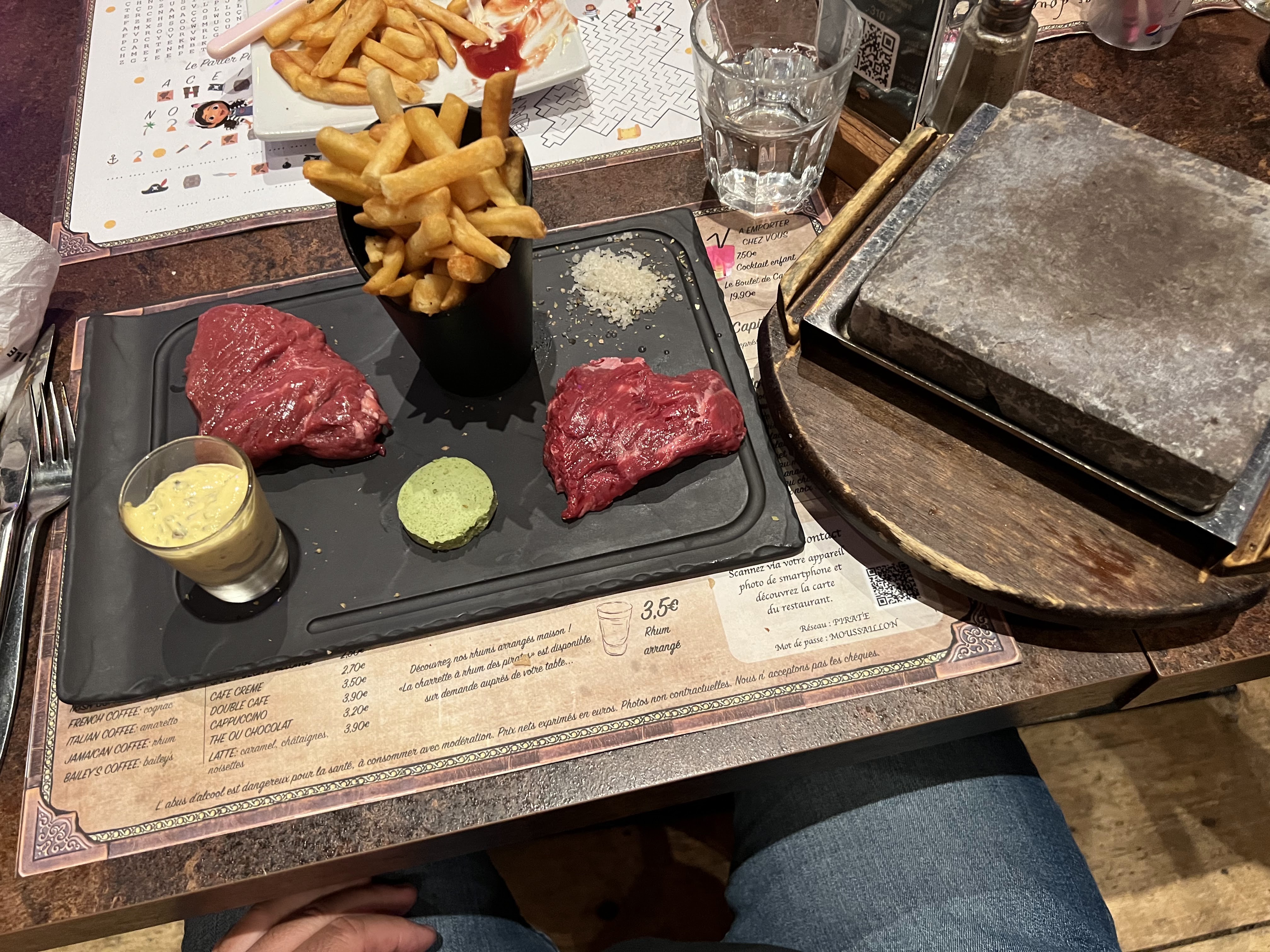 On vient de fêter les 3 ans de notre fille, elle a choisis le restaurant des pirates pour son spectacle. On a été super bien accueillis comme d’habitude et jamais déçu par la viande de qualité servis. Aujourd’hui c’était cromagnon du capitaine, DÉLICIEUX. On reviendra.