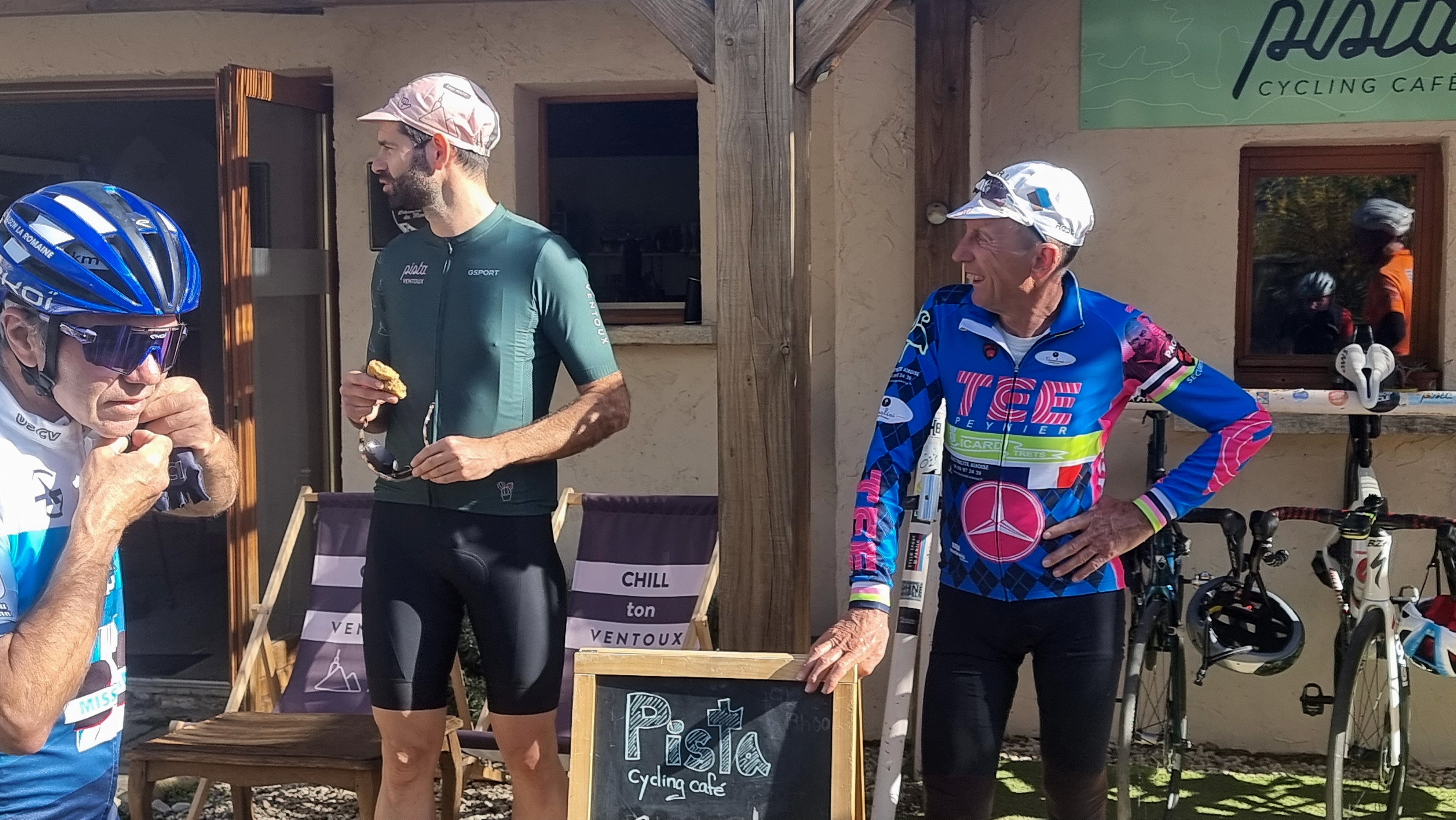 J'ai visité le Pista Cycling Café il y a une semaine après avoir gravi le Mont Ventoux. Ils n'avaient presque plus de nourriture, mais ils m'ont quand même trouvé un très bon morceau de quiche. Leurs mécaniciens m'ont aidé avec quelques outils dont j'avais besoin pour mon vélo et m'ont parlé des Gorges de la Nesque et des Gorges du Verdon. Ils recommandent de ne pas longer la côte de Marseille à Nice mais plutôt de passer par ces Gorges qui sont fabuleuses ! Presque pas de circulation, des routes parfaites et super belles ! Et j'ai même reçu une vignette gratuite du club cycliste du Mont Ventoux !