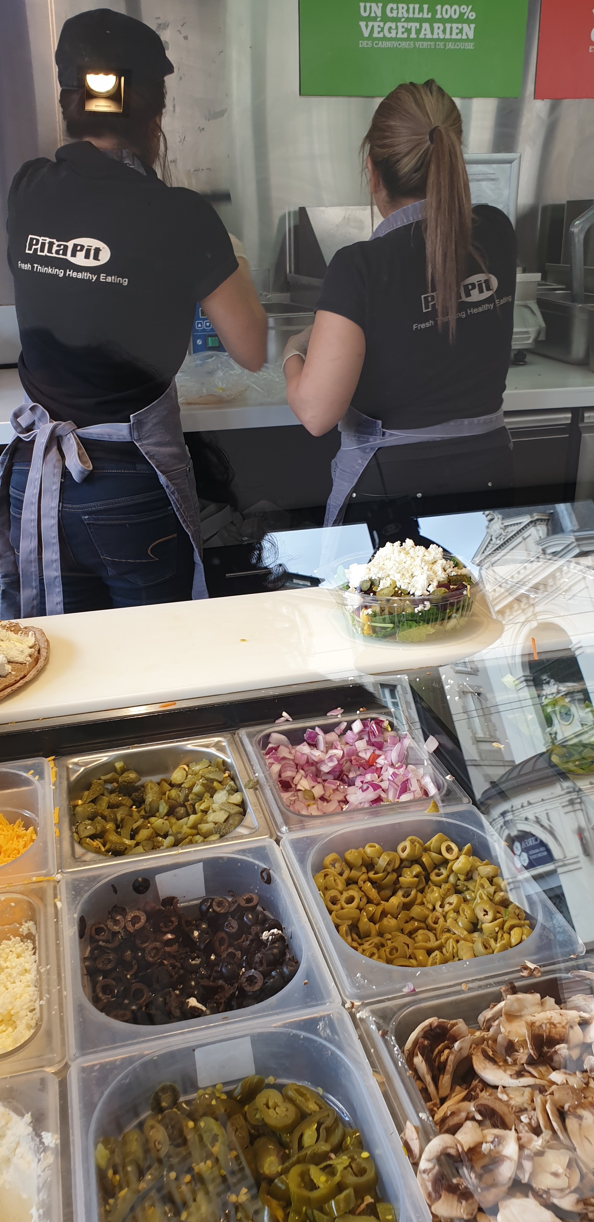 Bon concept, savoureux, équilibré et copieux. Accueil sympathique. Moins de clim et de fruits sous plastique et Pita Pit sera vraiment un fast food d'avenir.