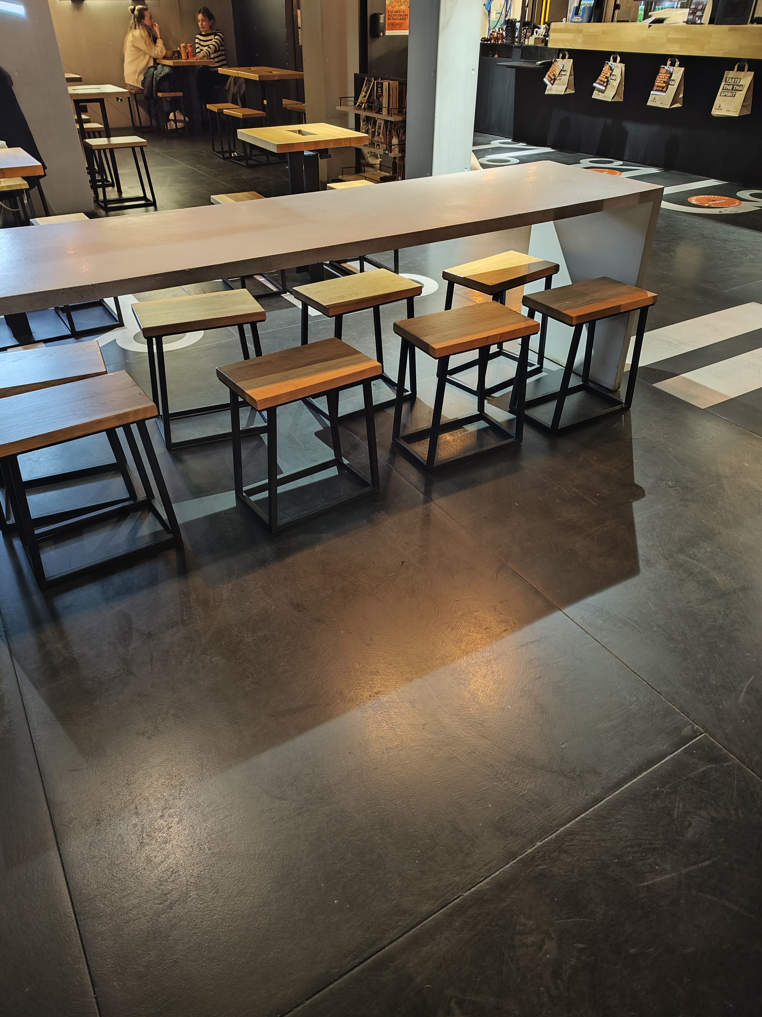 Service rapide à table. Personnel agréable. Du choix dans les plats cuisinés minute. Prix raisonnable : 15 euros pour un plat une boisson et un dessert. Plat agréables 2 petits reproches : A/ pas de cookies dans le menu aujourd'hui car pas livrés :(. Sinon ça valait 5 étoiles. La glace était très bonne mais je voulais un cookie au Macha. B/ Et la plupart (ou la totalité ??? PB de mémoire) des chaises pour s'asseoir sont en fait des tabourets.
