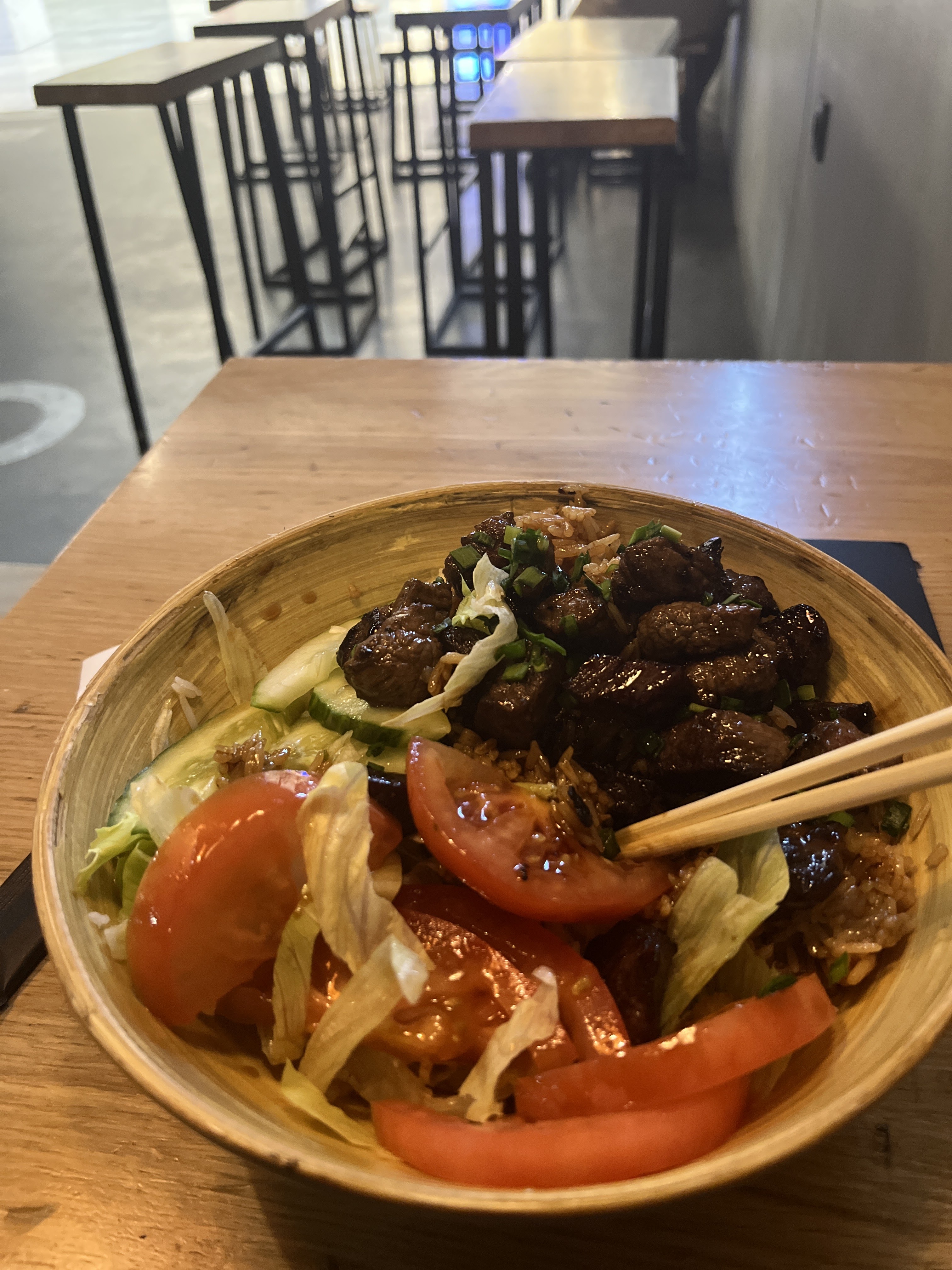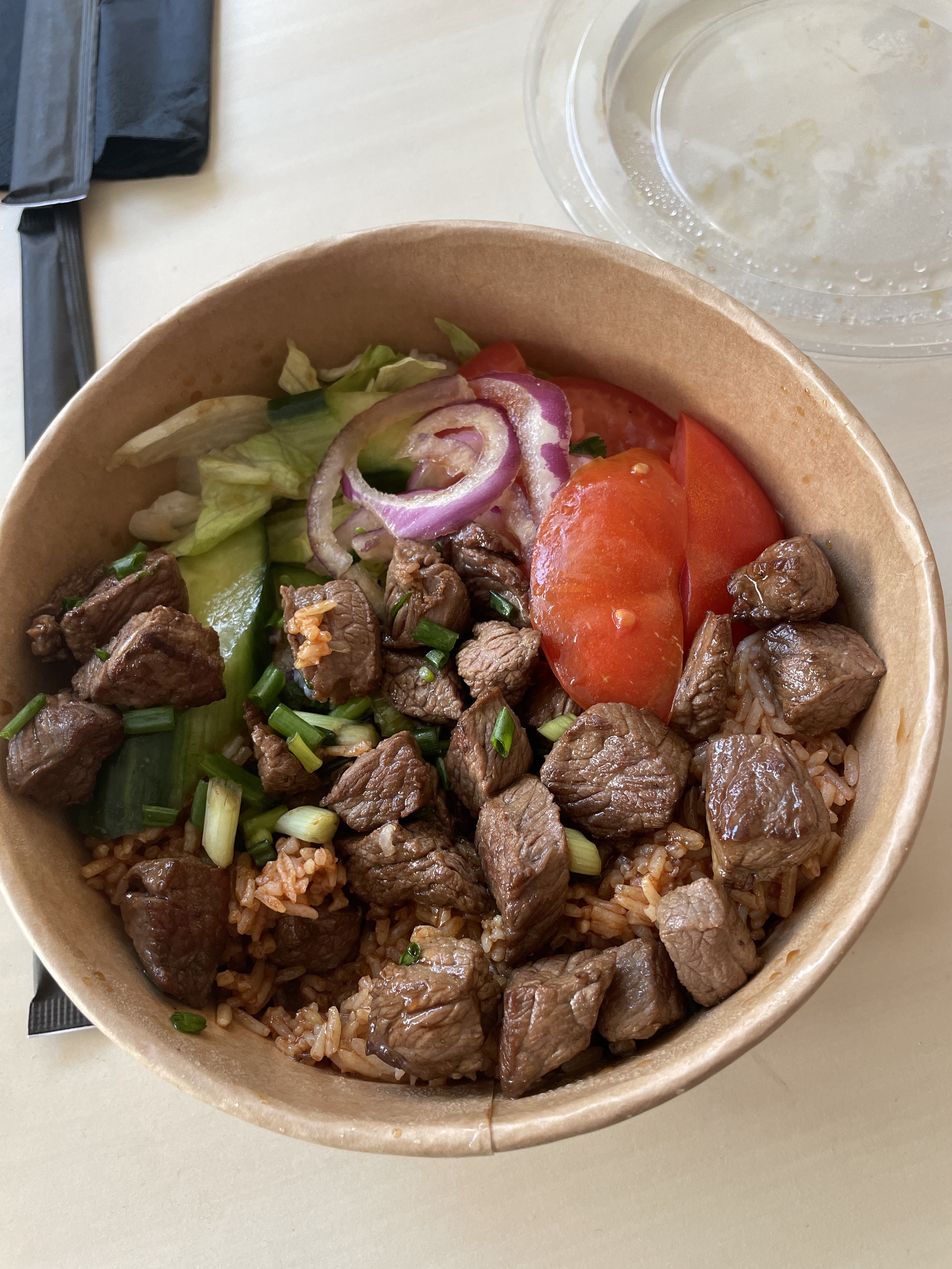 Je vous déconseille, le bœuf n’était pas suffisamment cuit, il était élastique et caoutchouteux en bouche, immangeable !! Quel dommage et le riz était certes goûteux mais mal fait et composé de plusieurs boules collantes.