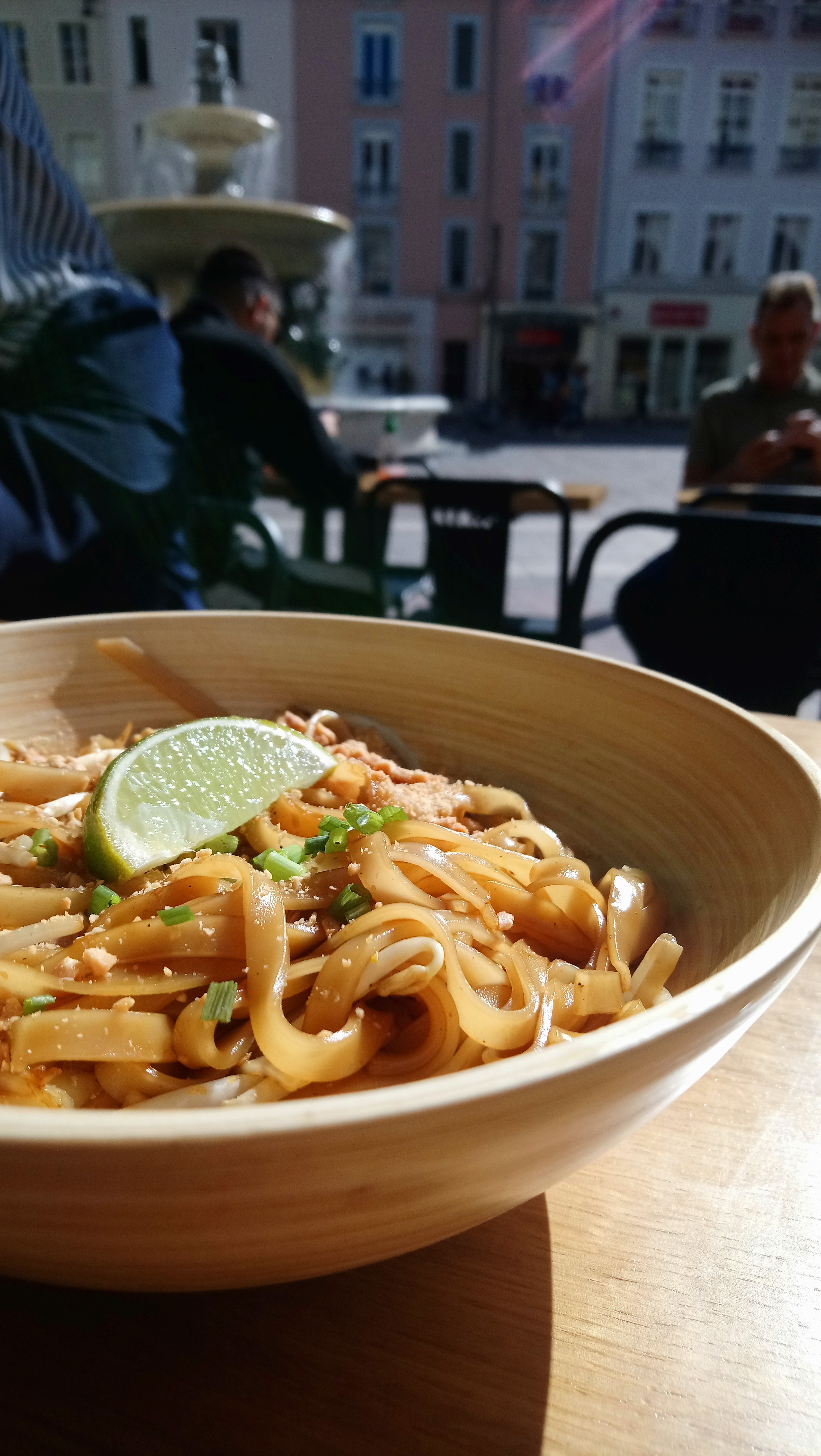 Pad thaï corrects, mais loin derrière les meilleurs que j'ai mangés à Grenoble, surtout au regard du prix. Le Chicken sate plutôt bon. Aussi, en cette période de Covid, trois cuisiniers qui portent mal leur masque (le nez doit être dans le masque et on ne devrait normalement pas voir la bouche !) n'est pas un gage de respect des règles sanitaires et d'hygiène en vigueur. En revanche, il est très agréable de profiter d'une terrasse sur la place Grenette un soir d'été avant d'aller manger une glace à quelques mètres. L'emplacement est idéal.