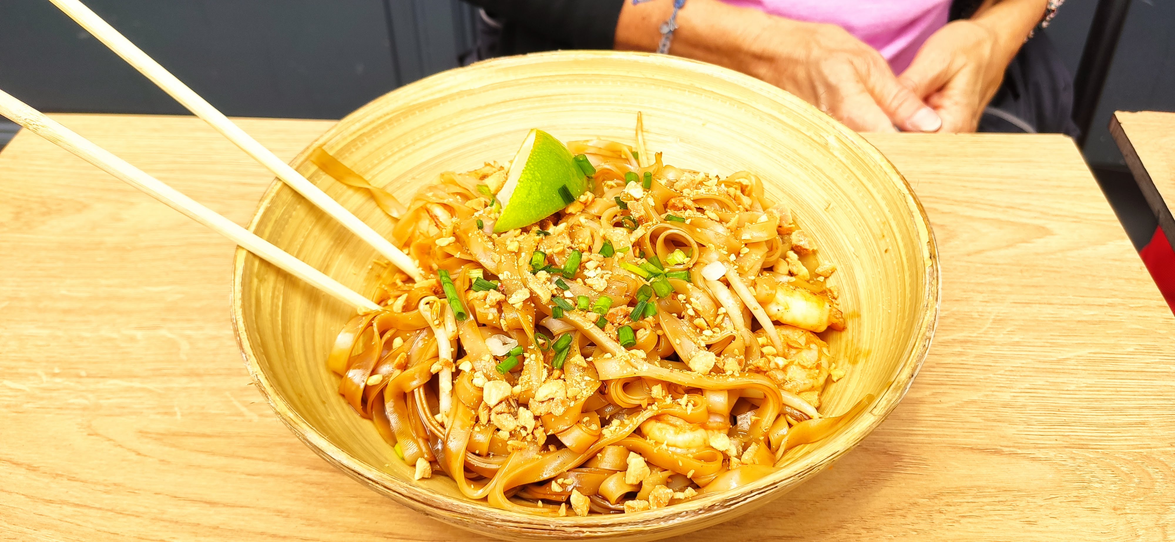 Seul le nom du restaurant rappelle un peu la Thaïlande, un pad thai qui n'a en aucun cas le goût d'un pad thai mais seulement de pattes à la cacahuète, un service pas à la hauteur, à la demande d'un pichet d'eau la réponse est : yen a plus sur un ton qui fait comprendre que l'on dérange