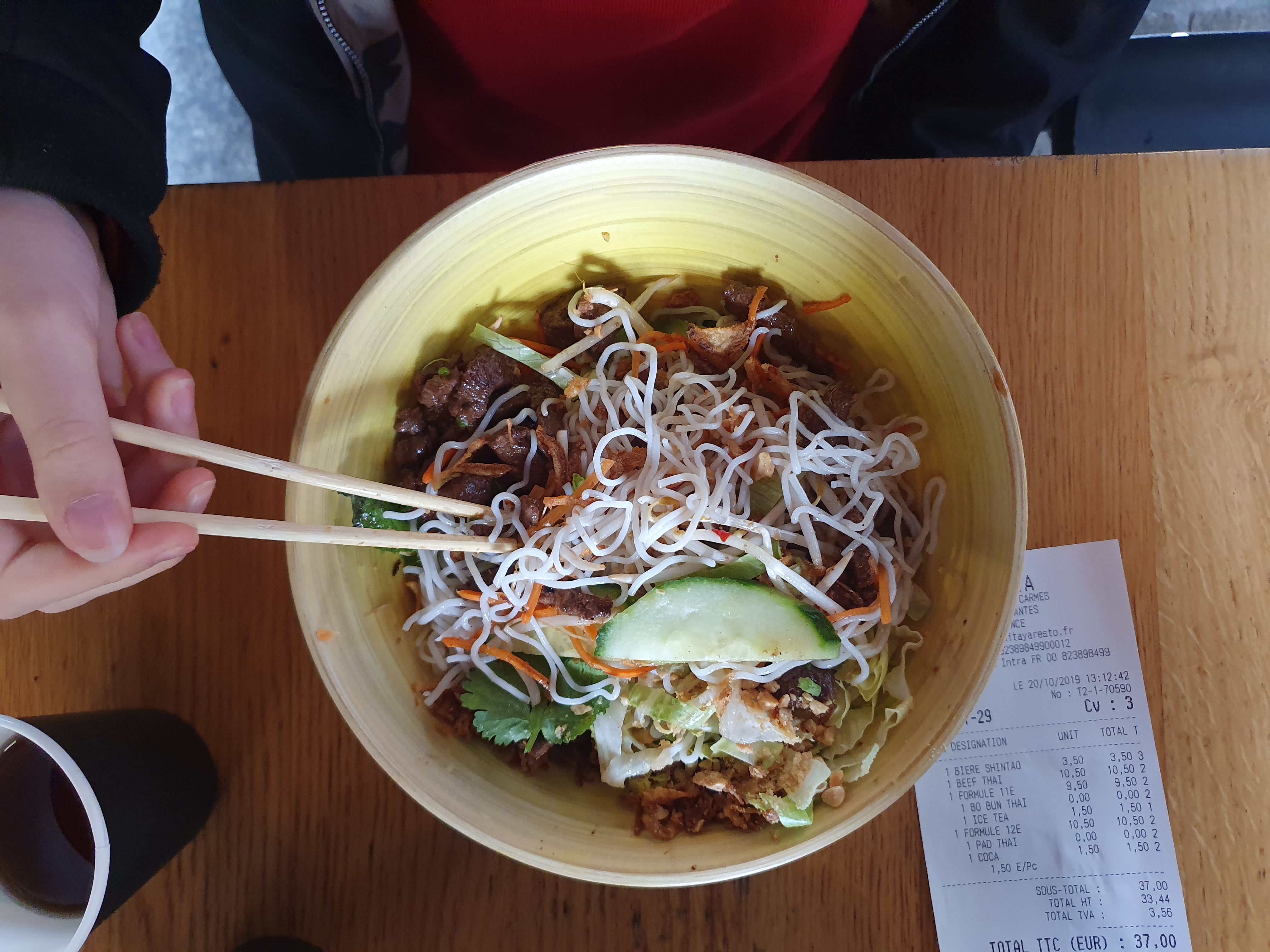 Bof c'est juste un restaurant rapide à la thaï. Ça change du Mac do. Mais vraiment rien de transcendant viande de mauvaise qualité. Une fois pas 2. Déçu. Pas mon style de soit disant restaurant. Désolé. Après pour 10€ le plat.....