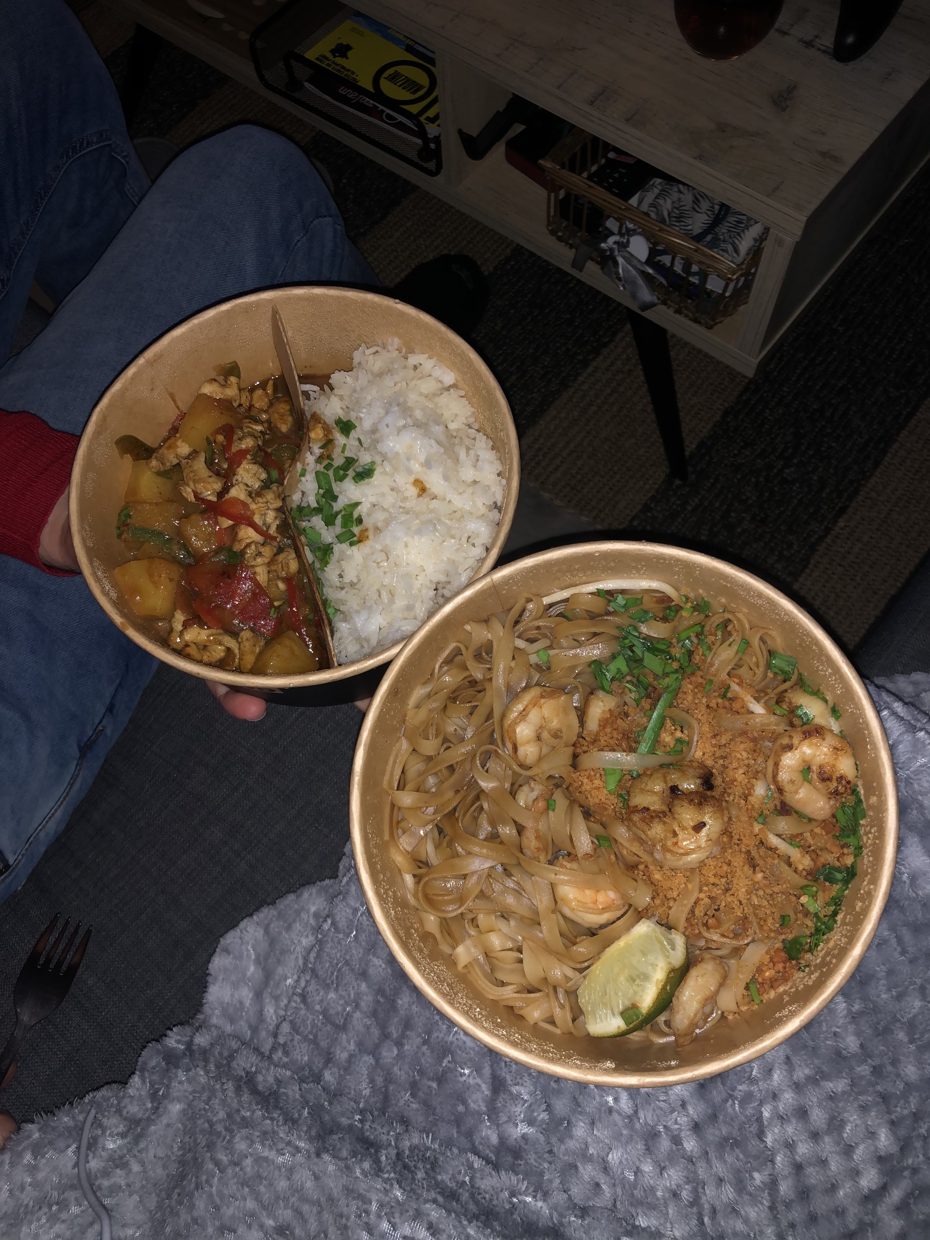 Encore une fois super bon ! Pour les amateurs d’épices sur la photo c’est le Red Curry 🌶️🌶️🌶️. Ça pique un peu mais ça reste raisonnable… Sachez qu’il est donc possible de demander de la sauce piquante à l’accueil, et une carafe d’eau 😇