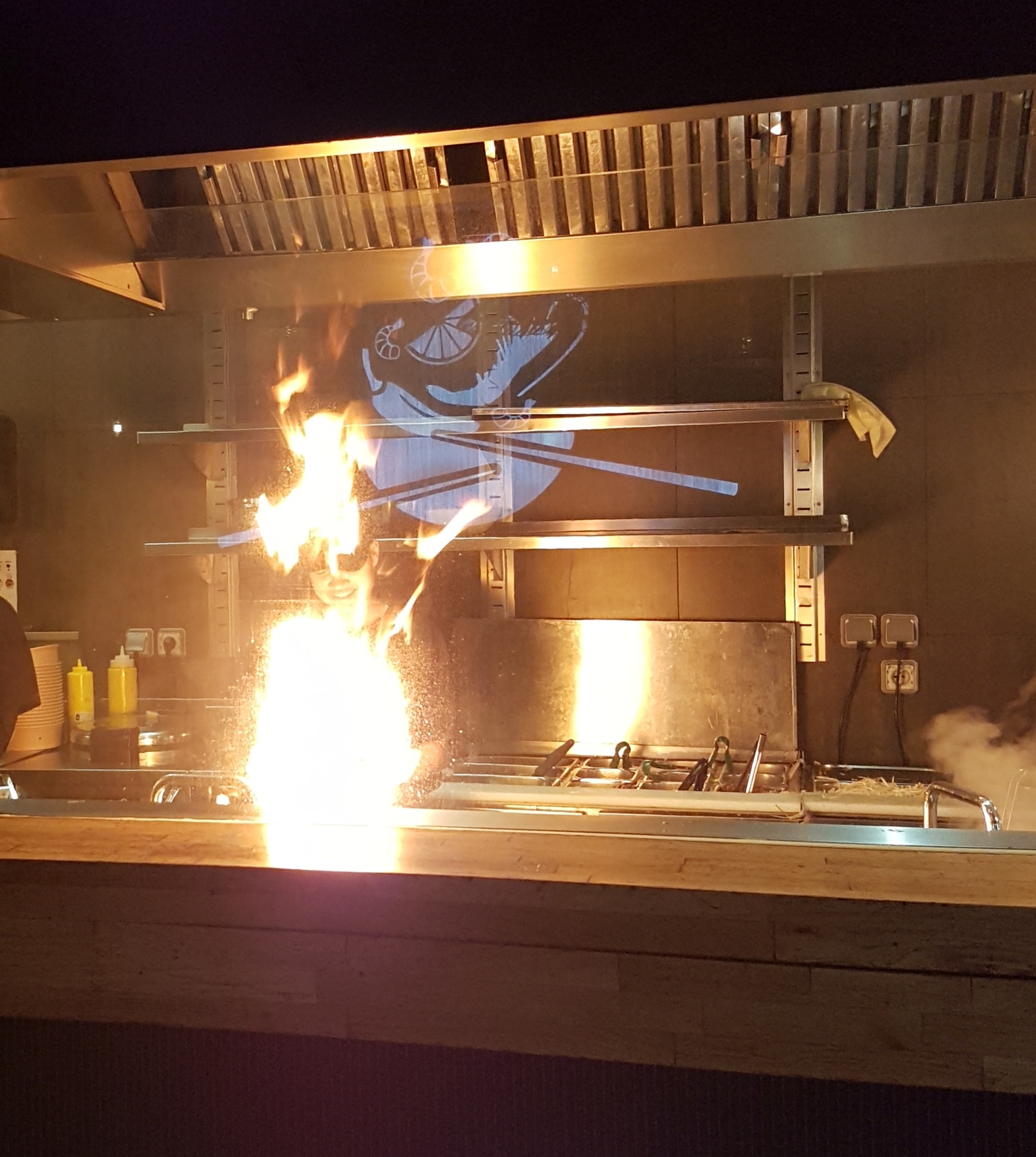 Ce street food est plutôt bien, l'attente est un peu longue à cause de plein de commande Uber eats mais les ingrédients sont bons ( le riz des woks est collant,c'est normal c'est du riz basmati ) et pour finir les prix sont raisonables PS:il faut prendre commande à l'intérieur avant de se mettre à table