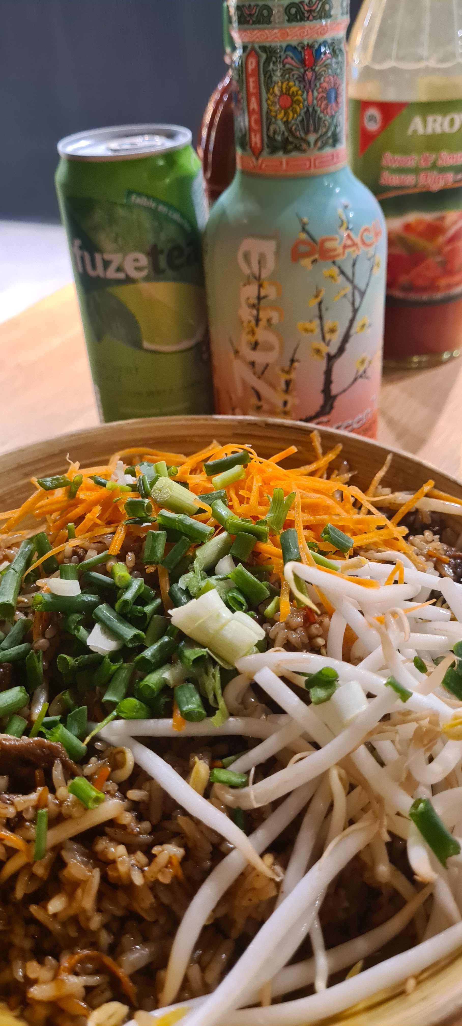 Oignons rouges dans du riz thaï, plus jamais à vomir. S'ajoute à cela que le goût du riz thaï est meilleur partout ailleurs. Saveur trop diluée pour économiser de l'argent. Les franchises pour ce genre de plat, passez votre tour.