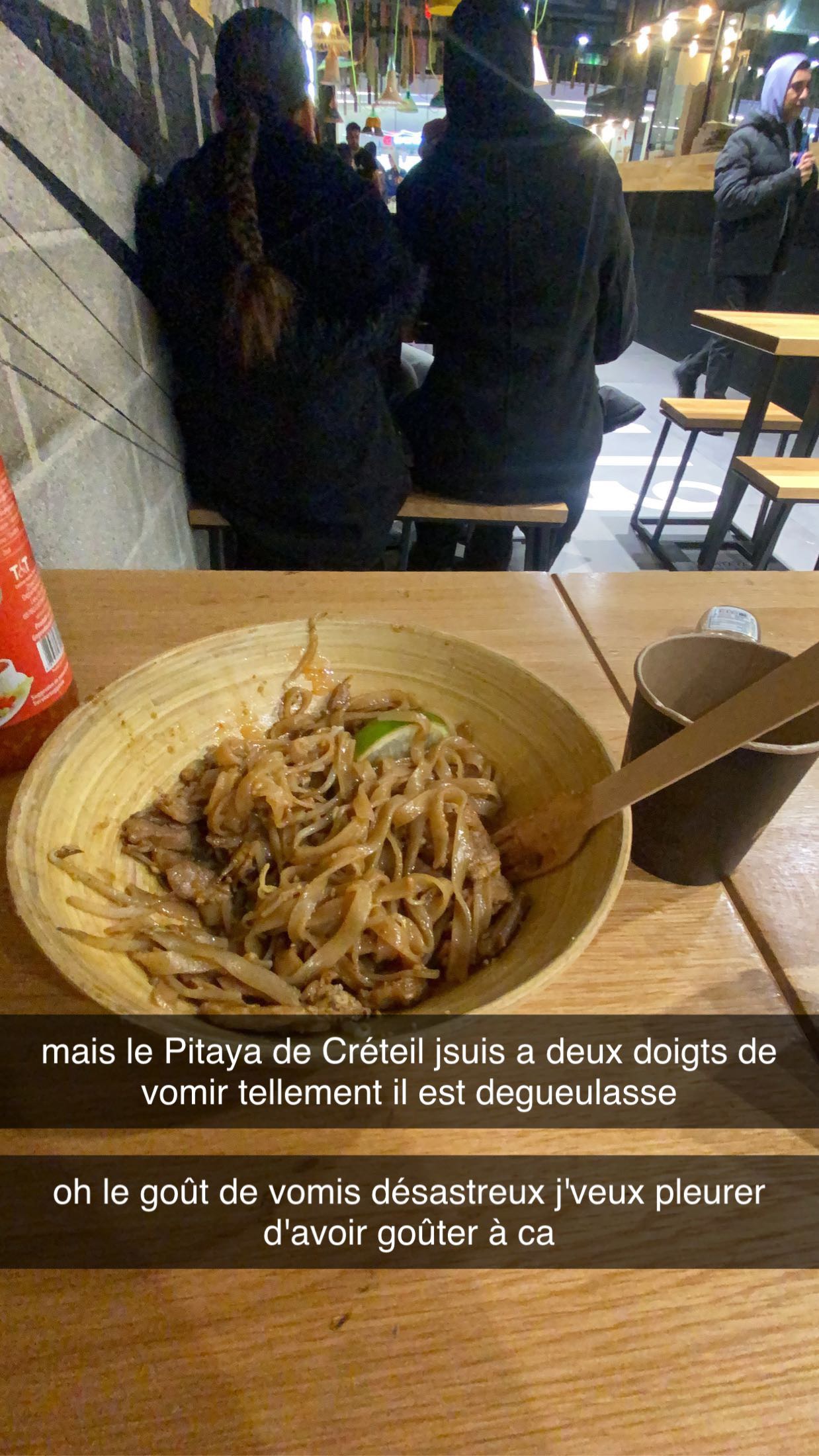 J’ai pris à emporter le plat pad thaï poulet c’est vraiment pas bon et y’a aucun goût c’est très fade, je recommande pas du tout