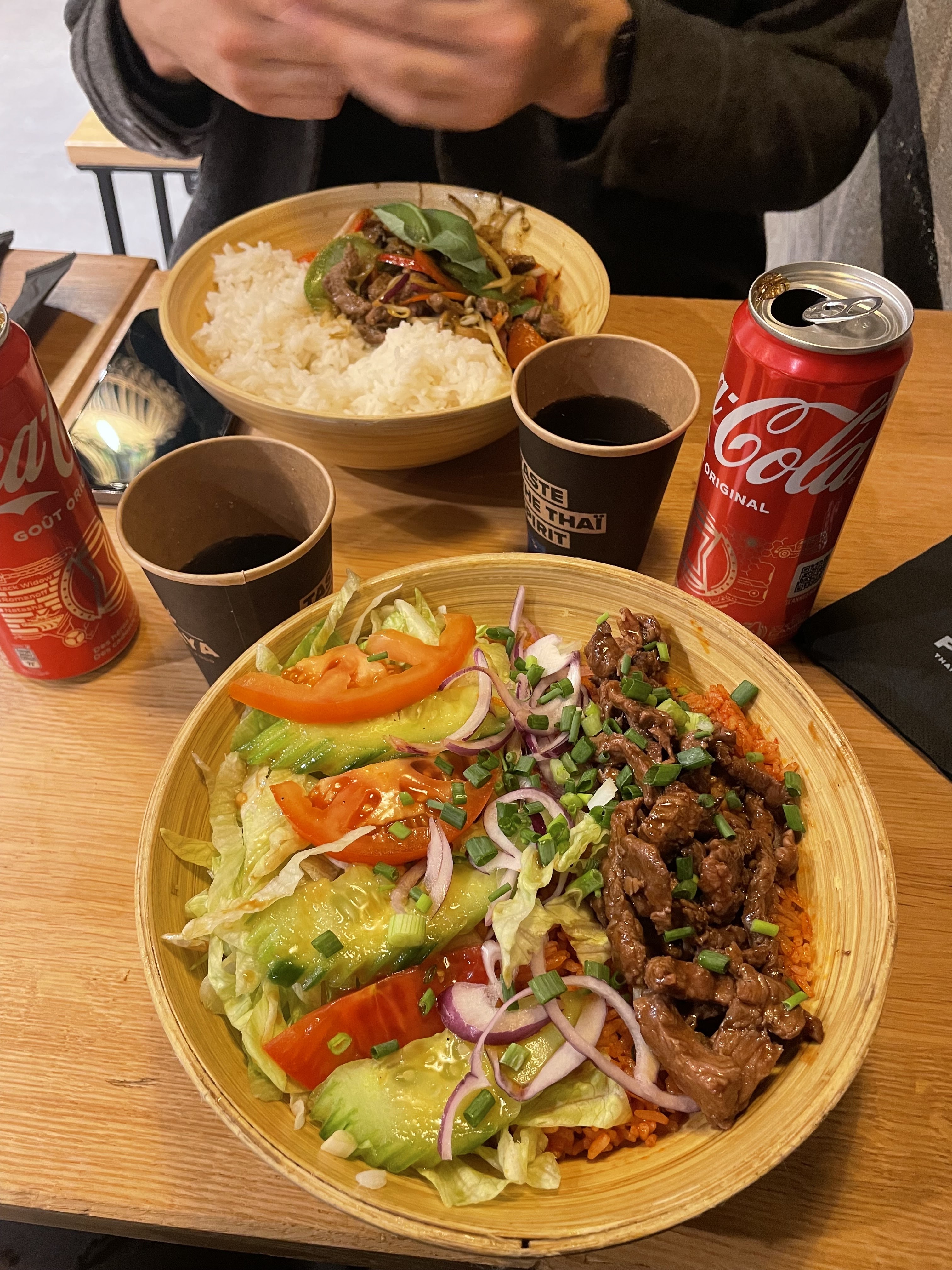 Déçu de notre repas à emporter ... Les prix sont exorbitants au vue du manque de qualité apportée. Pas de goût et très sec. Commandé: 2 paires de brochettes : boeuf et poulet, aussi sèches l'une que l'autre pas de saveur ... La salade du moment manque de goût la sauce shiracha est presque absente Un red curry soit disant épicé 🌶️🌶️🌶️ sans saveur Un menu kid tout sec. Les nouilles de riz étaient sèche pas de sauce rien... Un dessert à 4€ de la taille d'un petit Gervais ... Bref, mauvaise expérience, Je ne renouvellerai pas.