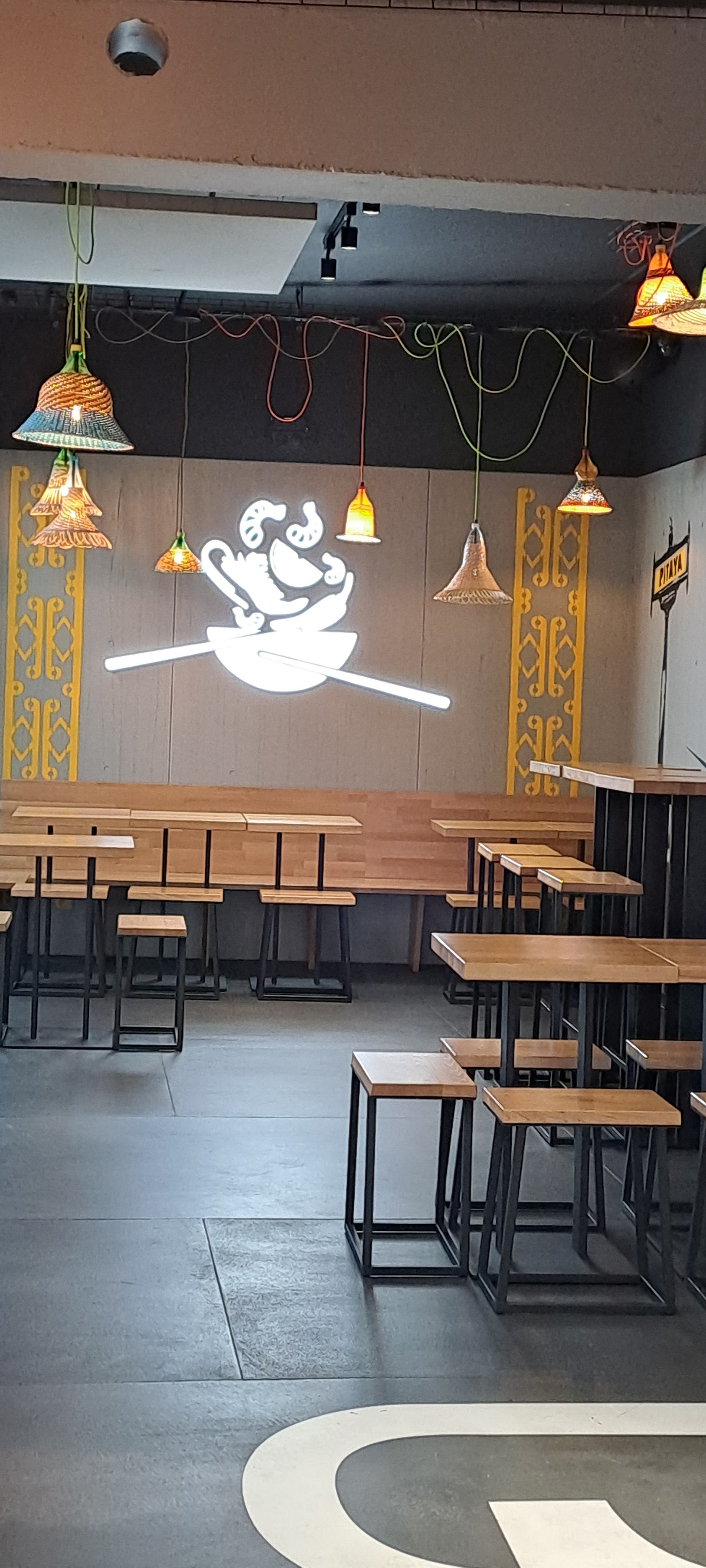 Musique à fond dans le restaurant ... personne n'y était, ce qui veut tout dire. Accueil correct cependant, du moins une fois que l'on ait compris qu'il faut commander puis payer à l'intérieur avant d'être servi à l'extérieur. Ensuite pour 11,50 € vous avez un bol de nouilles en sauce avec 10 crevettes surgelées. Pas mauvais, pas spécialement bon. C'est tout.