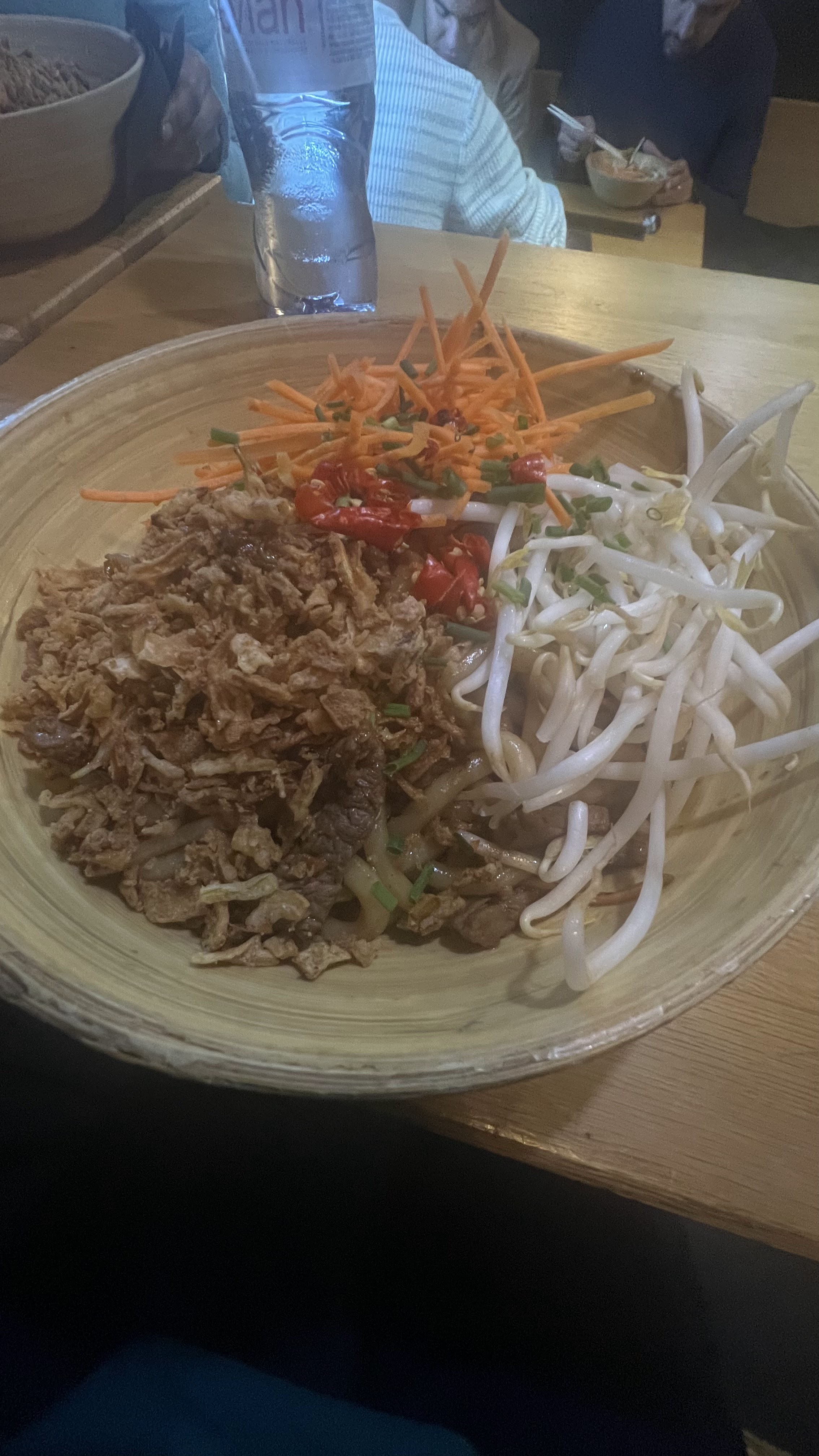 C'était terrible. Le pad thaï était fade et sans goût, avec rien d'autre que des crevettes froides. Il n'y avait pas d'épices, pas de saveur et pire encore, pas de piment du tout. Lorsque j'ai demandé qu'on ajoute du piment ou d'autres condiments, on m'a dit qu'ils étaient en supplément - pour donner du goût à un bol de nouilles à 12 euros, il faut payer un supplément ? J'ai demandé à un autre membre du personnel de service quelque chose pour améliorer l'expérience du plat, mais il m'a ignoré et est retourné à sa conversation téléphonique. C'est un service médiocre et impoli, et ce n'est certainement pas de la nourriture thaïlandaise !