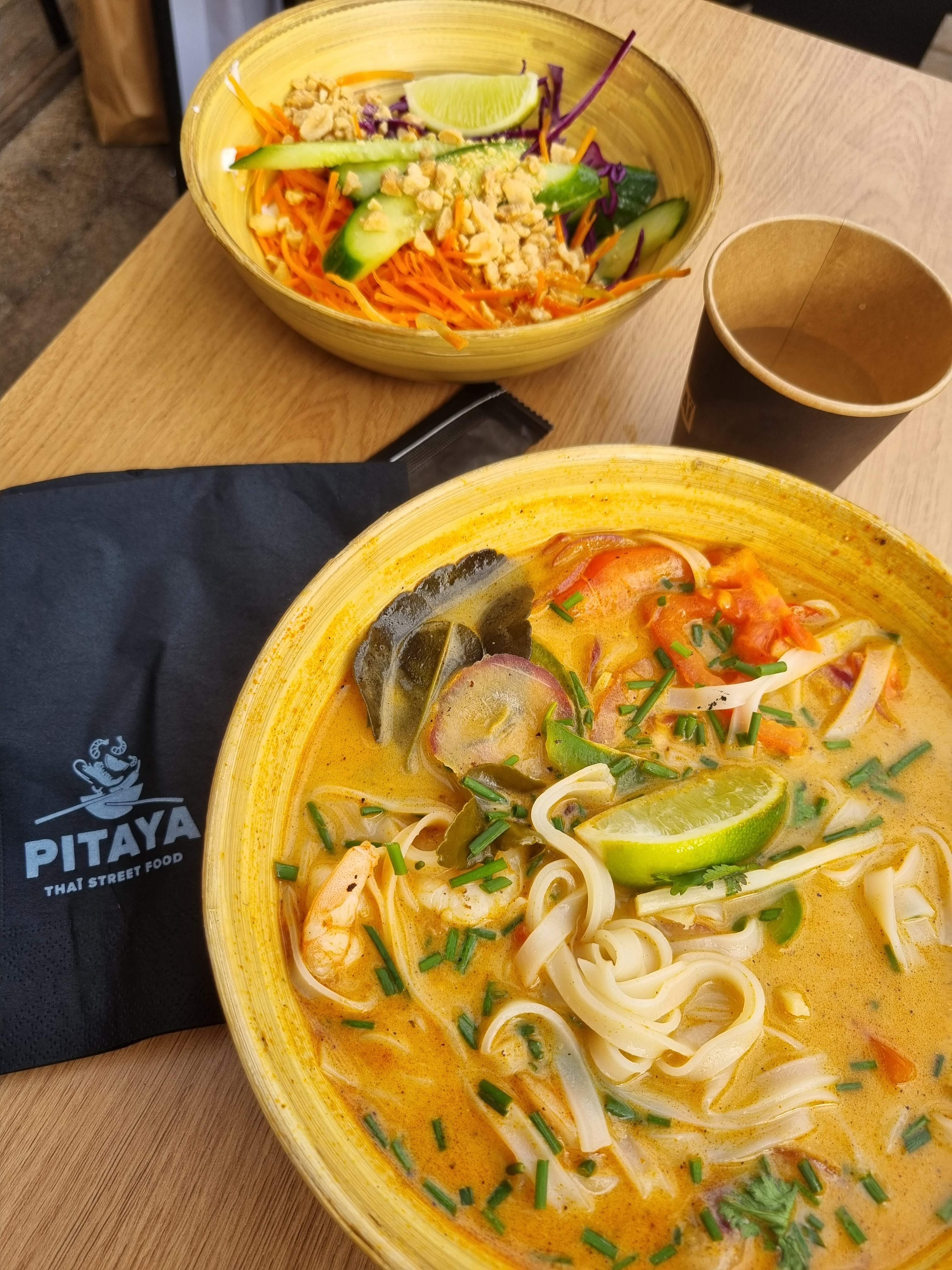 C’est comme d’habitude vraiment bon ! Je commande toujours un pad Thai poulet sans cacahuètes et sans soja , et c’est respecté à chaque fois dans ce pitaya ! J y suis allée deux fois une fois sur place et une fois à emporter en moins d’un mois (j y suis déjà allée quelques fois durant les deux dernières années sinon) Ça reste mon repas favori !! Le staff est très agréable et ça fait plaisir ! Un merci (un pouce en l’air !) aux cuisiniers quand on part après avoir mangé sur place car on s’est régalé , un merci à la caissière qui s’est occupée de nous encaisser et d’empaqueter le plat à emporter en pensant bien à mettre les serviettes et les baguettes comme il faut, ca ne coûte rien et ça fait du bien de montrer ce qu’on pense, face à des personnes qui ont le sourire ! la gratitude et le respect ca va dans les deux sens, merci encore !!