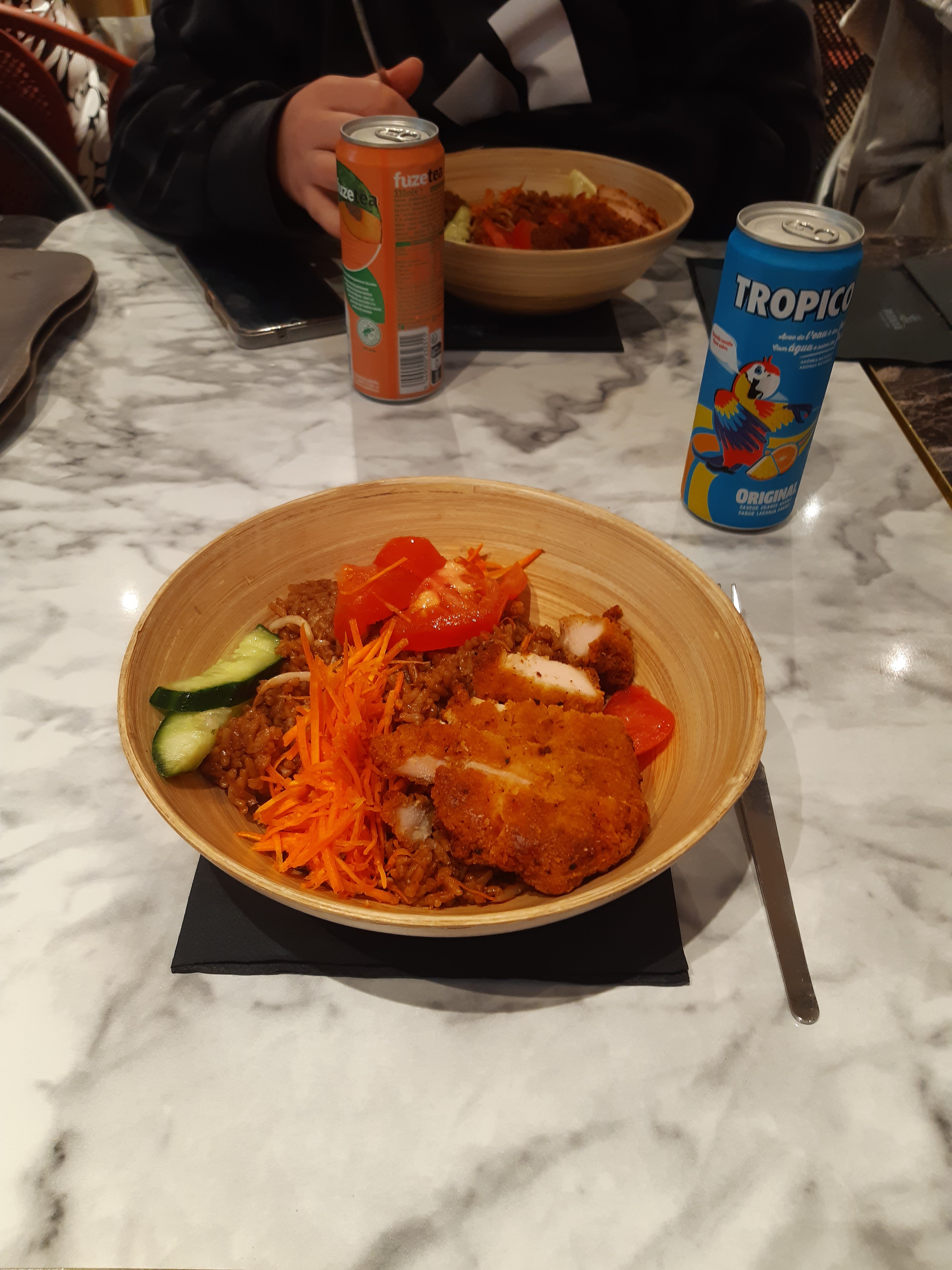 Horrible! Entre l equipe qui s en fiche totalement, le poulet de 60g, pas cuit! Brulé! Le truc craquait tellement c était brûlé ! Bref une honte! Ok c est au louvre! Ok c est pitaya mais un minimum de respect pour la clientèle svp! À fuir !